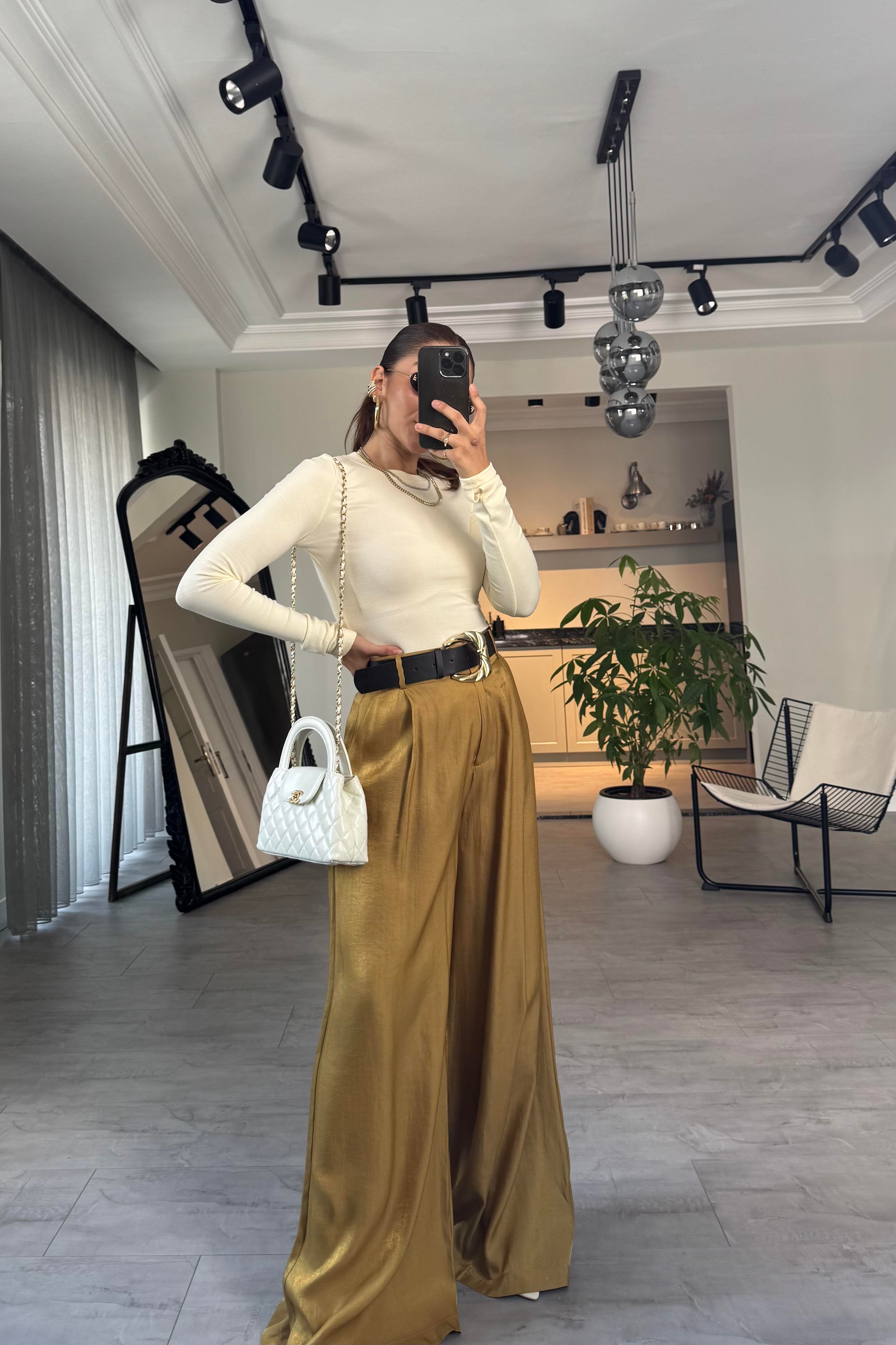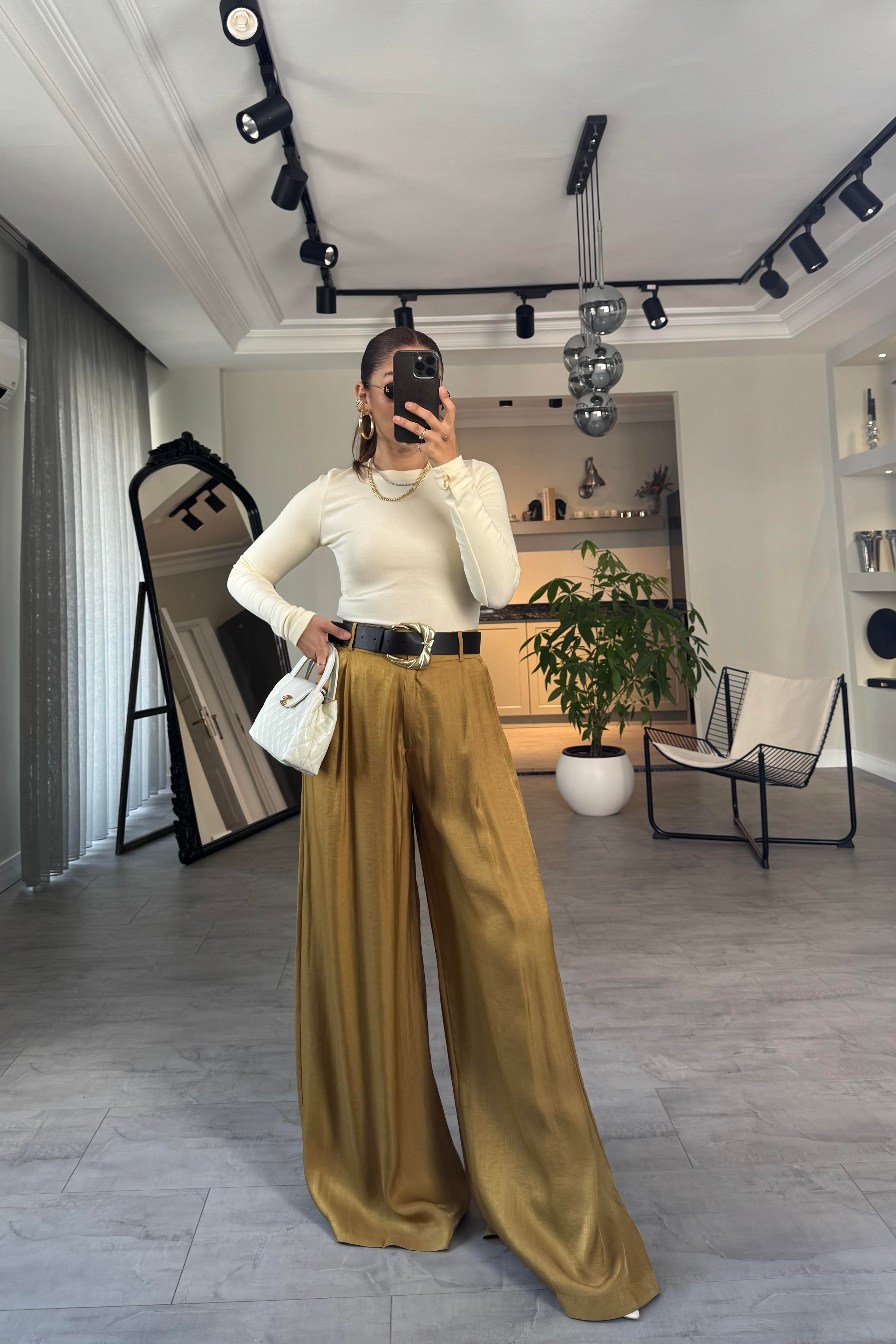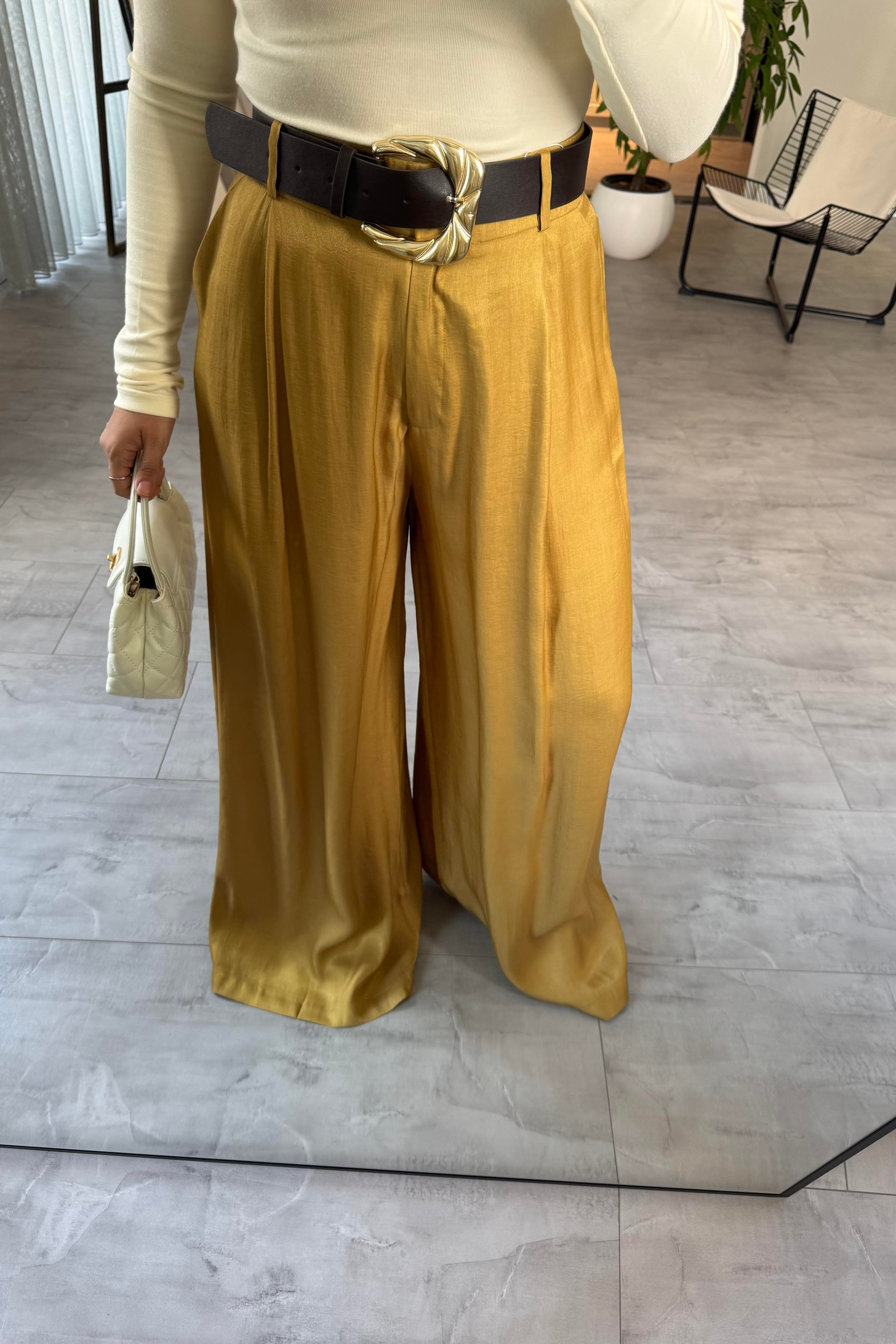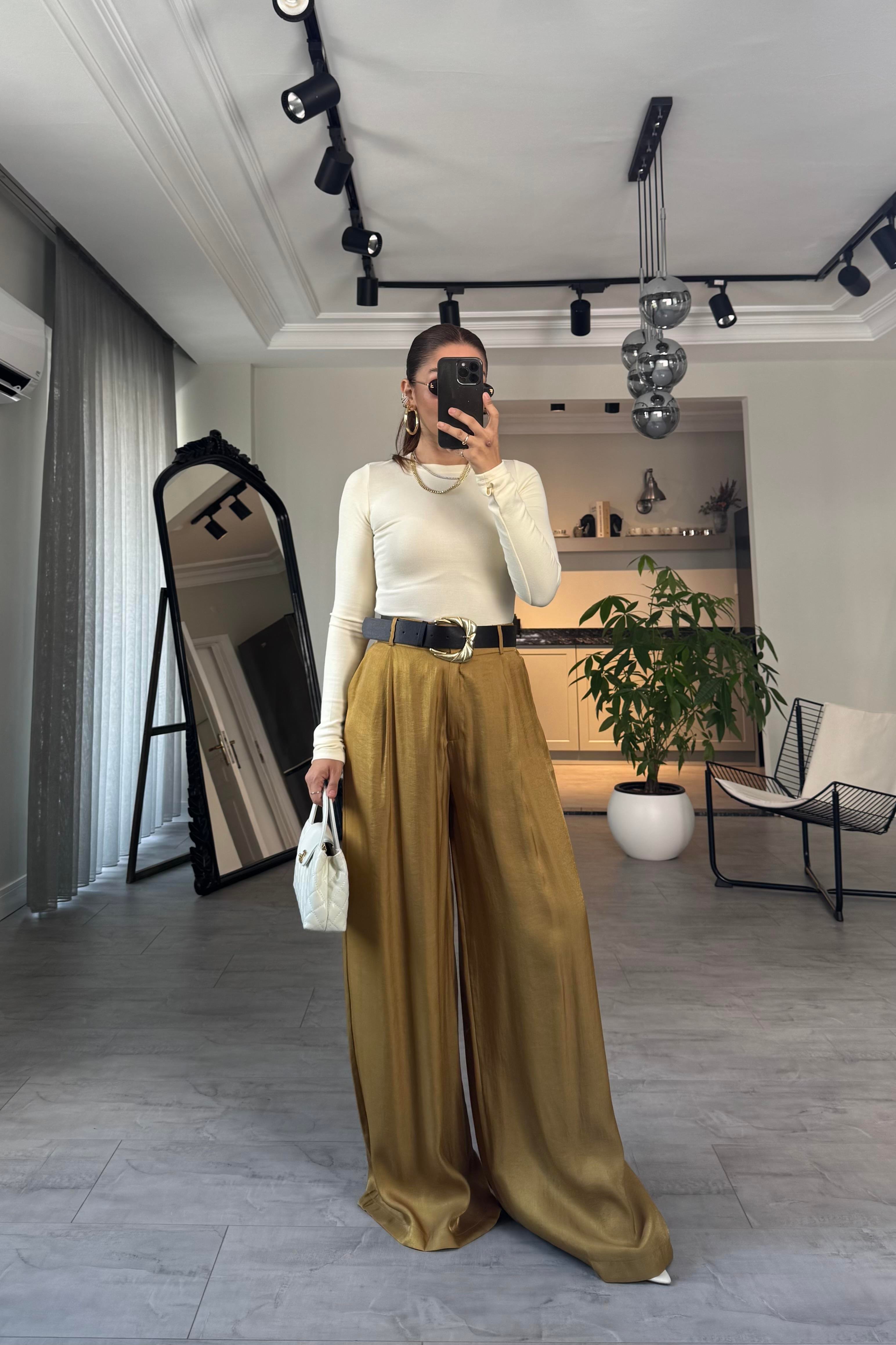 KEMERLİ SATEN GENİŞ PANTOLON