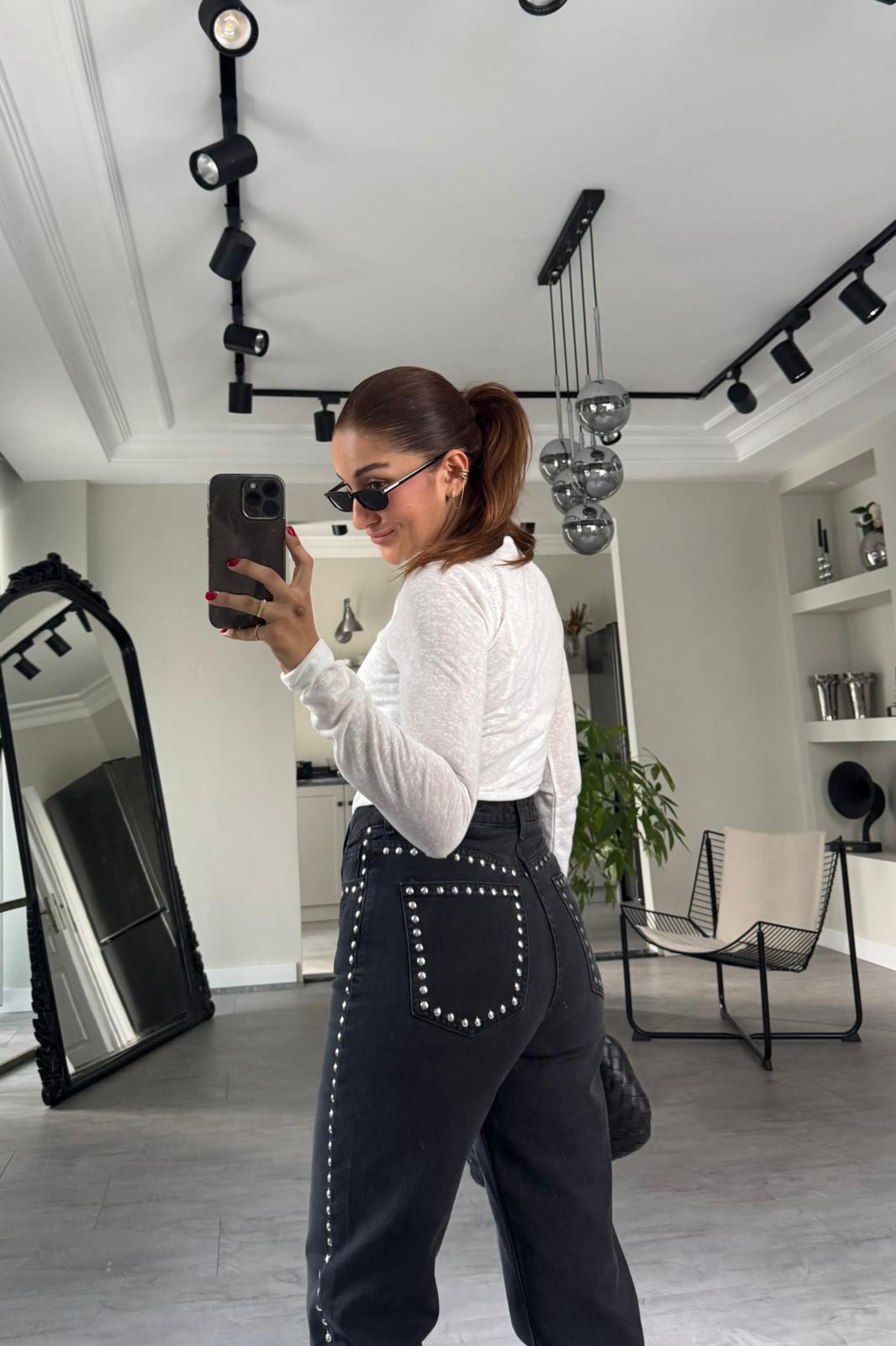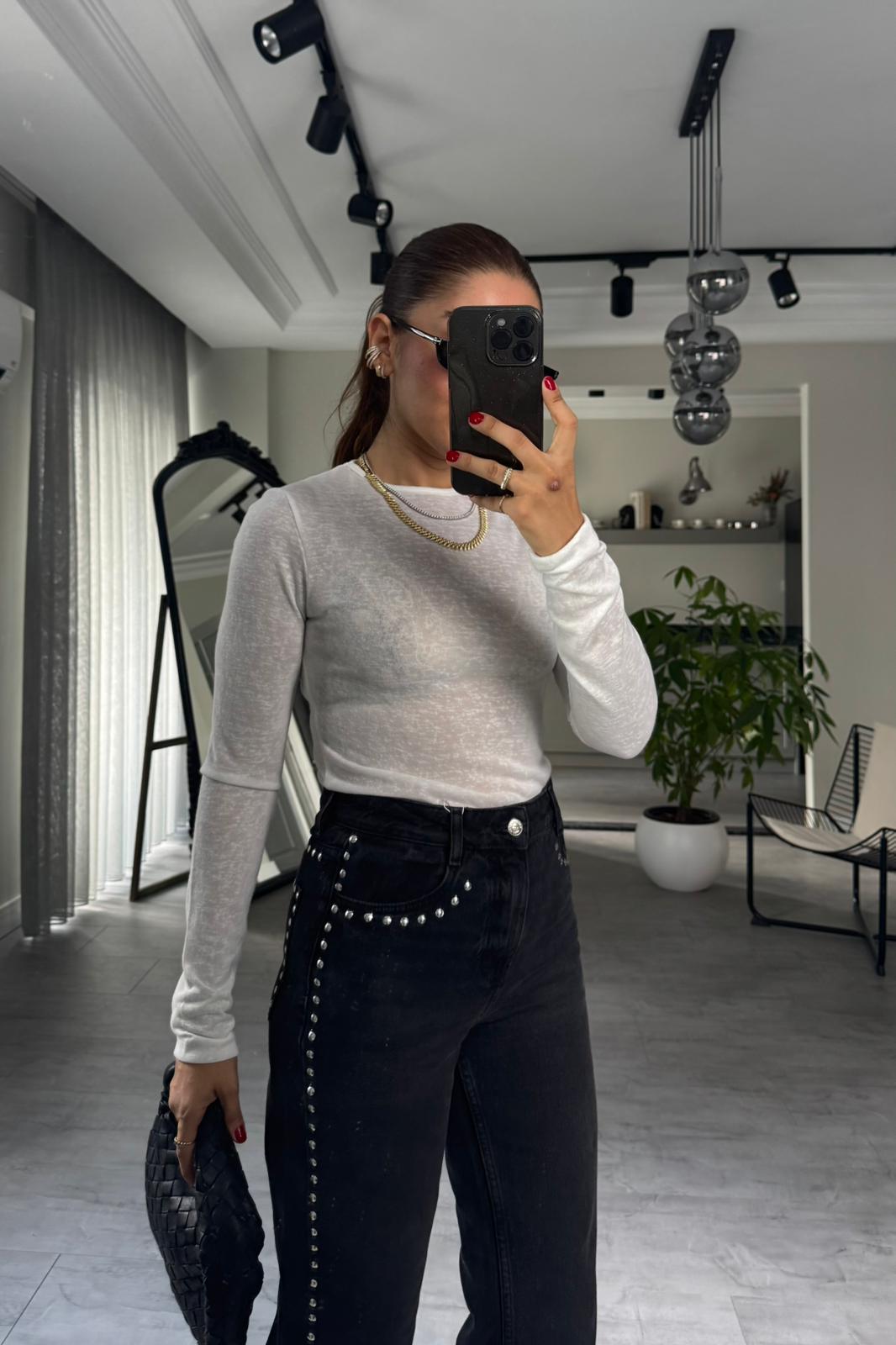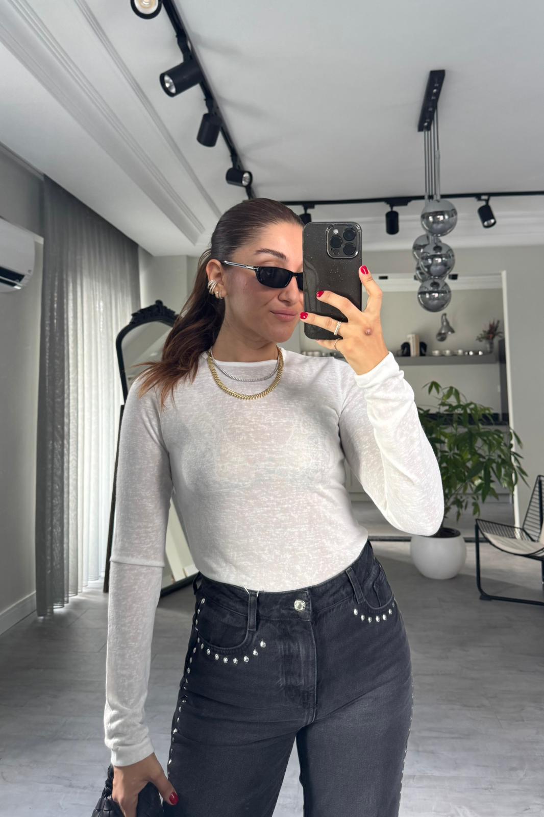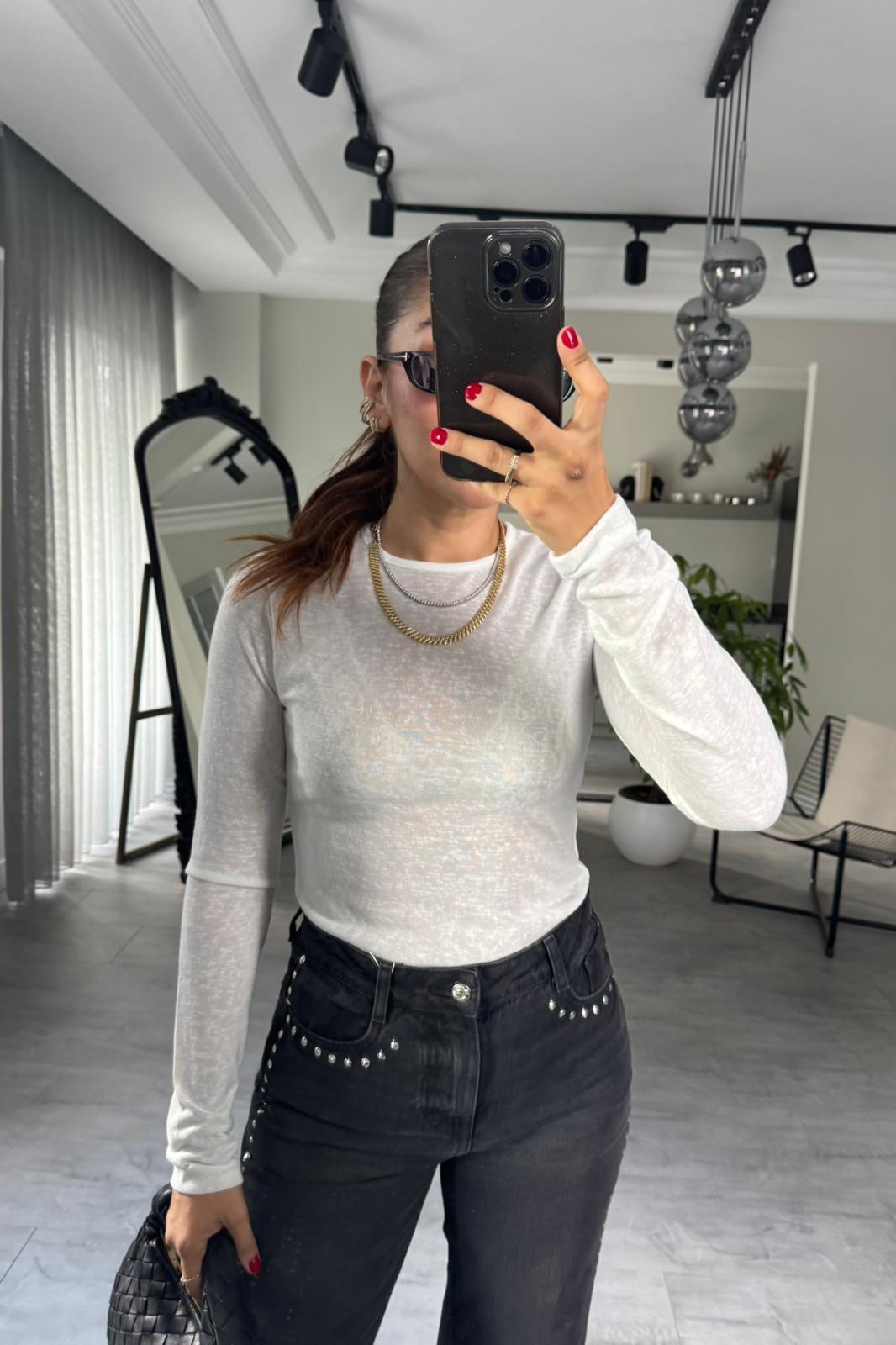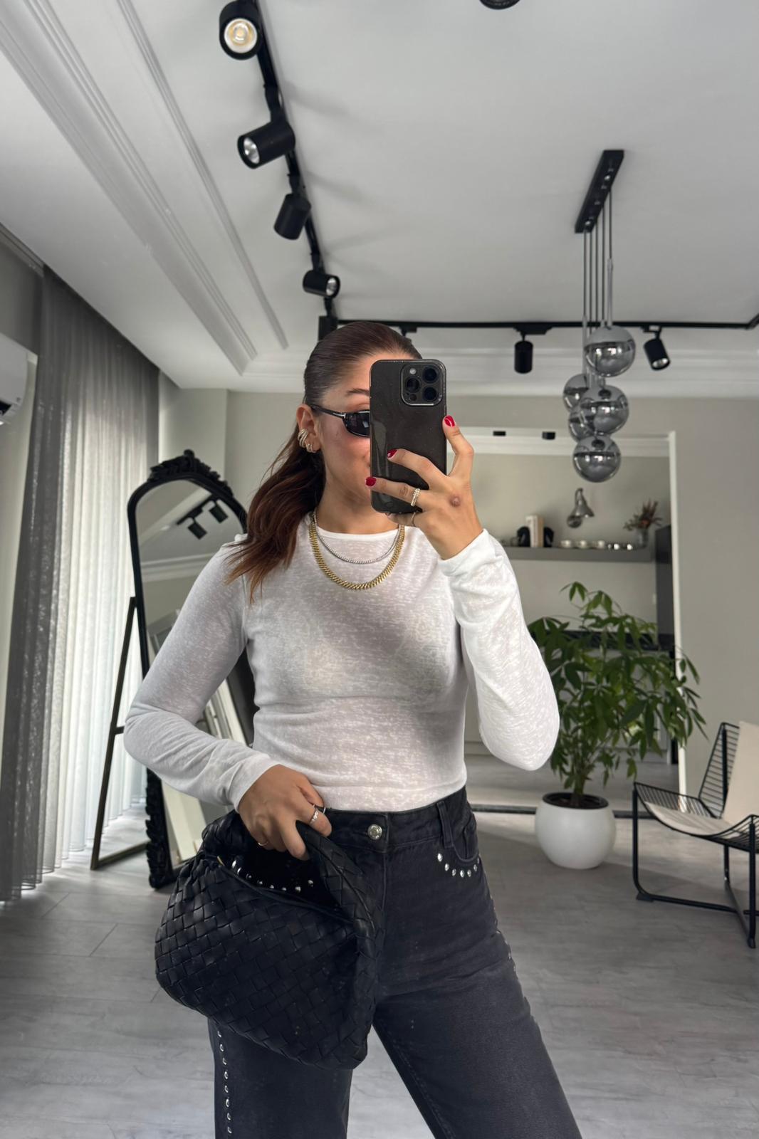 KENDİNDEN DOKULU TRANSPARAN BLUZ/1091