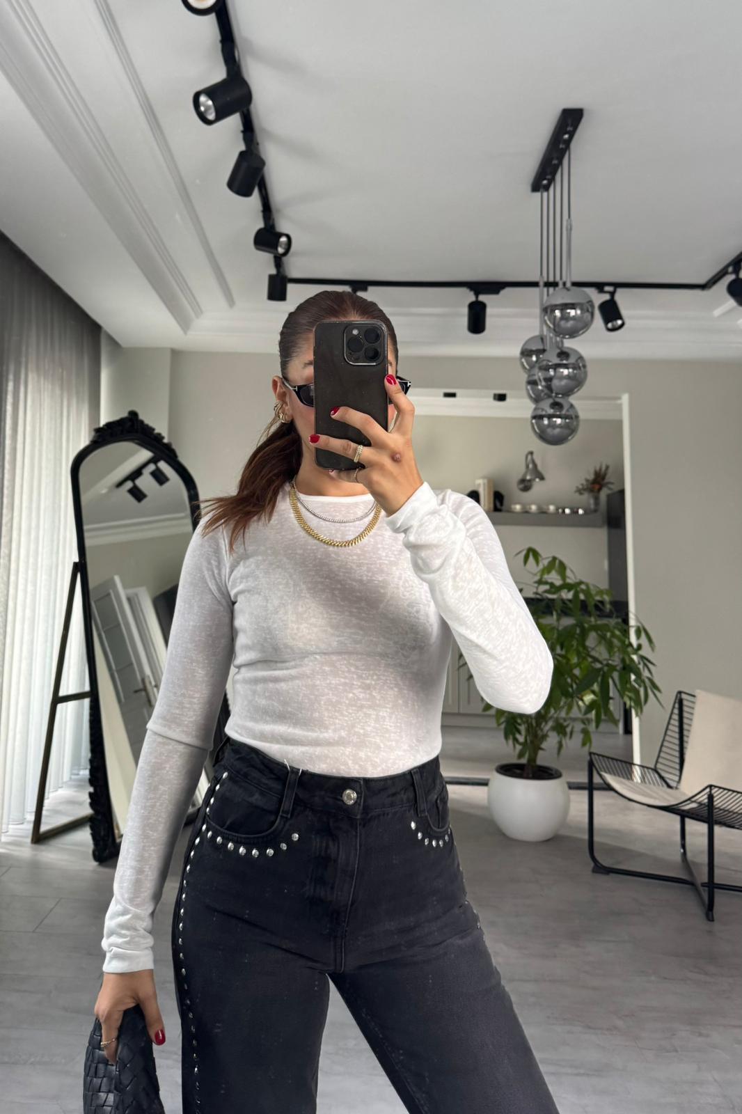 KENDİNDEN DOKULU TRANSPARAN BLUZ/1091 (26KHF32001)