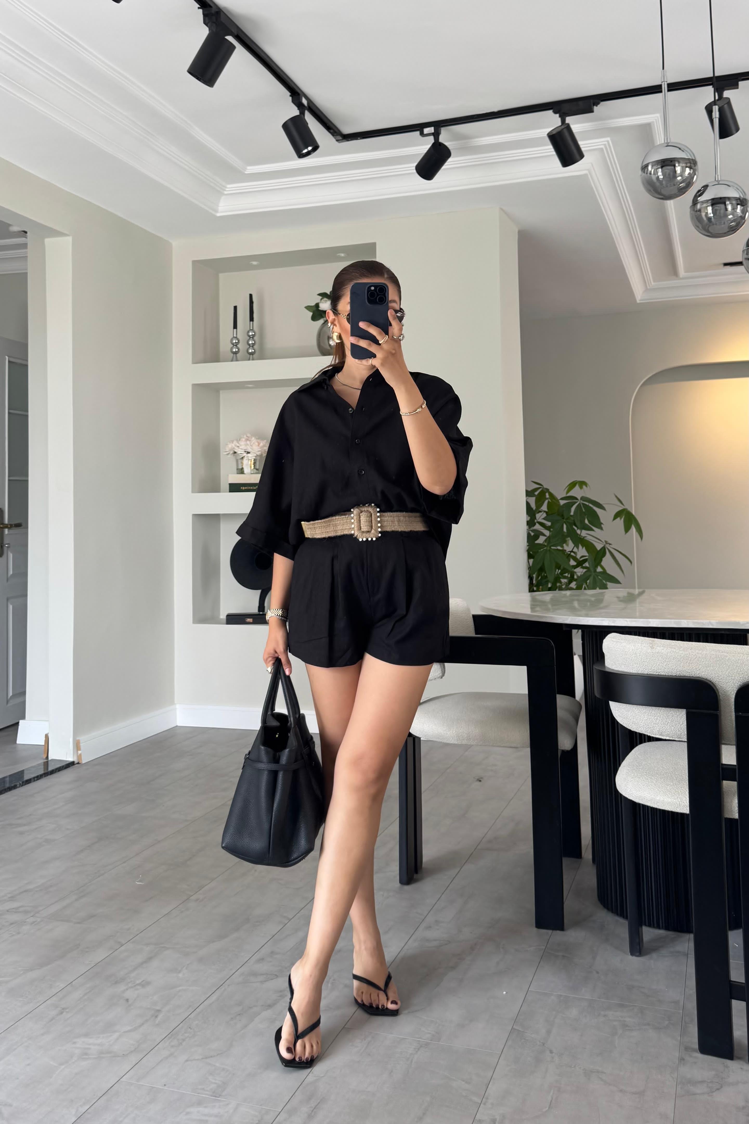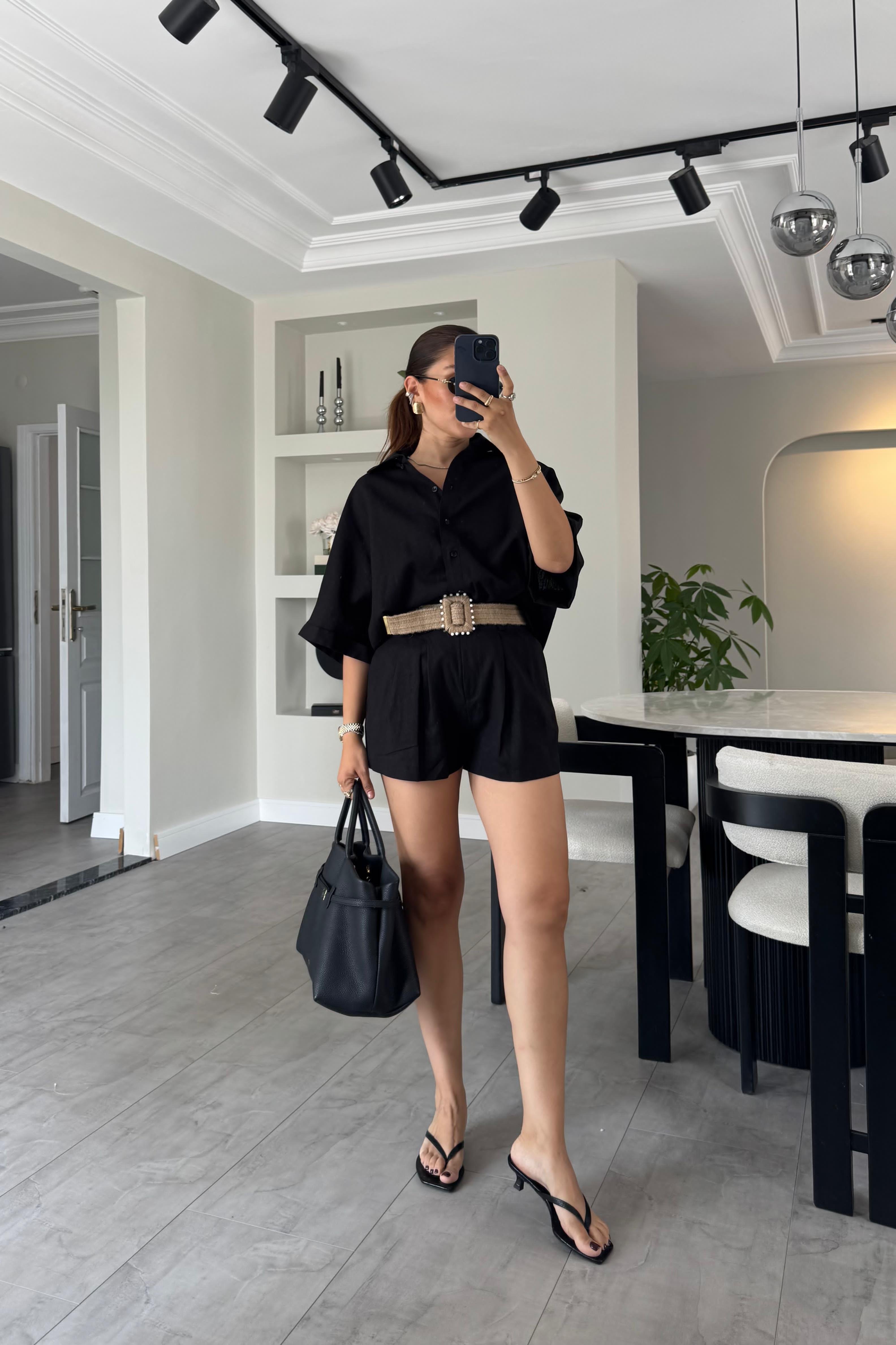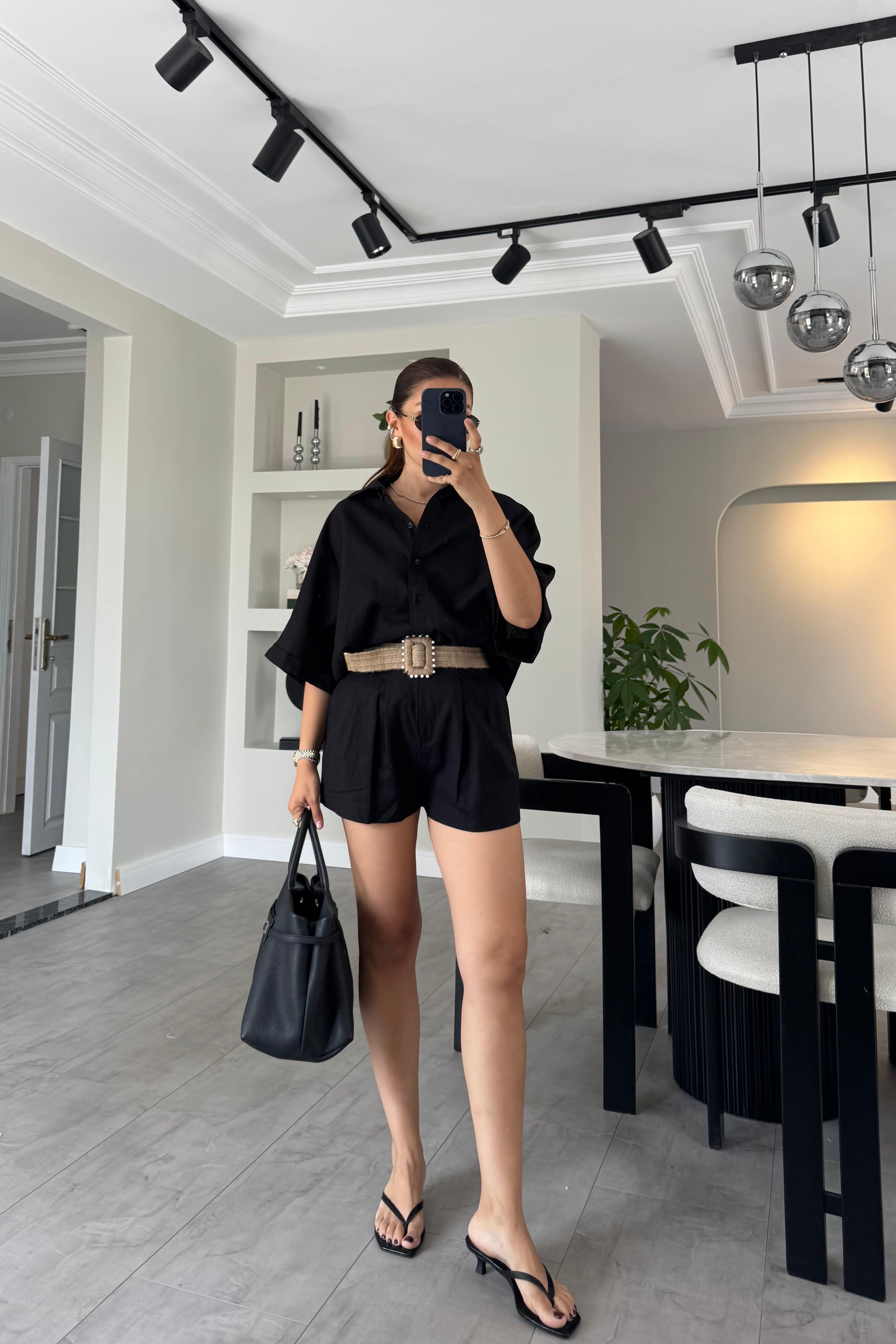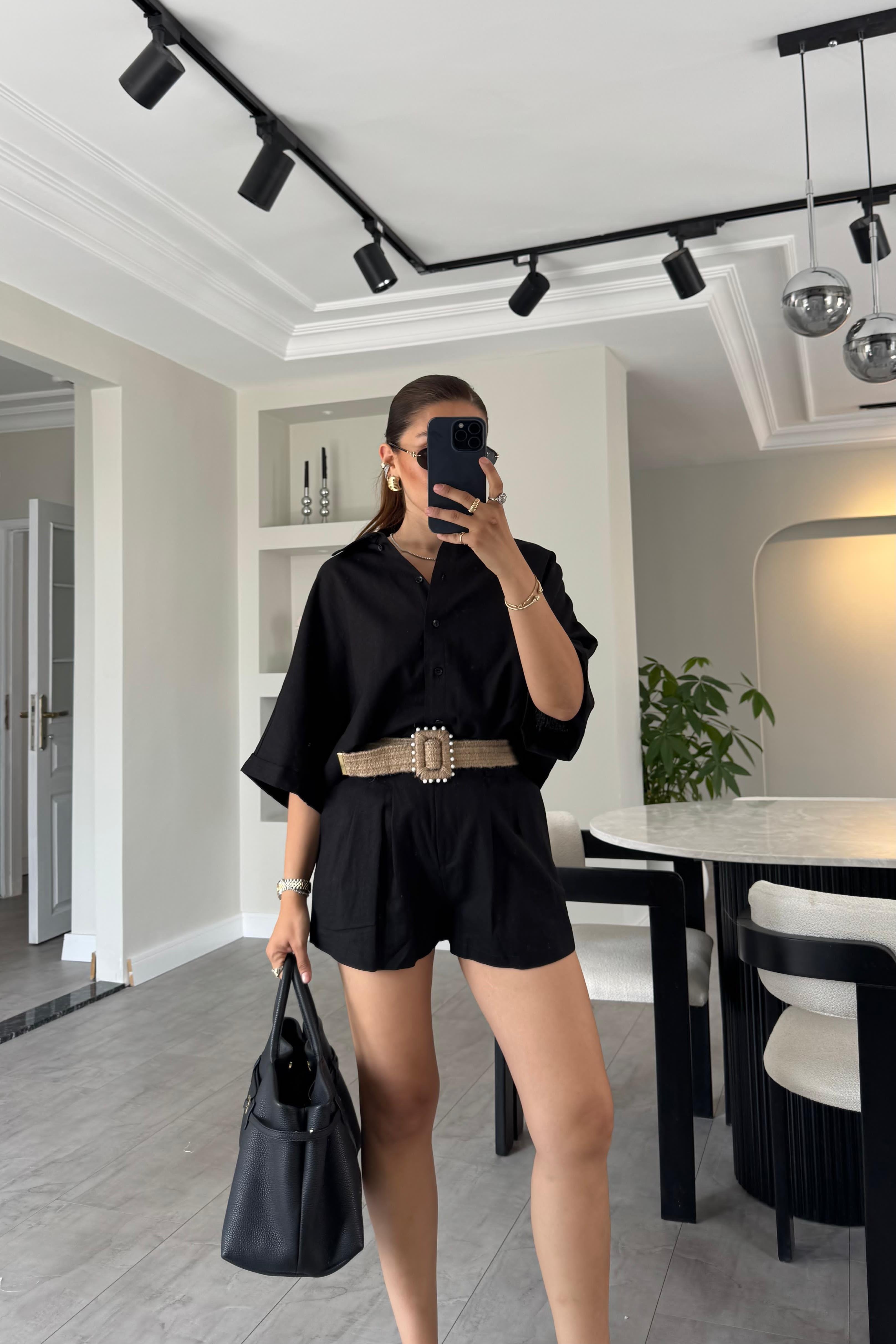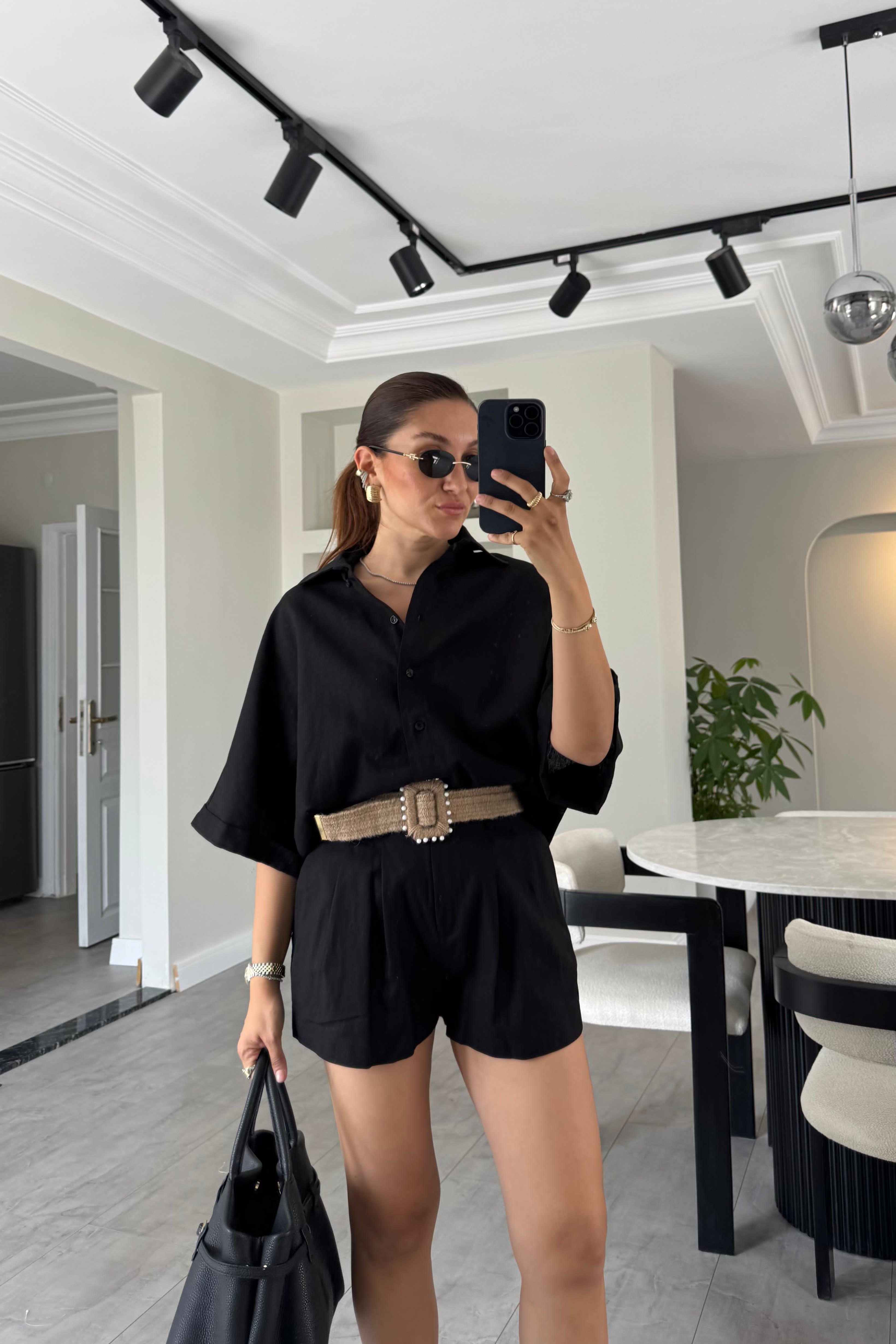 KETEN KEMERLİ ŞORT TAKIM/51036