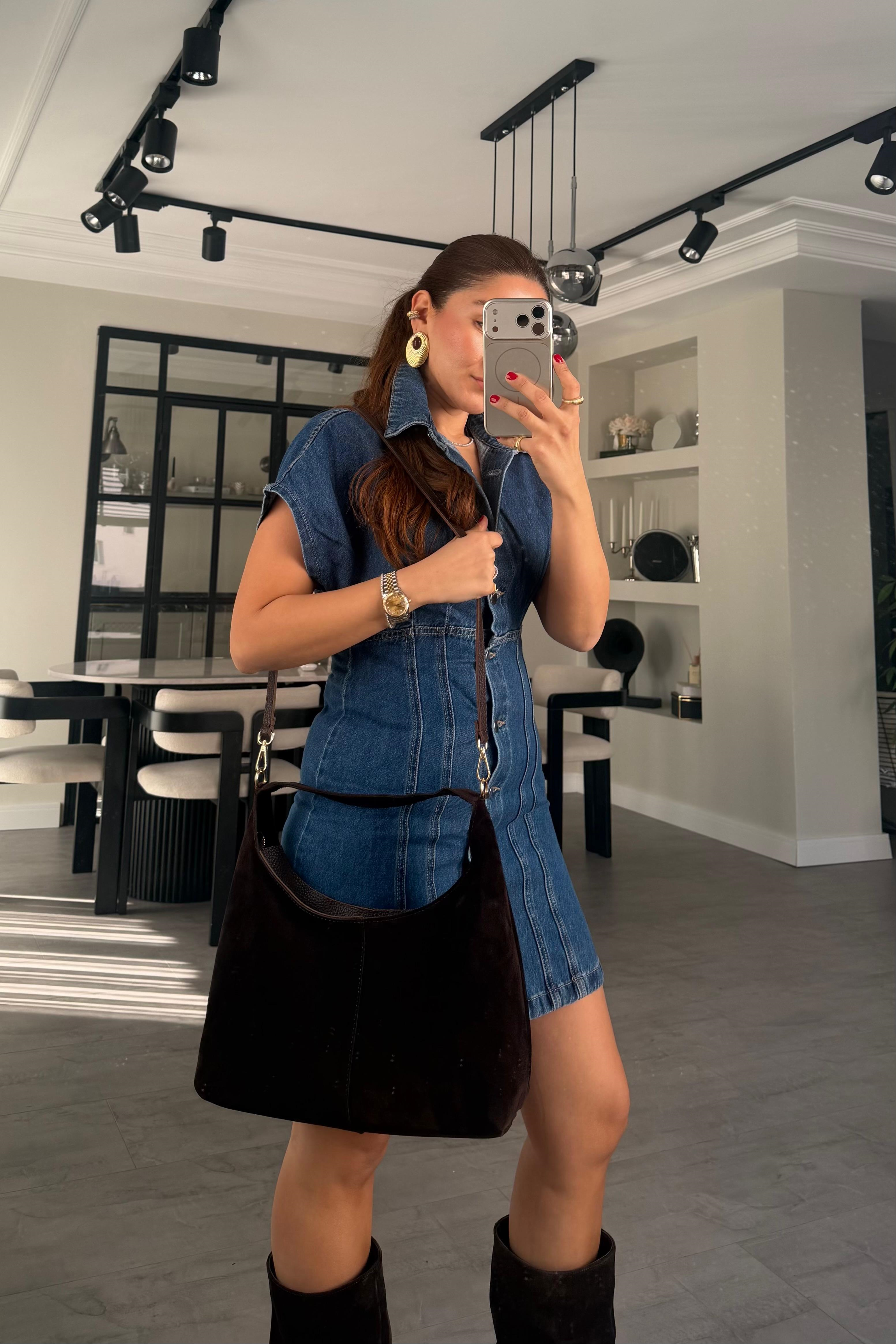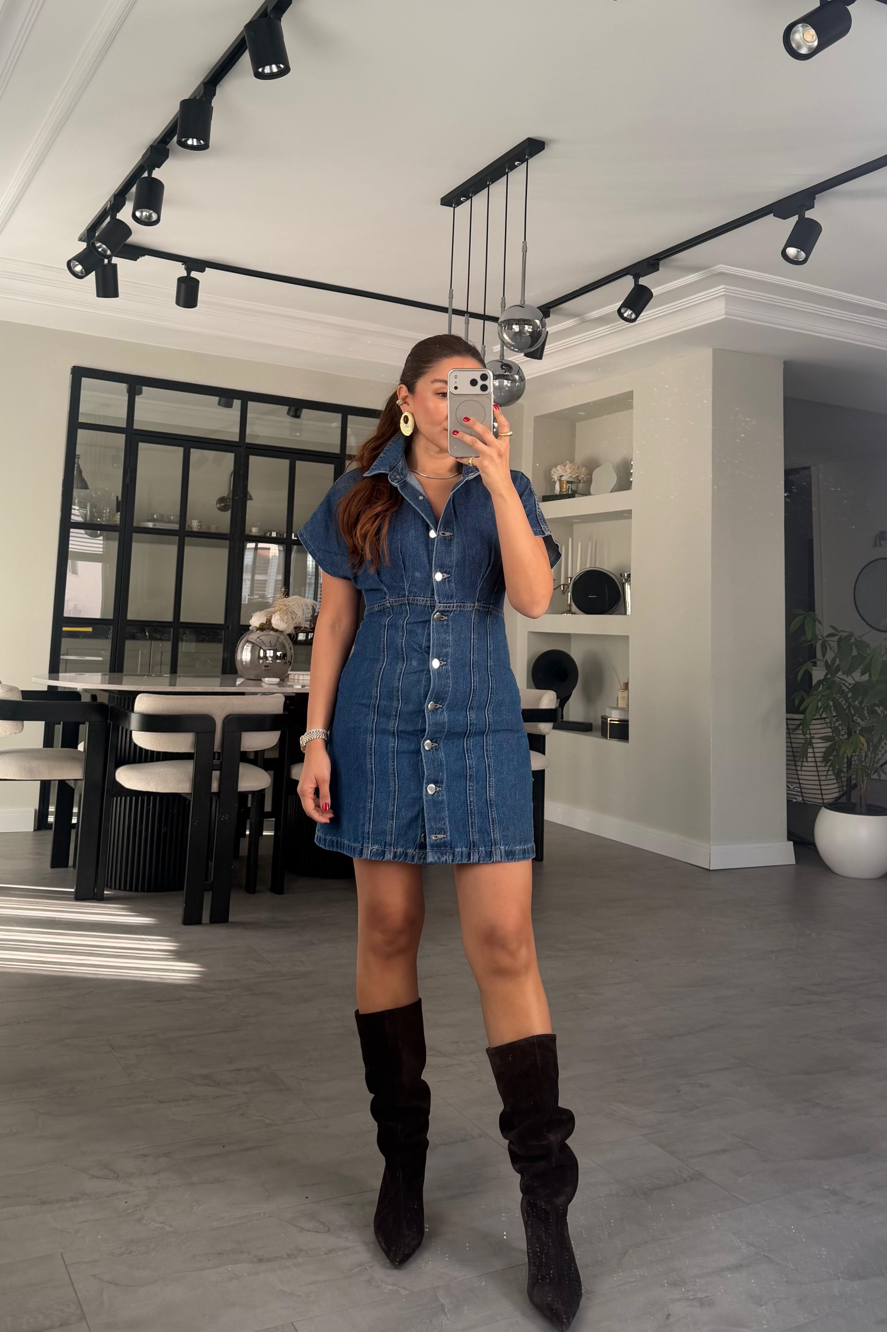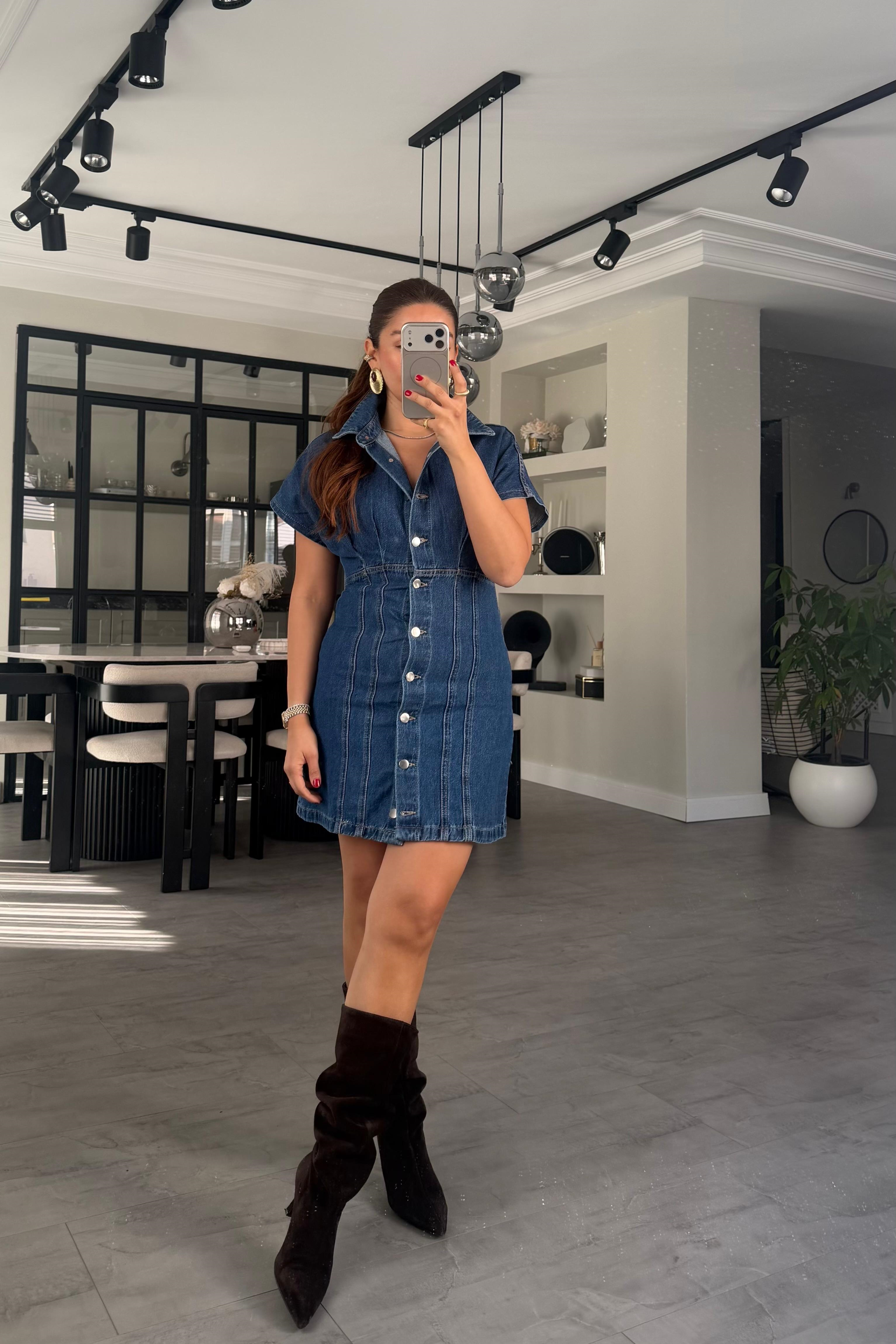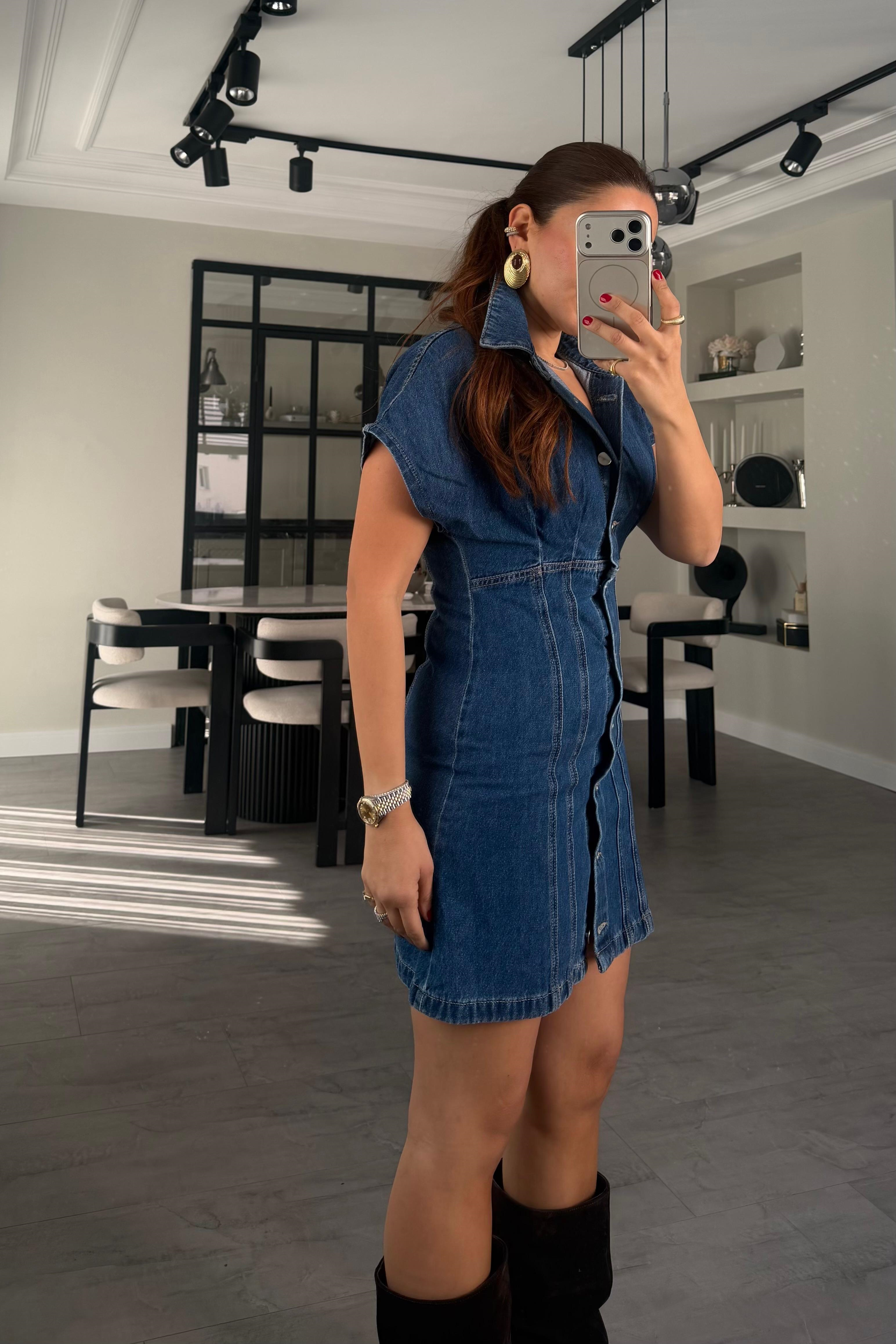 KISA KOL DENİM ZR ELBİSE