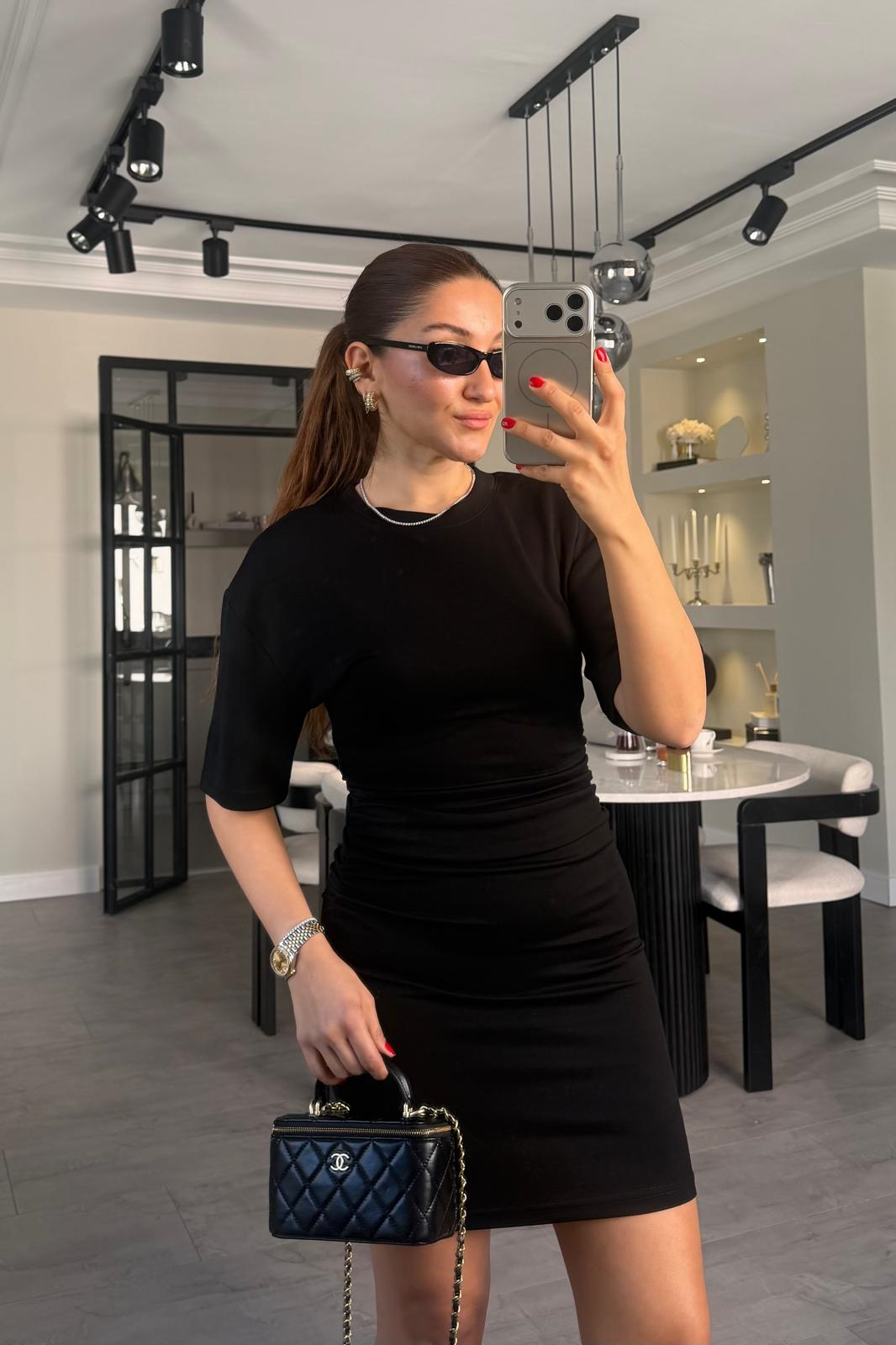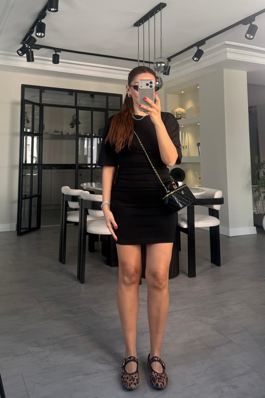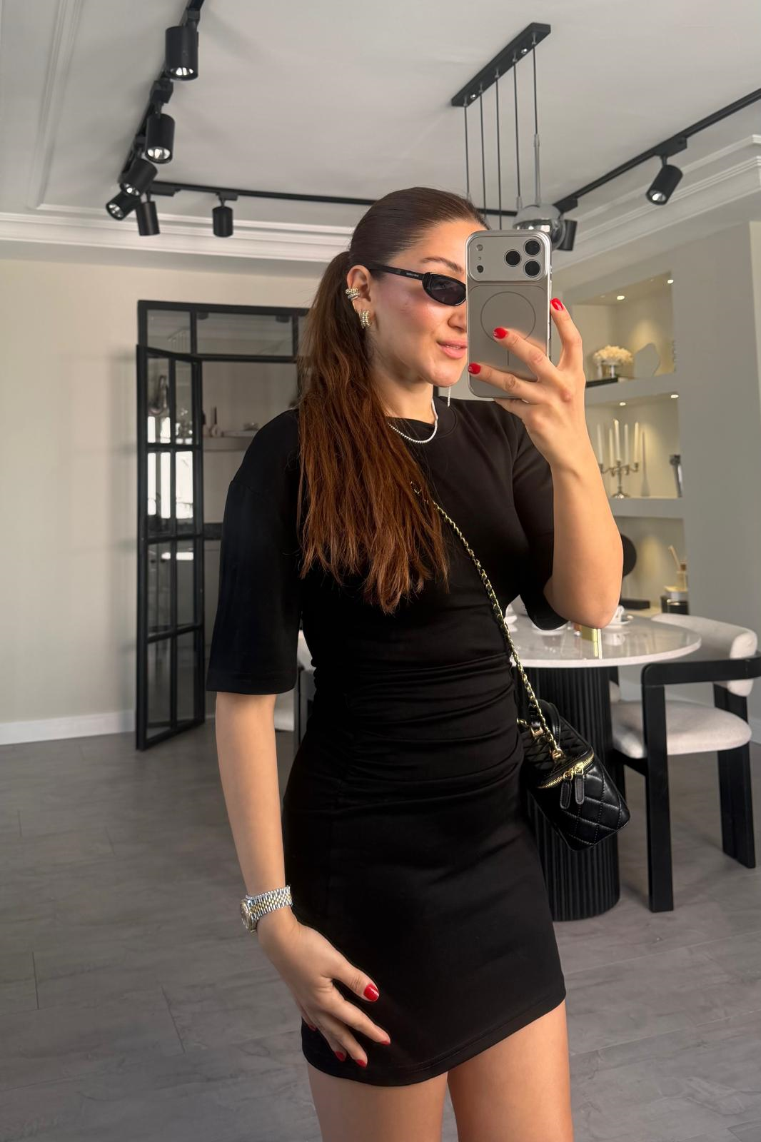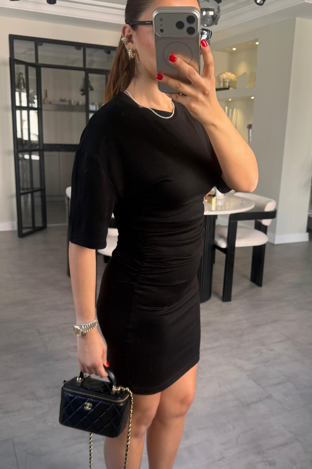 KISAKOL YANDAN BÜZGÜLÜ MİNİ ELBİSE/11509