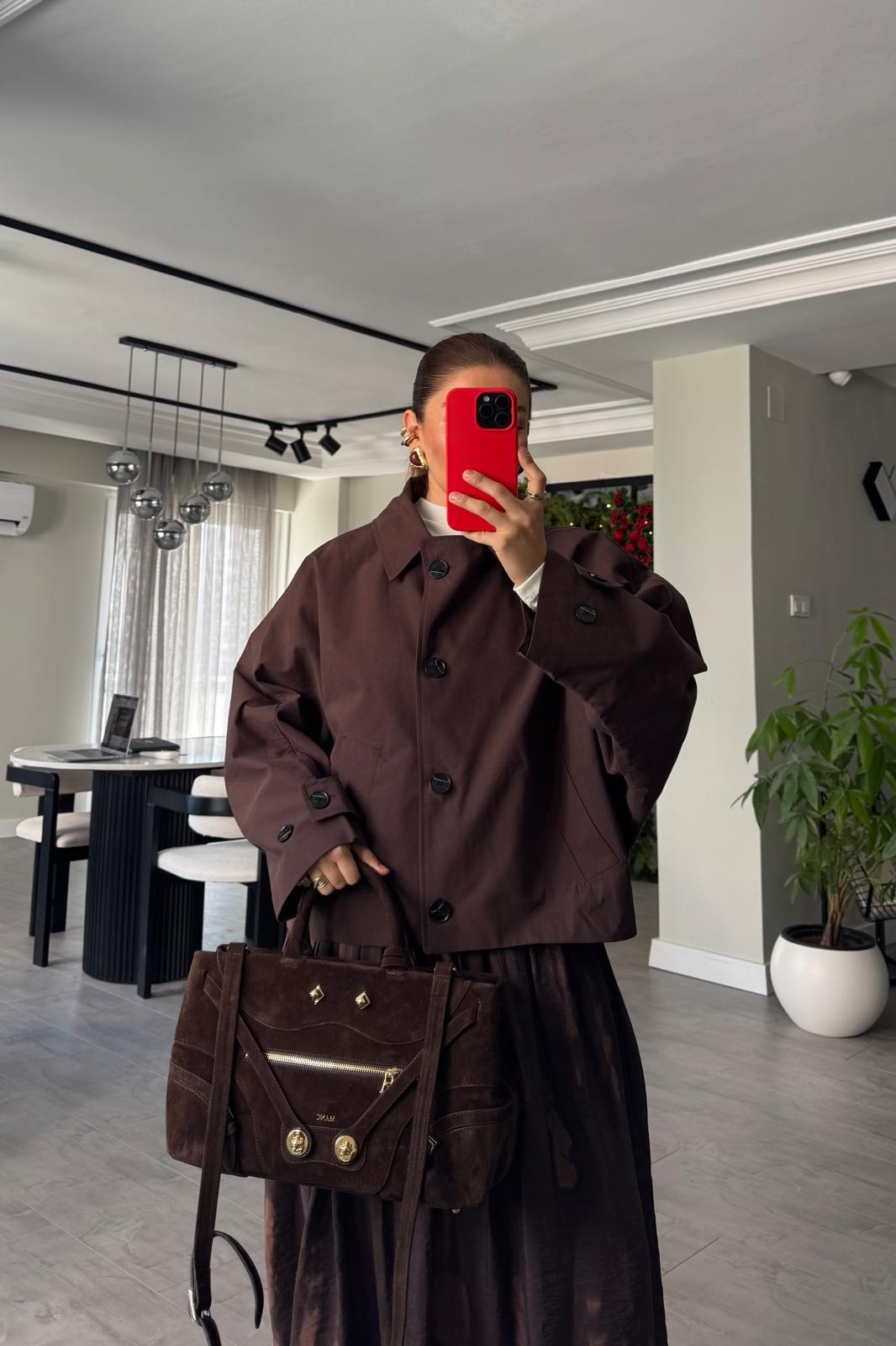 KOL DÜĞMELİ CROP TRENÇKOT / 9628