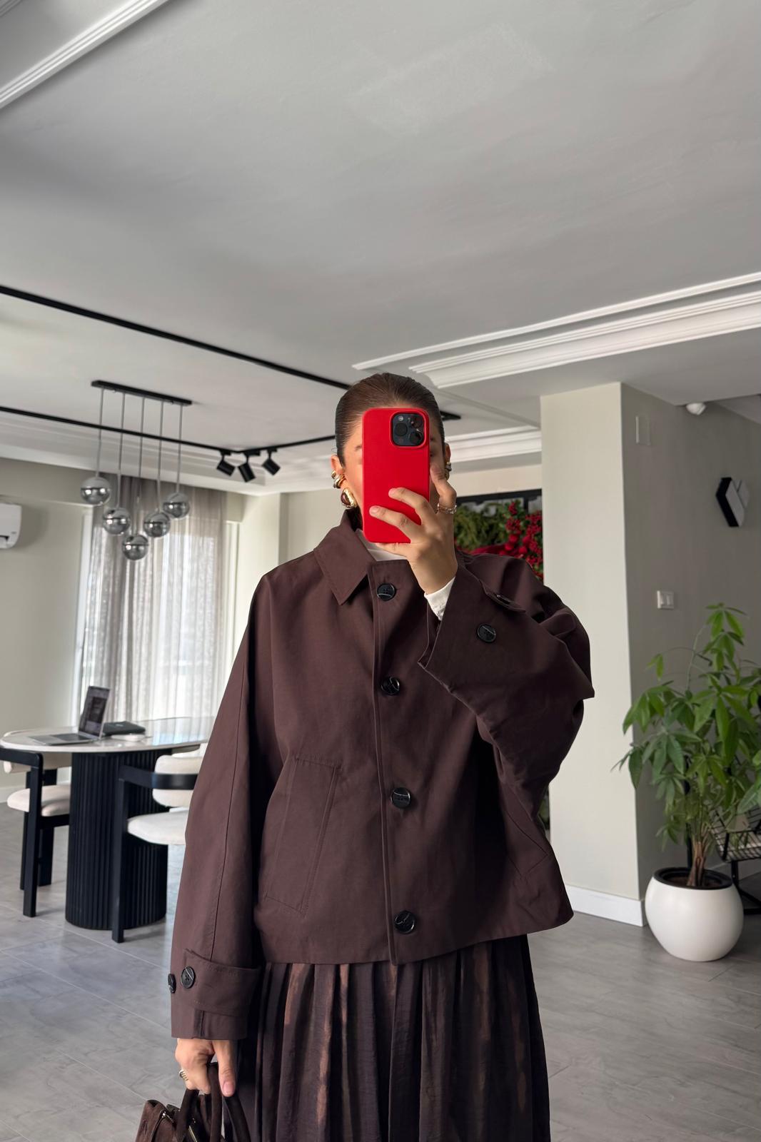 KOL DÜĞMELİ CROP TRENÇKOT / 9628 (26KMP04013)