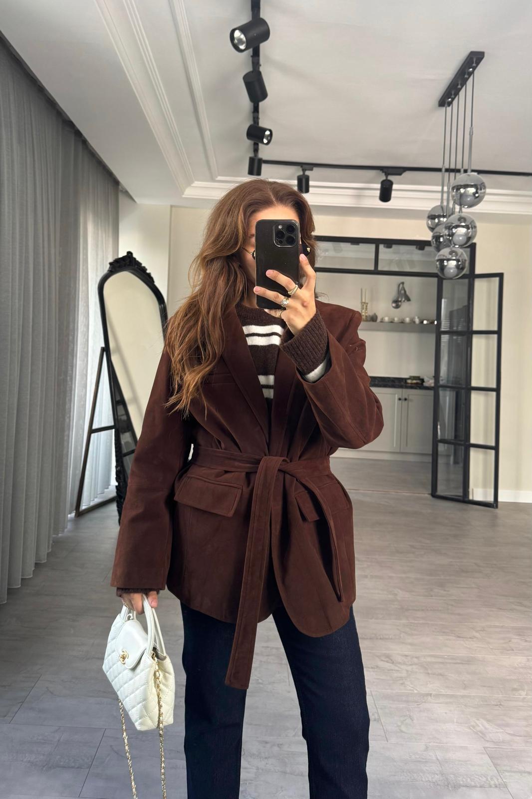 KUŞAKLI SÜET CEKET