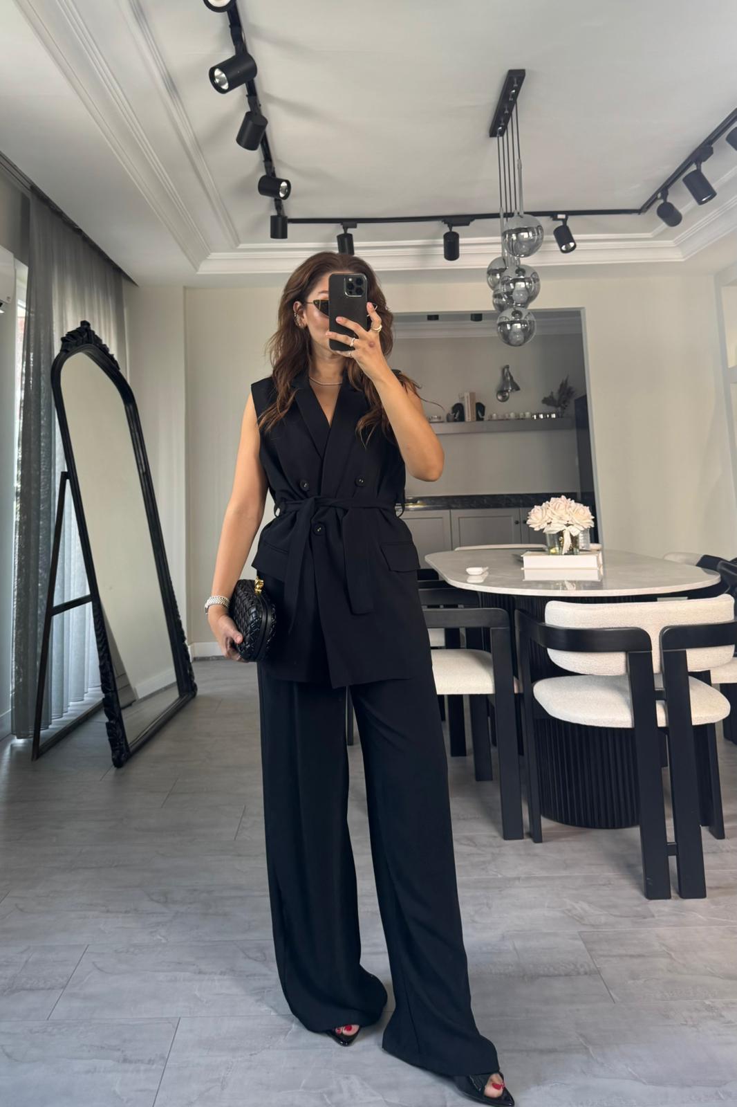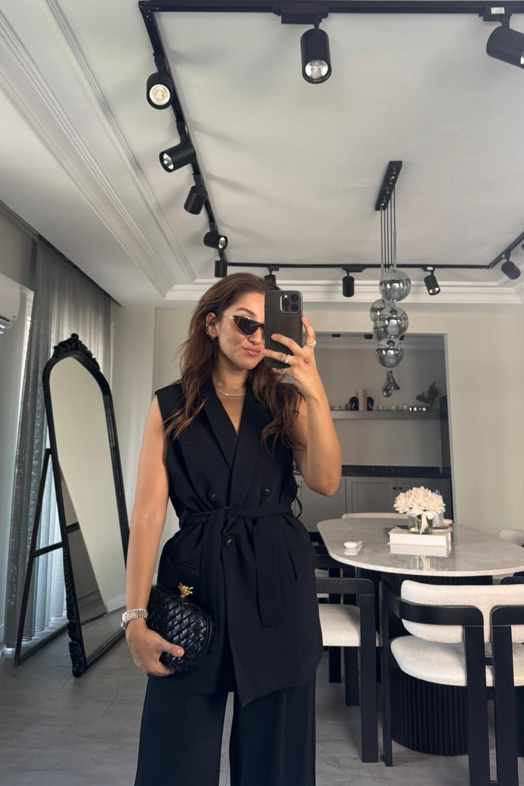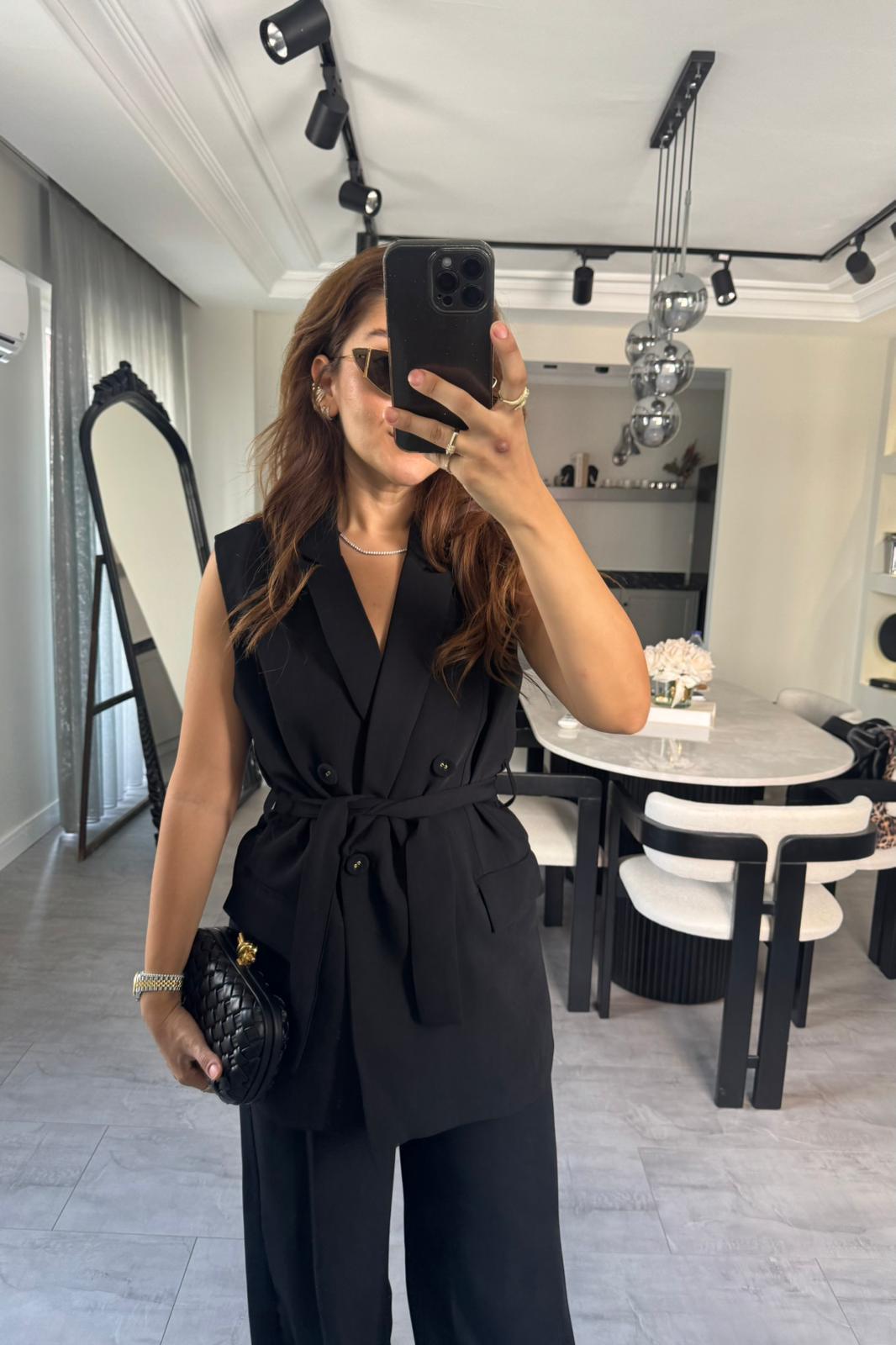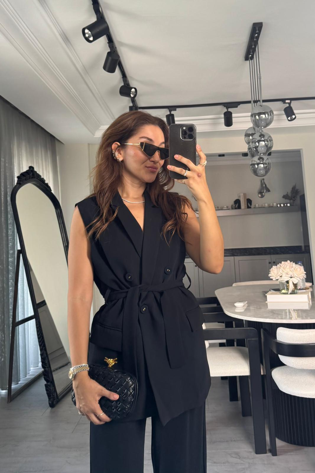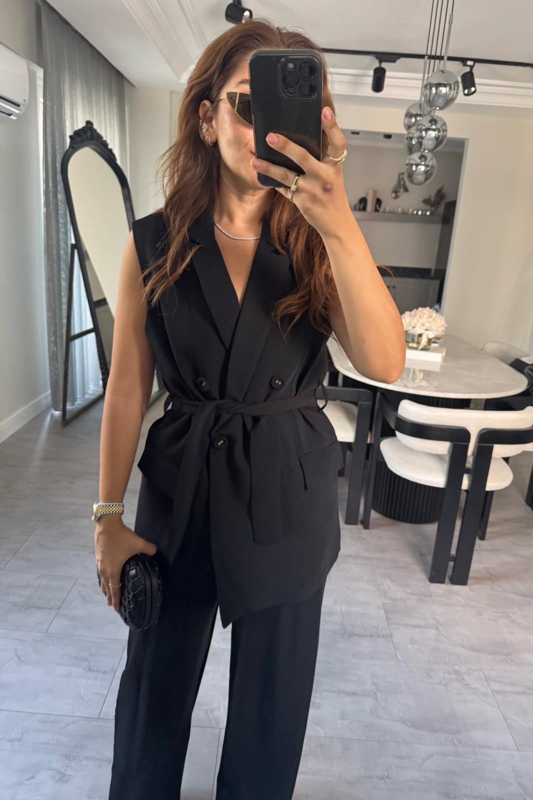 KUŞAKLI YELEK KUMAŞ TAKIM/9413