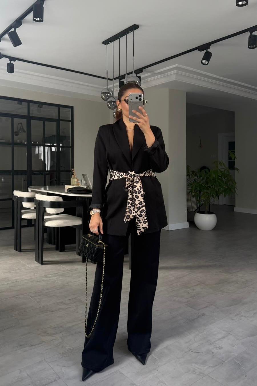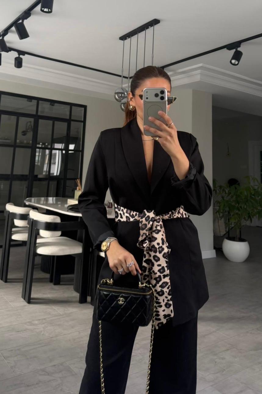 LEOPAR KUŞAKLI CEKET/7681