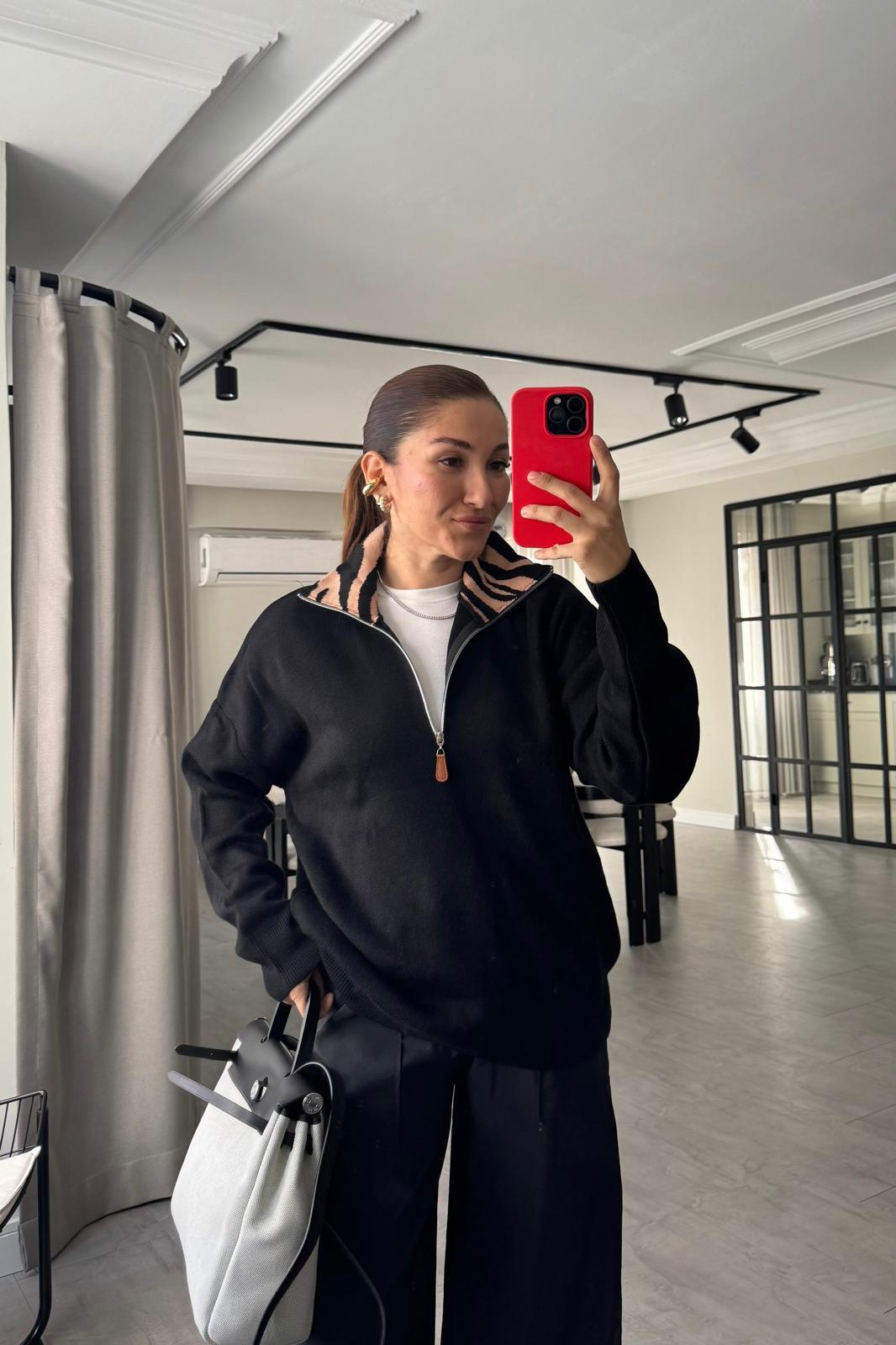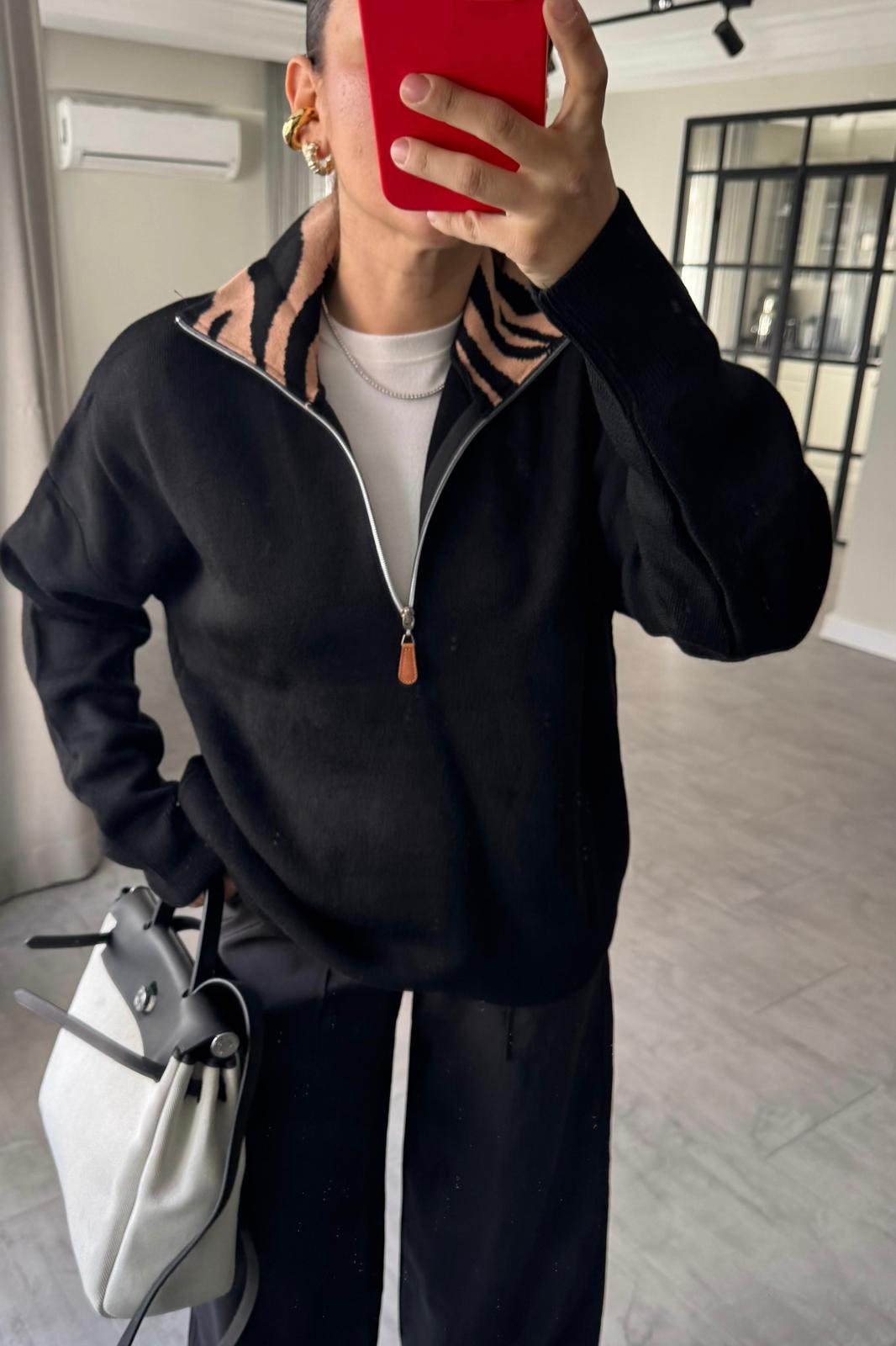 LEOPAR YAKALI FERMUARLI KAZAK/1249