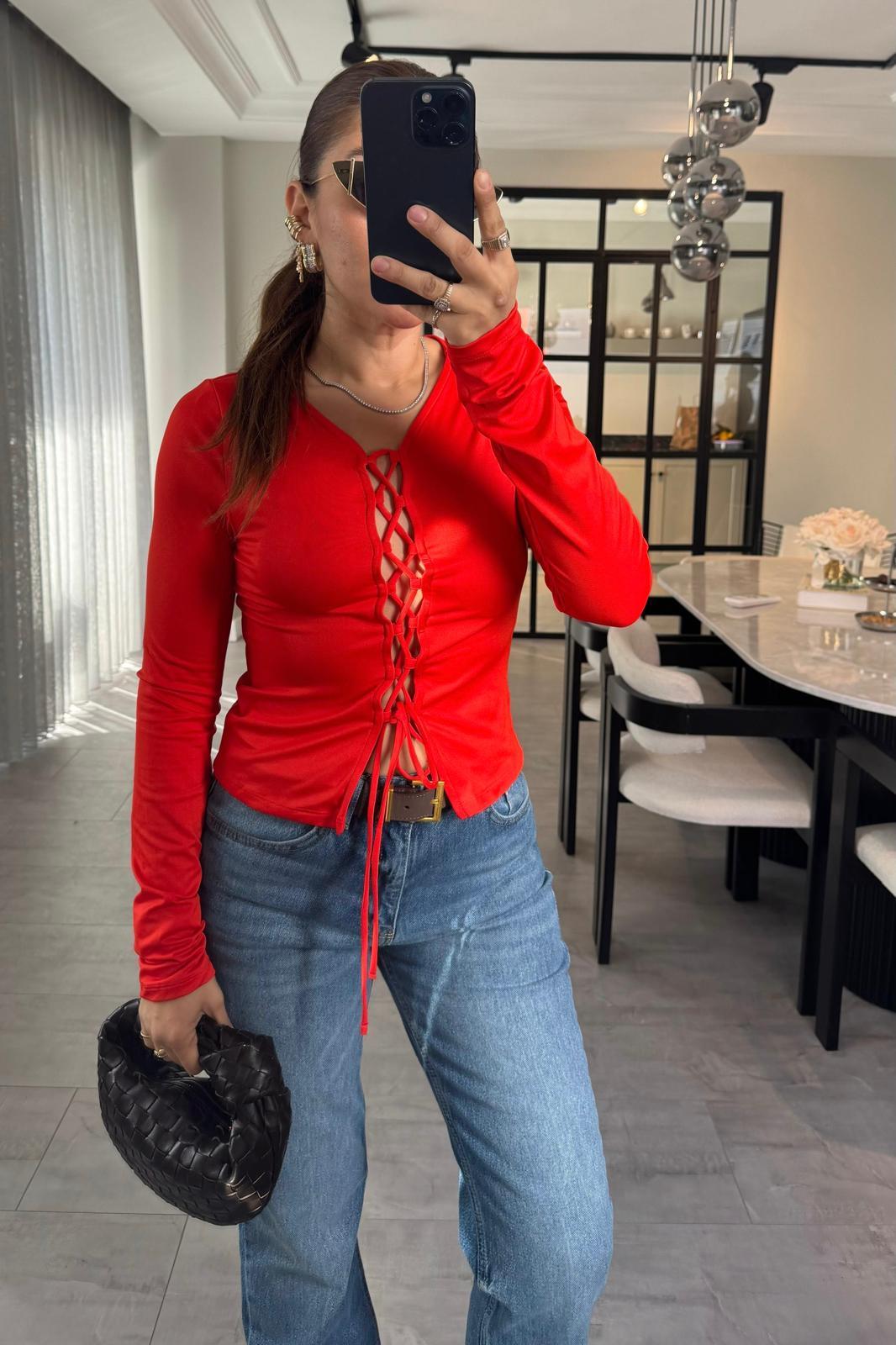 ÖNÜ DEKOLTELİ BAĞLAMALI BODY (23KEL32003)