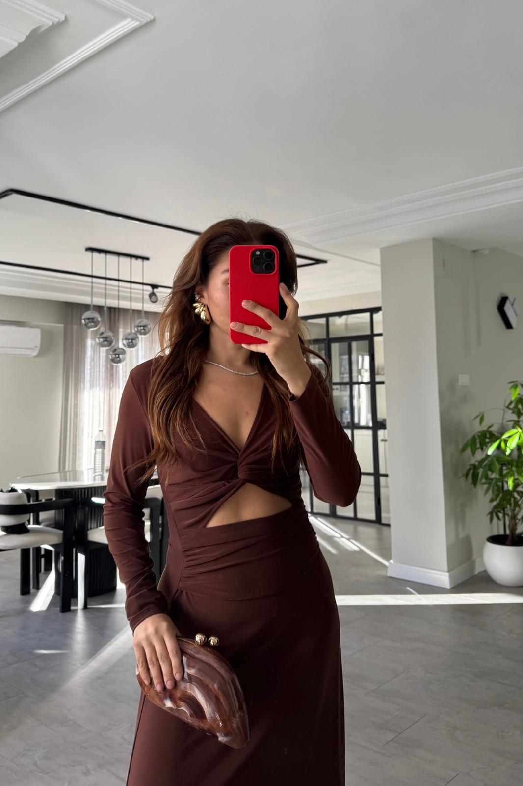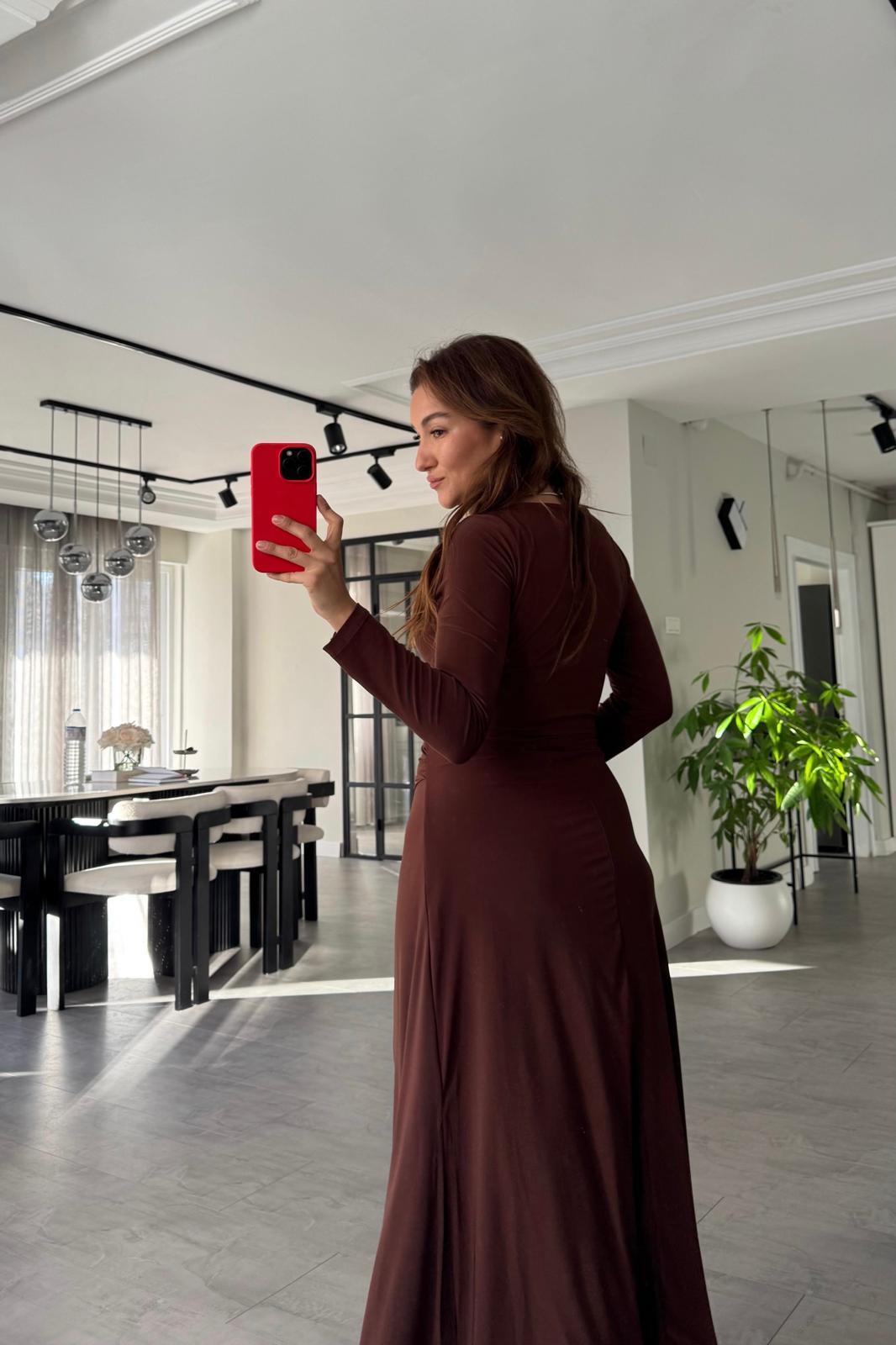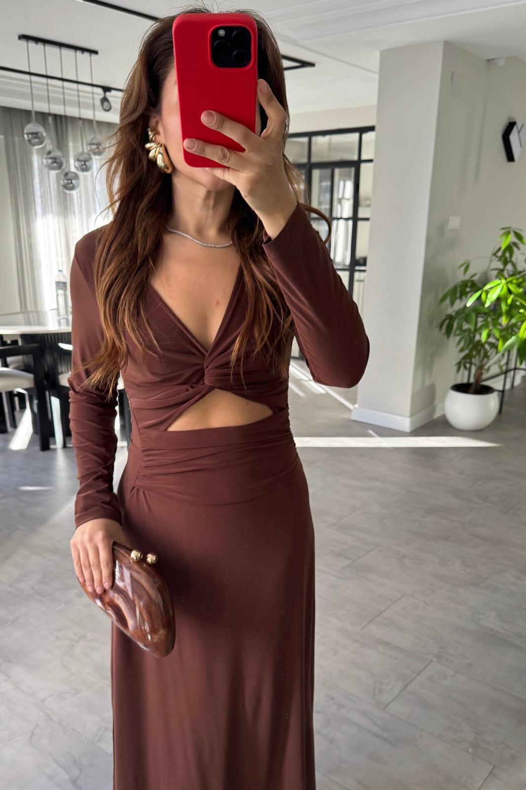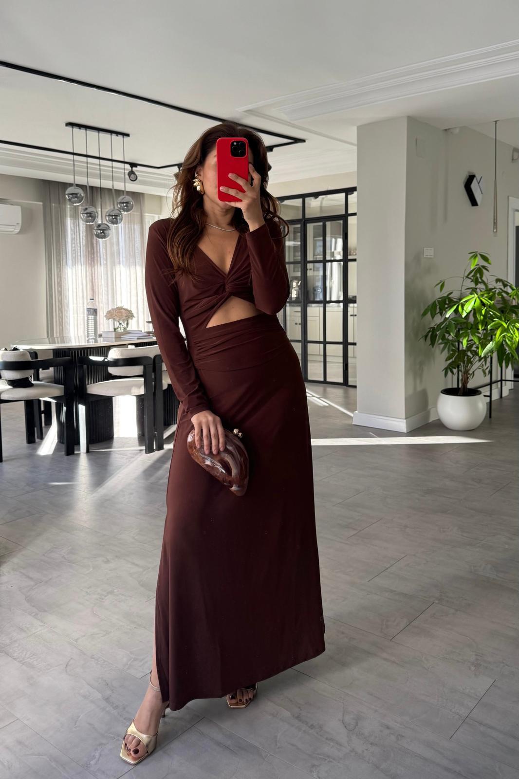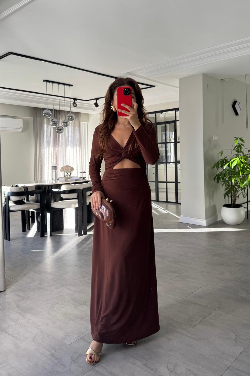 ÖNÜ DÜĞÜM PENCERE DETAYLI MAKSİ ELBİSE/2048