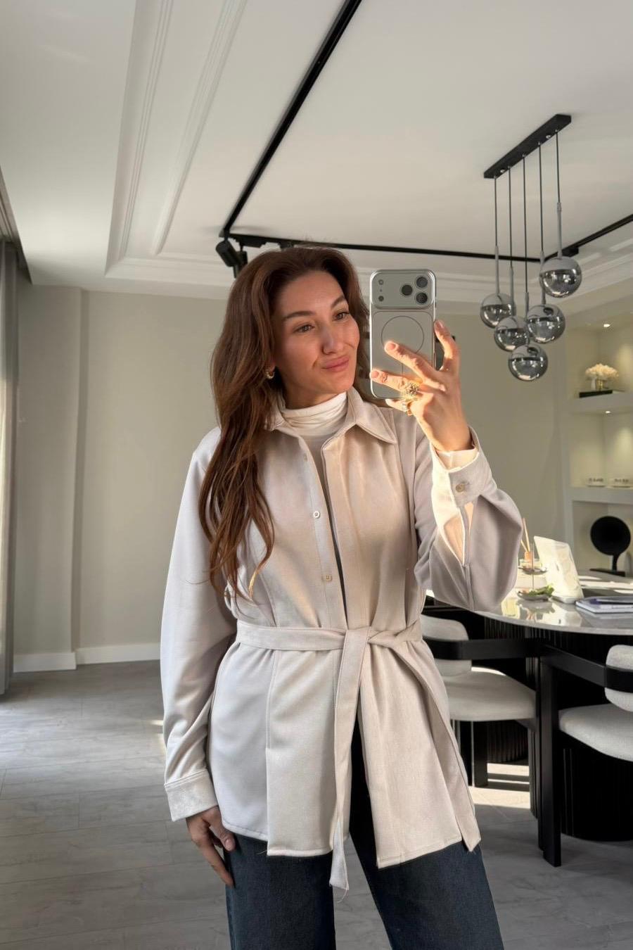 ÖNÜ SÜET DETAY KUŞAKLI CEKET