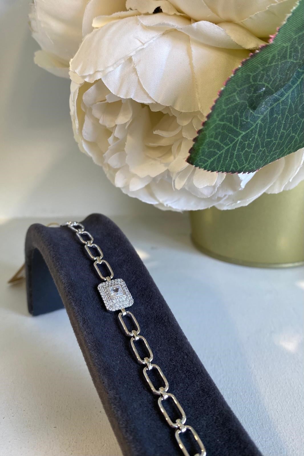 ORTASI BAGET TOPLU KARE ZİNCİR BİLEZİK