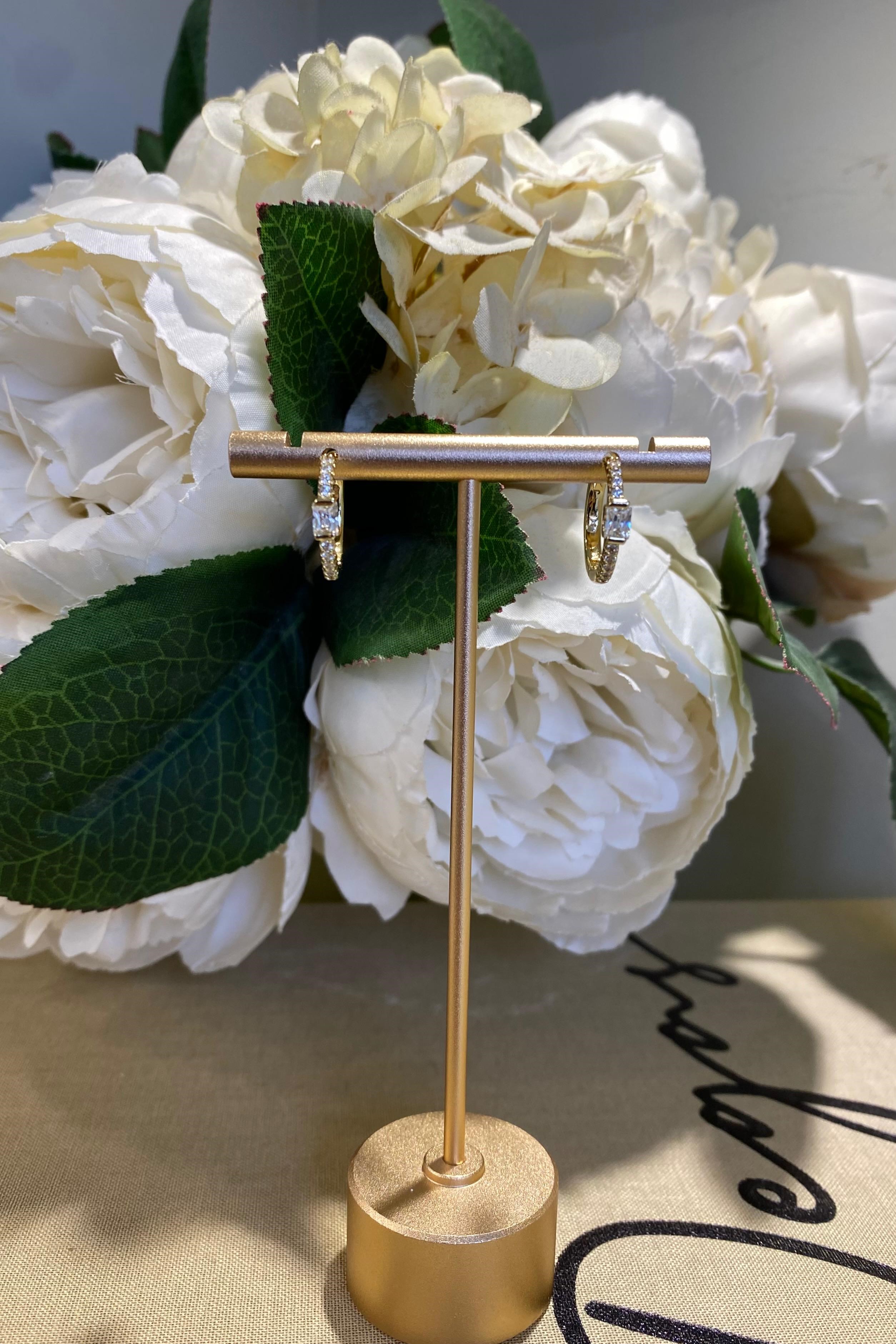 ORTASI DİKDÖRTGEN TAŞLI MİNİK HALKA KÜPE