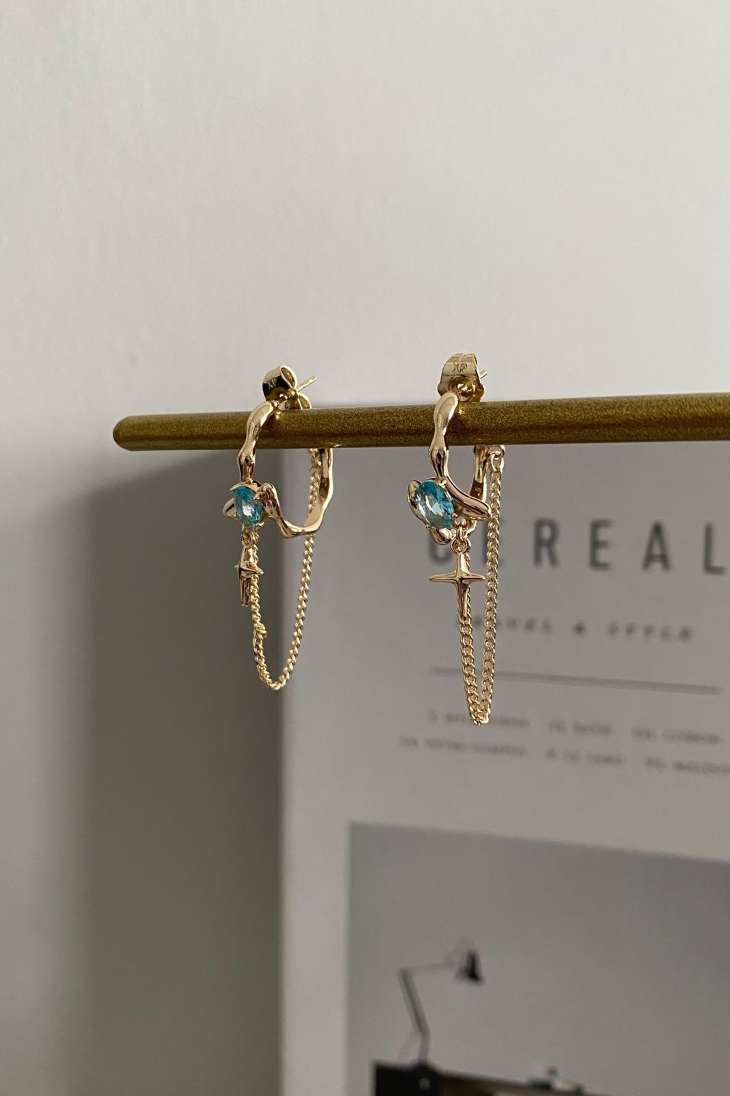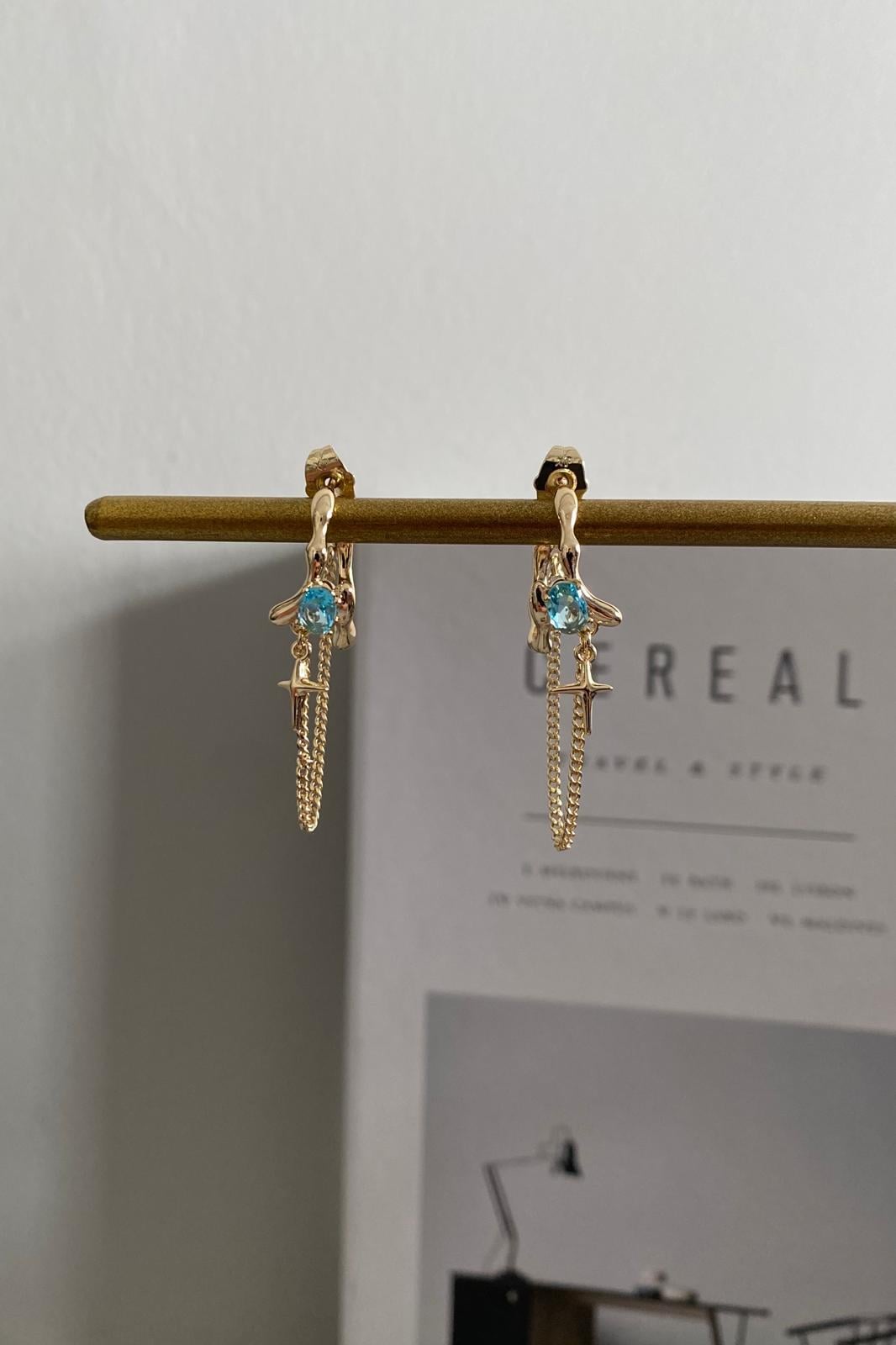OVAL MAVİ TAŞLI ZİNCİR KÜPE