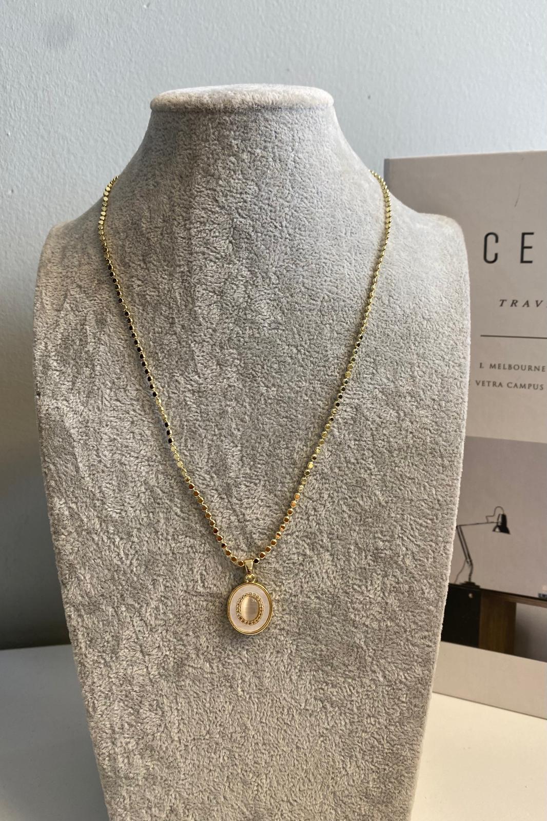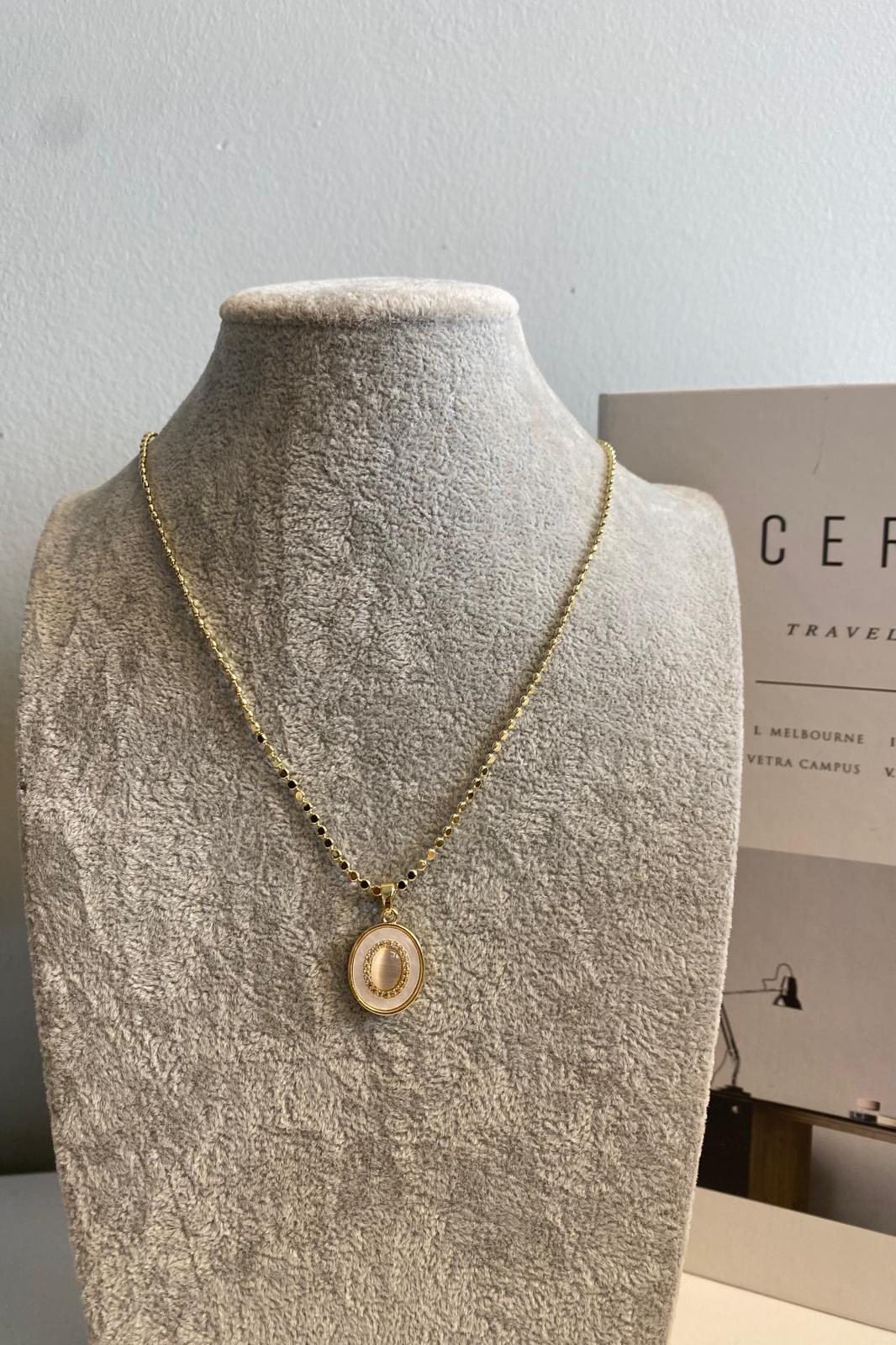 OVAL SEDEF TAŞLI EZME NOKTALI KOLYE 45cm
