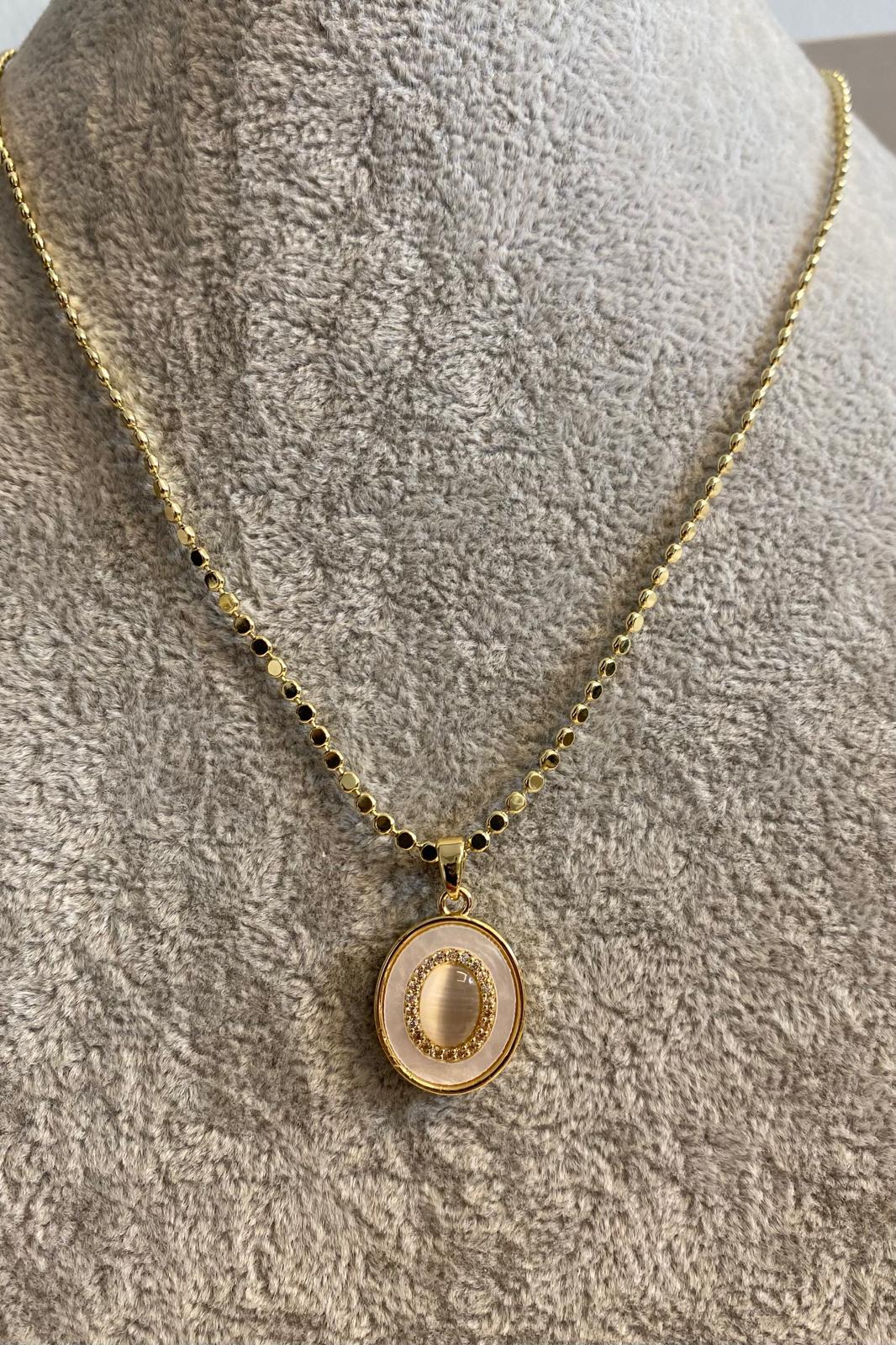 OVAL SEDEF TAŞLI EZME NOKTALI KOLYE 45cm (25GFB12074)