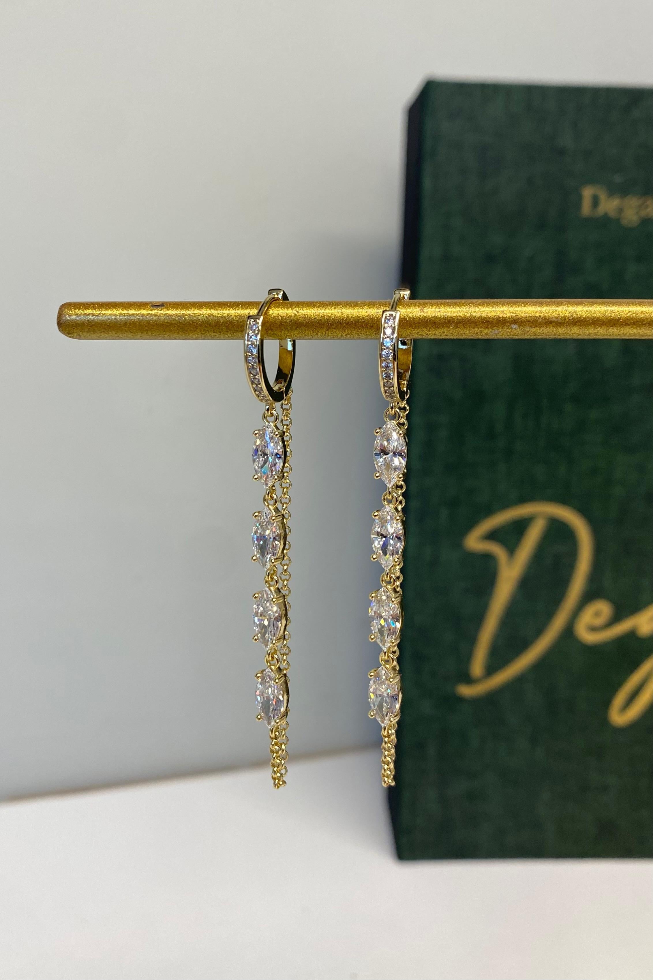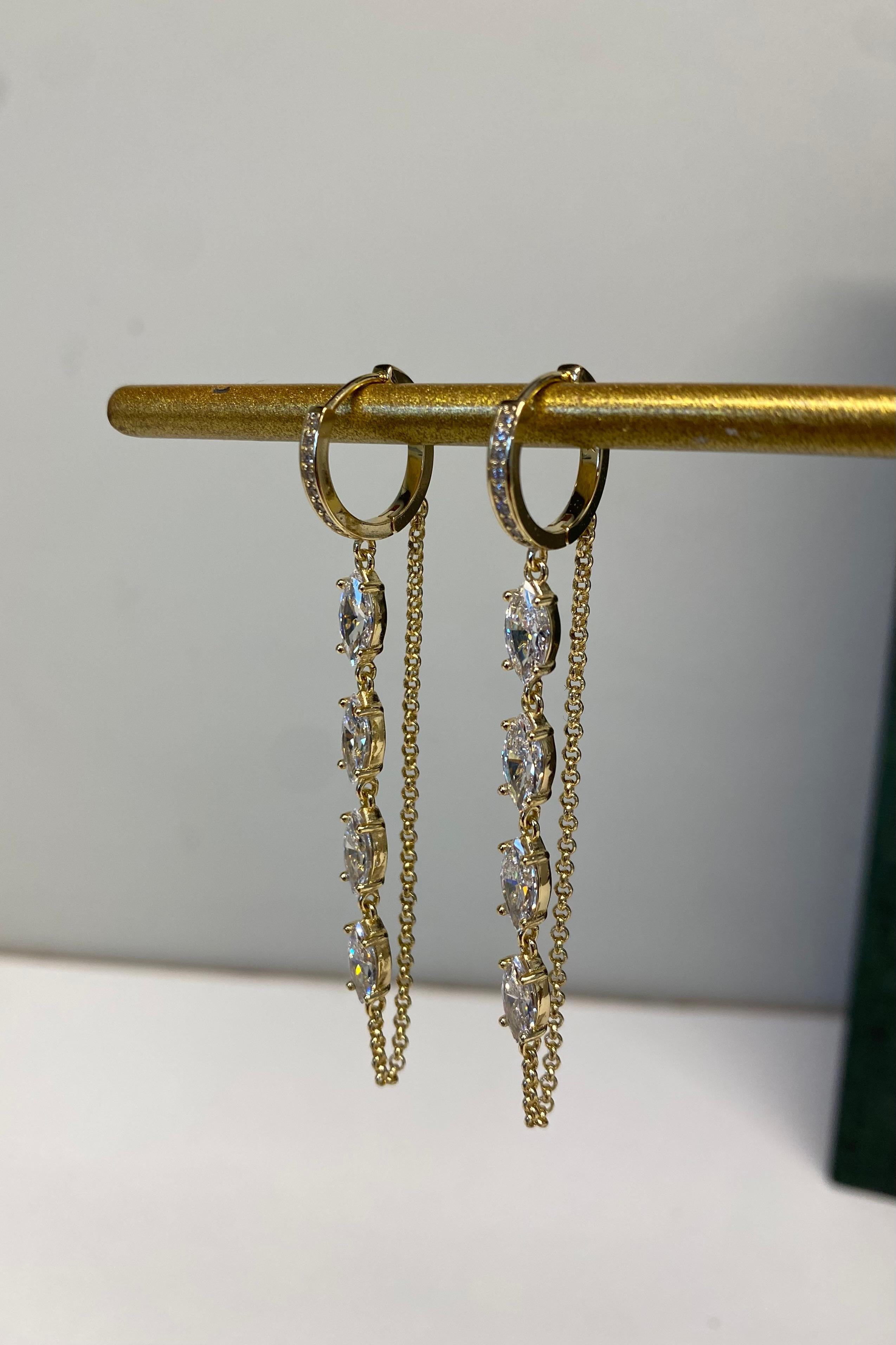 OVAL TAŞLI UZUN ZİNCİR KÜPE