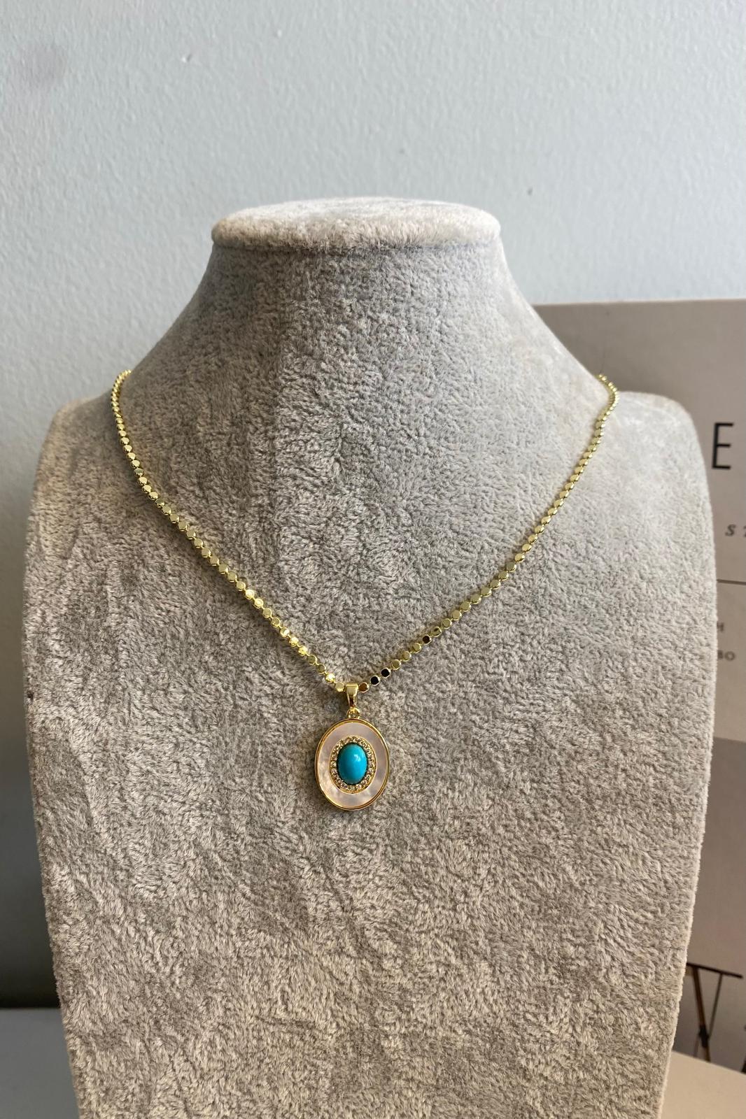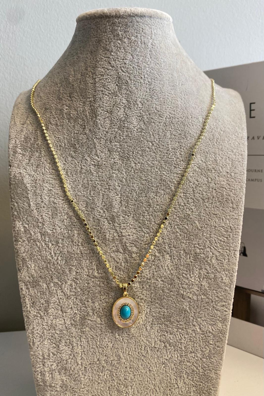OVAL TURKUAZ TAŞLI EZME NOKTALI KOLYE (25GFB12073)