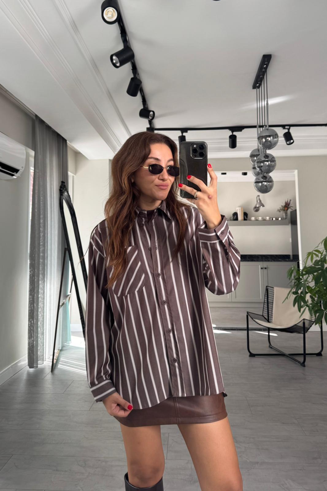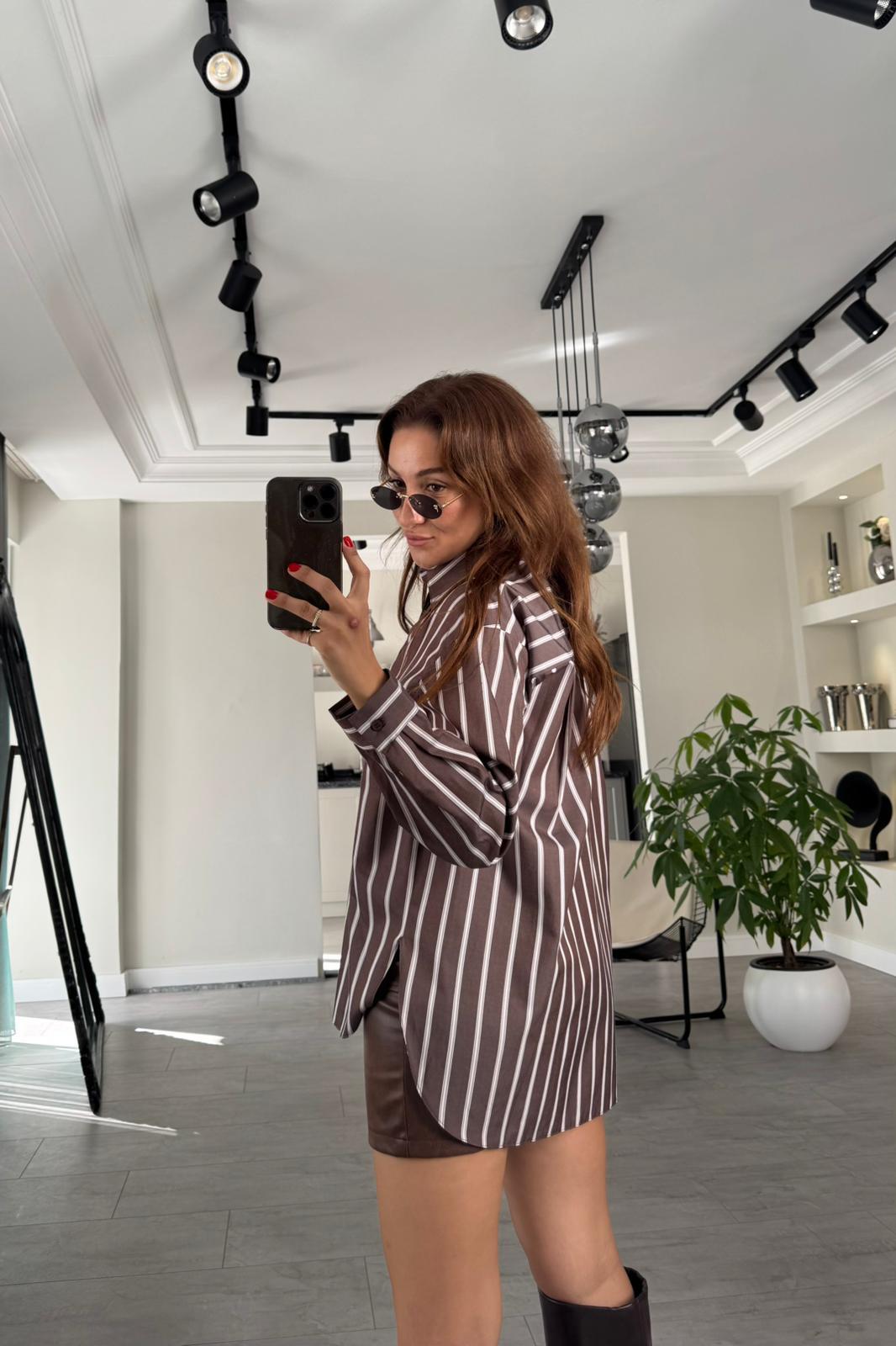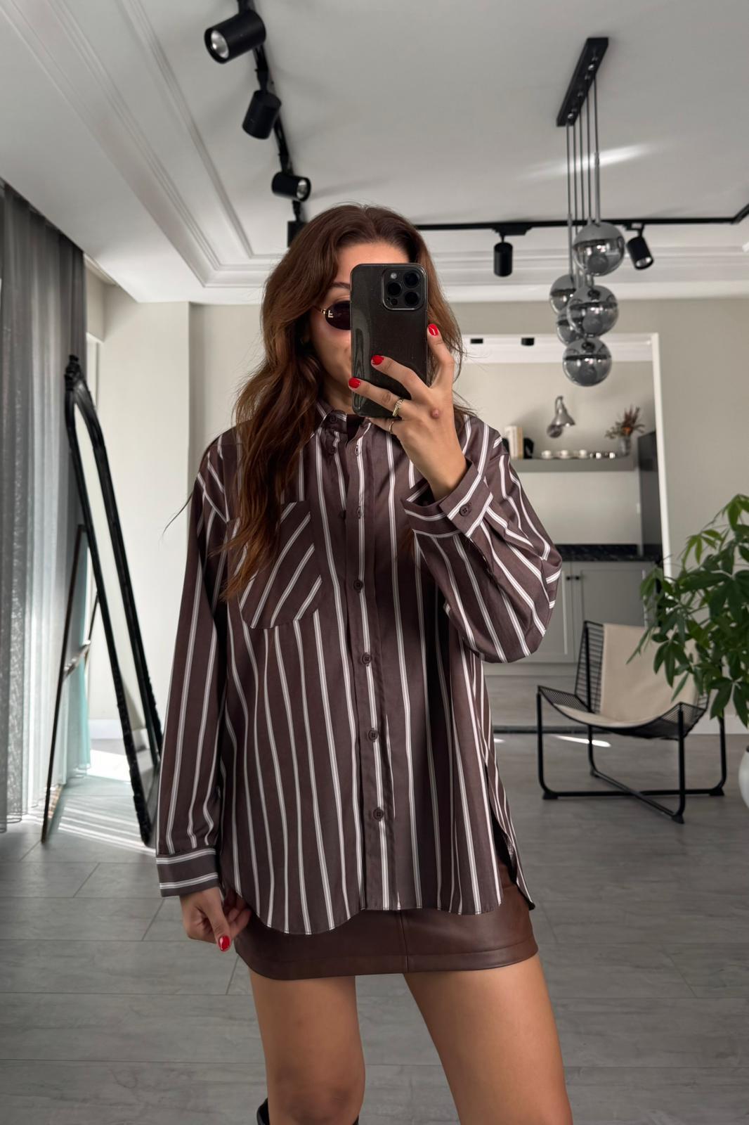 OVERSİZE ÇİZGİLİ GÖMLEK/3191