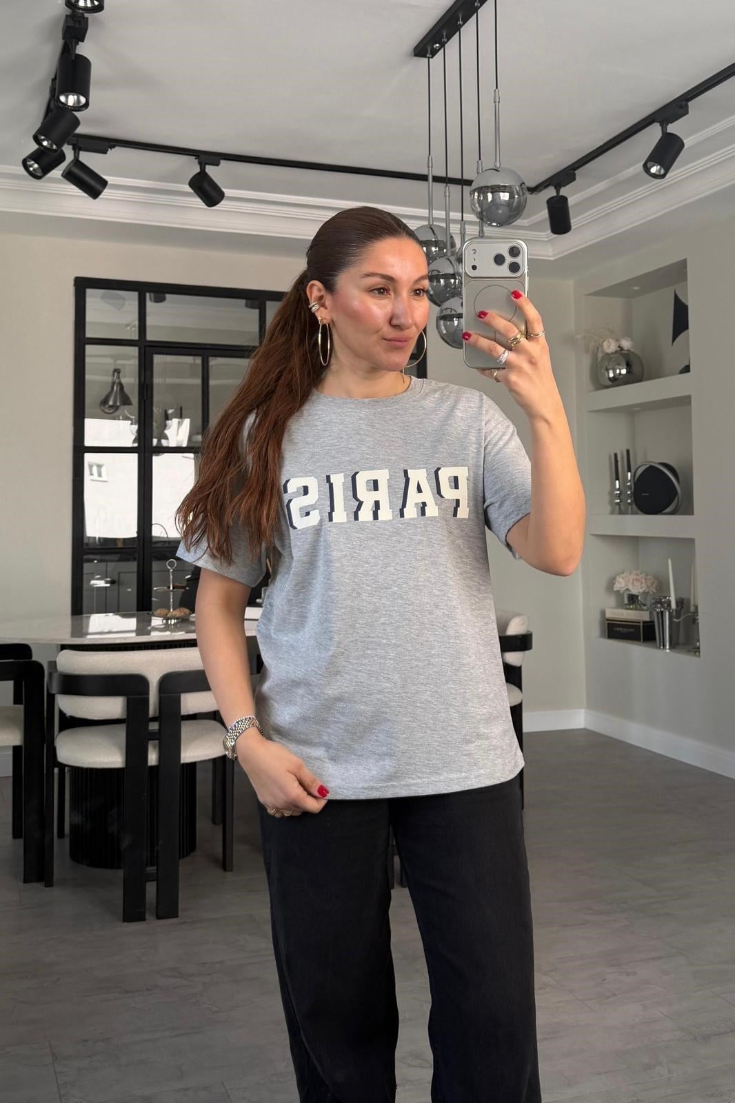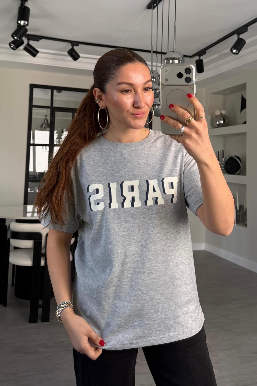 PARİS BASKILI OVERSİZE T-SHİRT