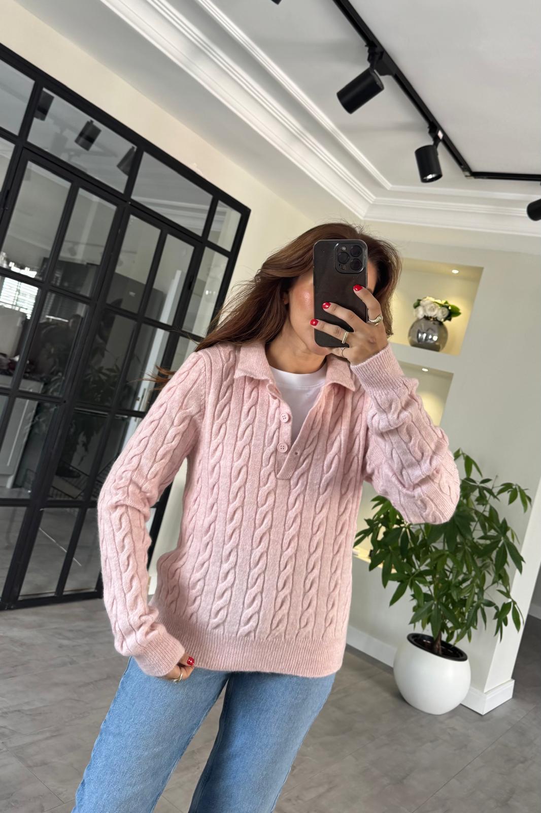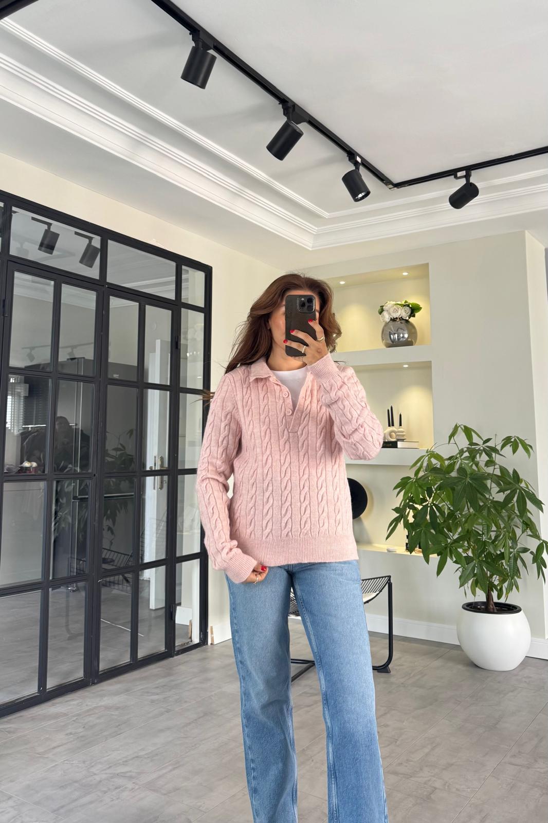 POLO YAKA SAÇ ÖRGÜLÜ KAZAK/10145 (26KRY09001)