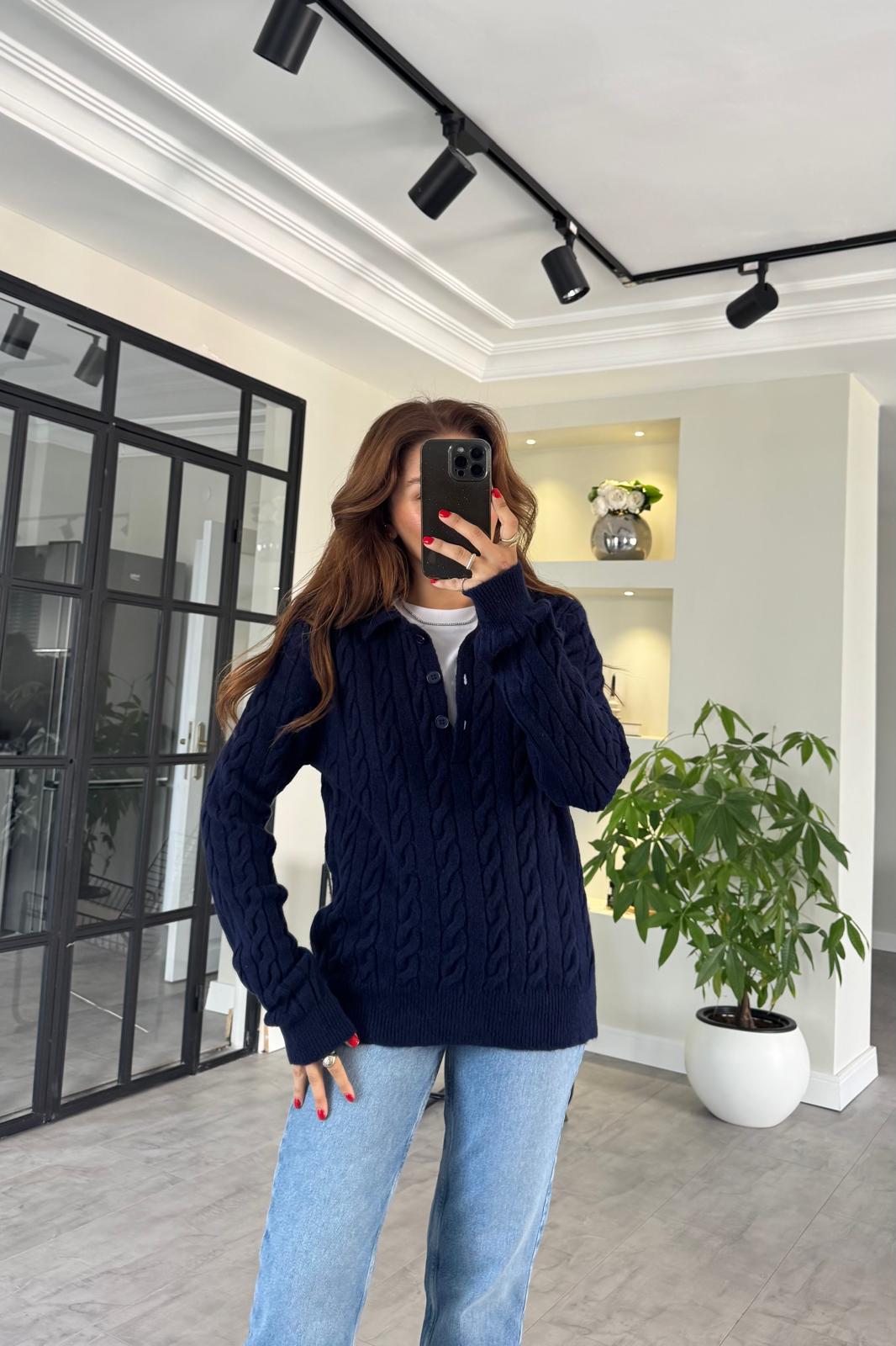 POLO YAKA SAÇ ÖRGÜLÜ KAZAK/10145