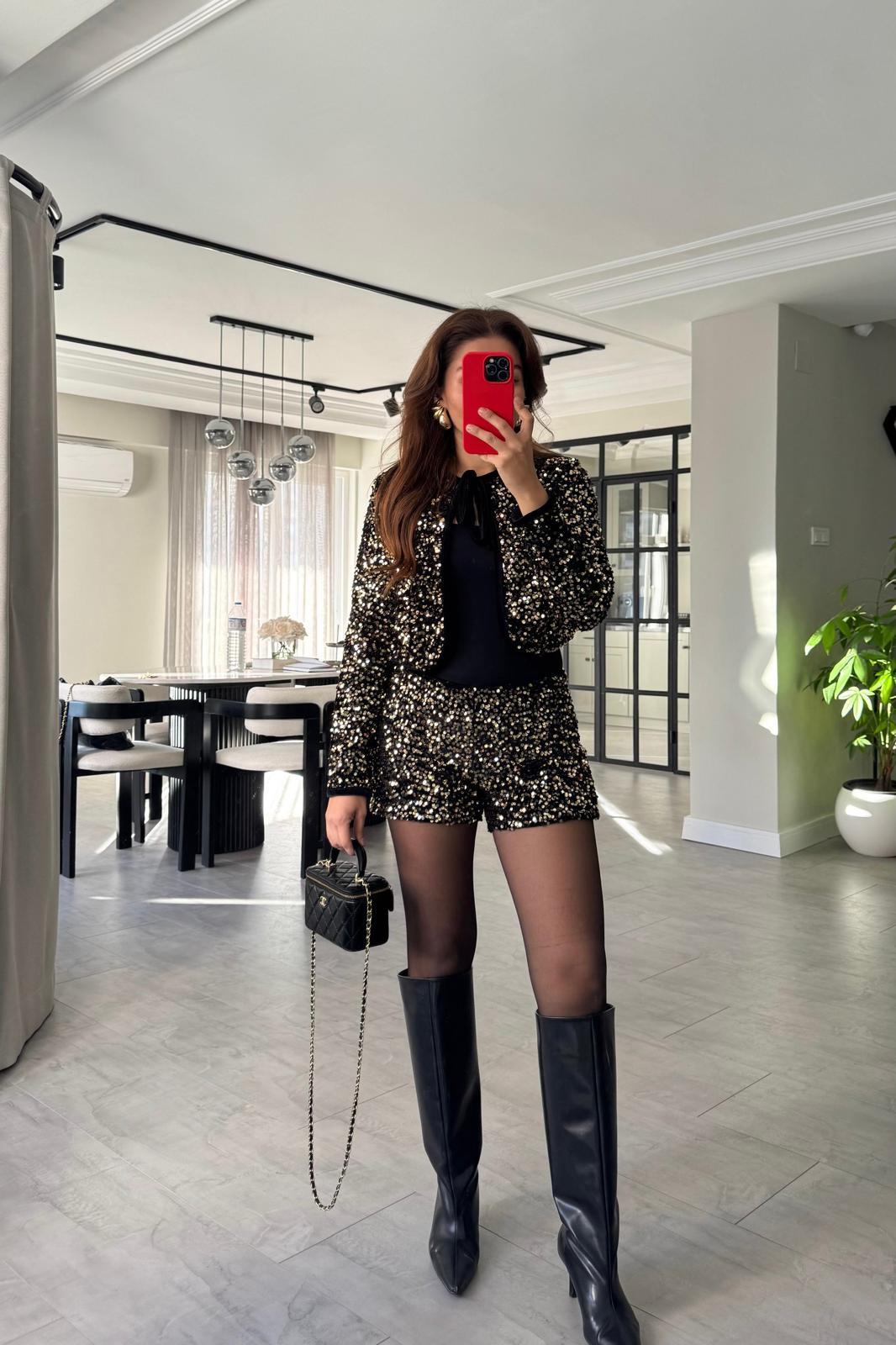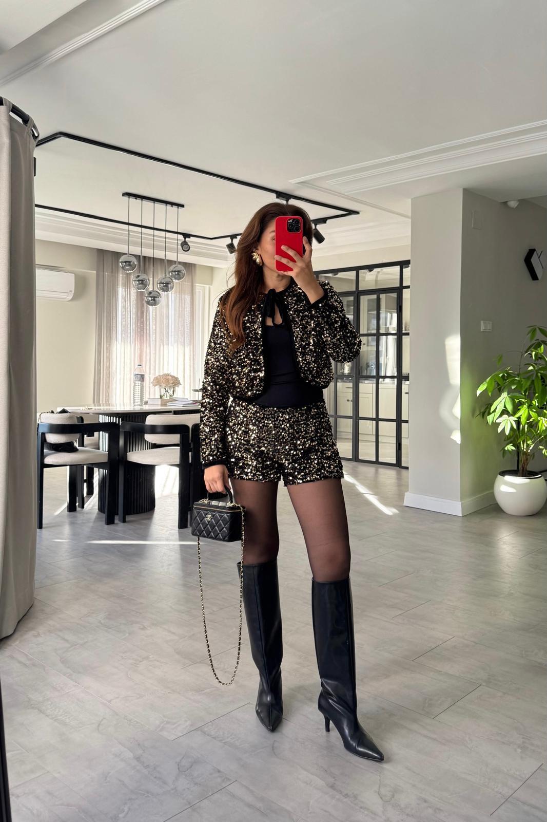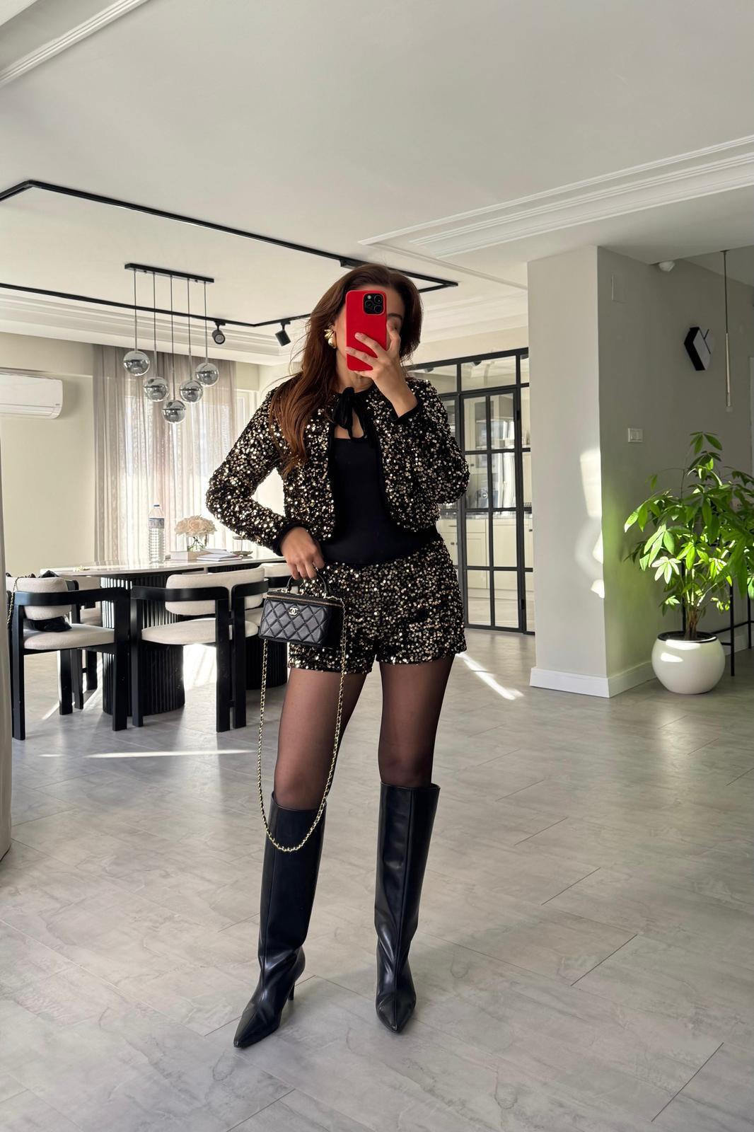 PUL PAYETLİ KADİFE ŞORT / 4037