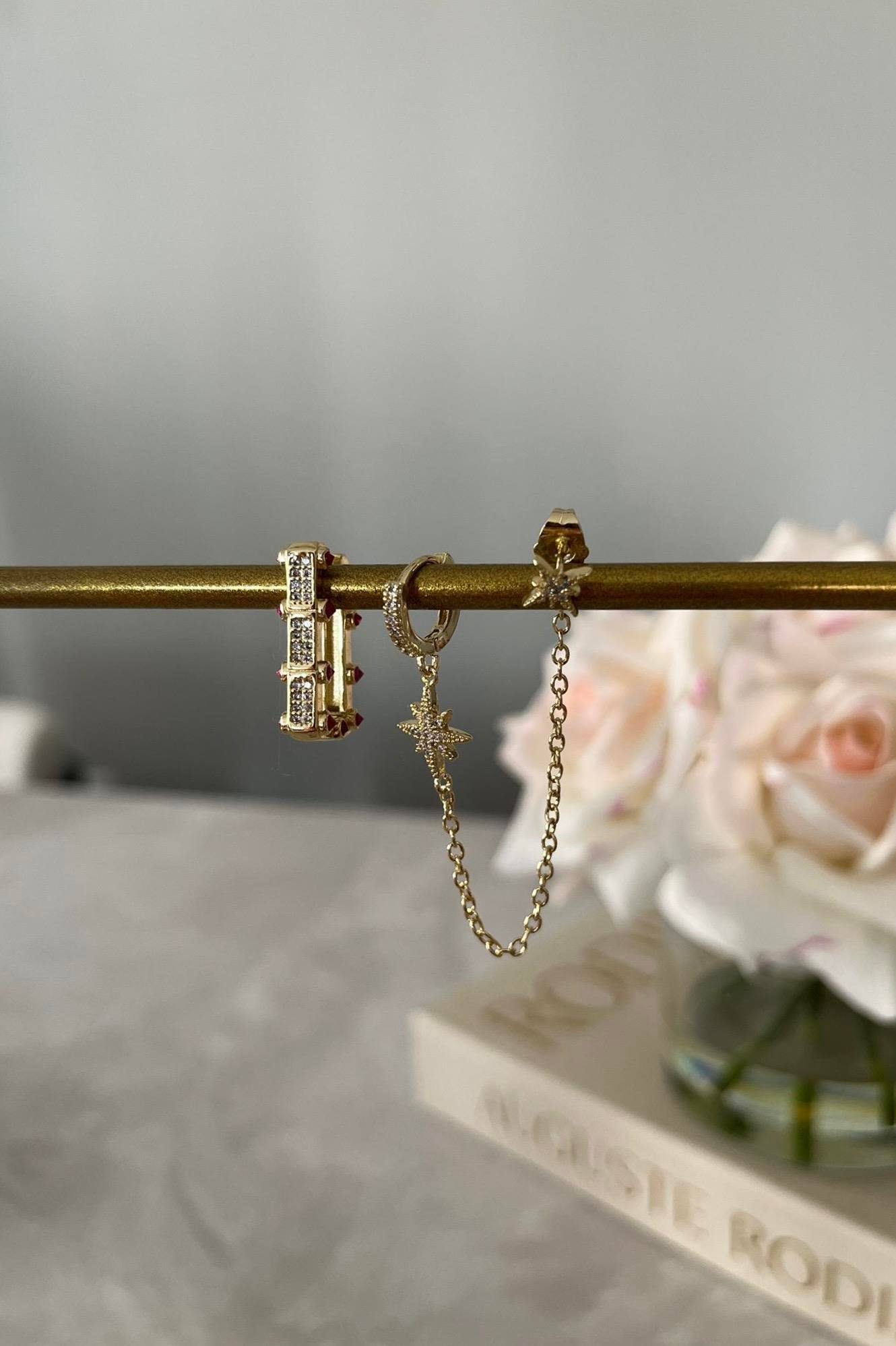 RENKLİ TAŞLI ZİNCİR DETAYLI KOMBİN KÜPE