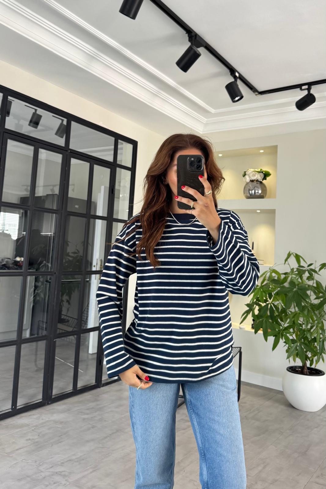 SIFIR YAKA ÇİZGİLİ BASIC SWEATSHIRT/0193 SIFIR YAKA ÇİZGİLİ BASIC SWEATSHIRT/0193