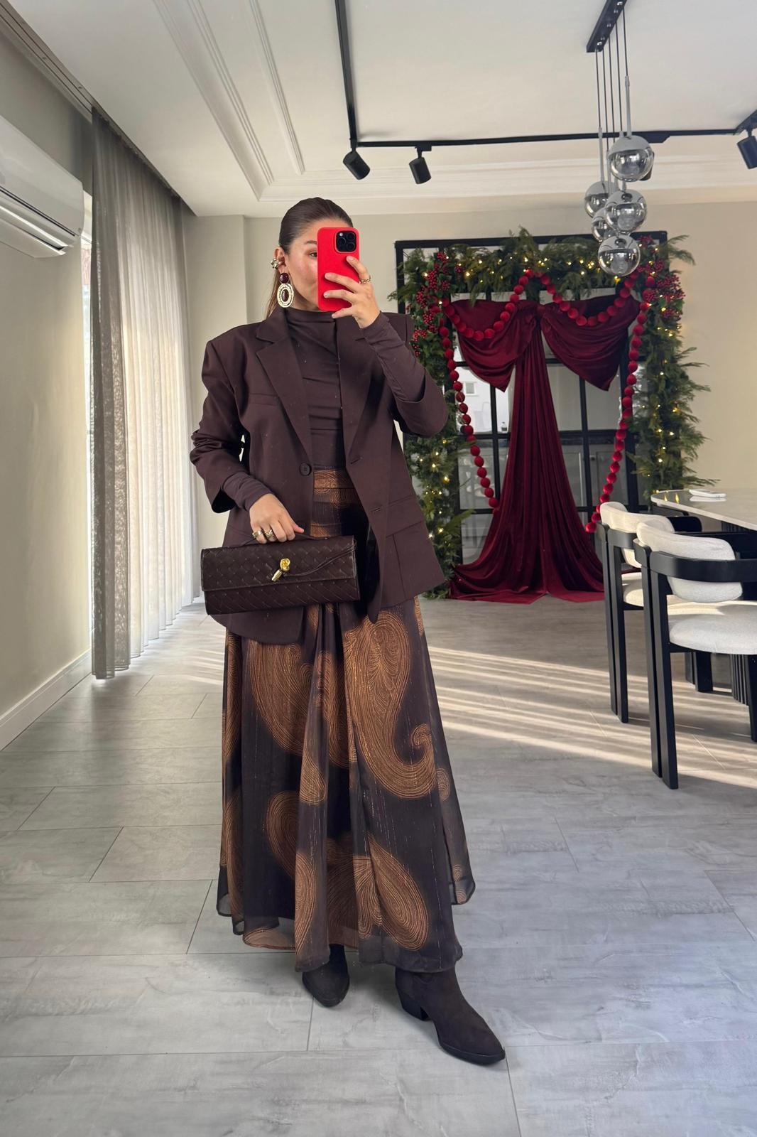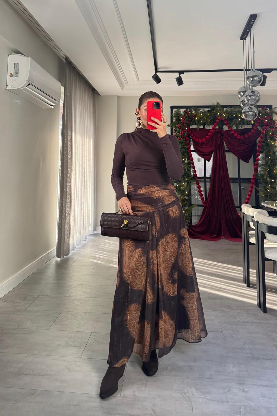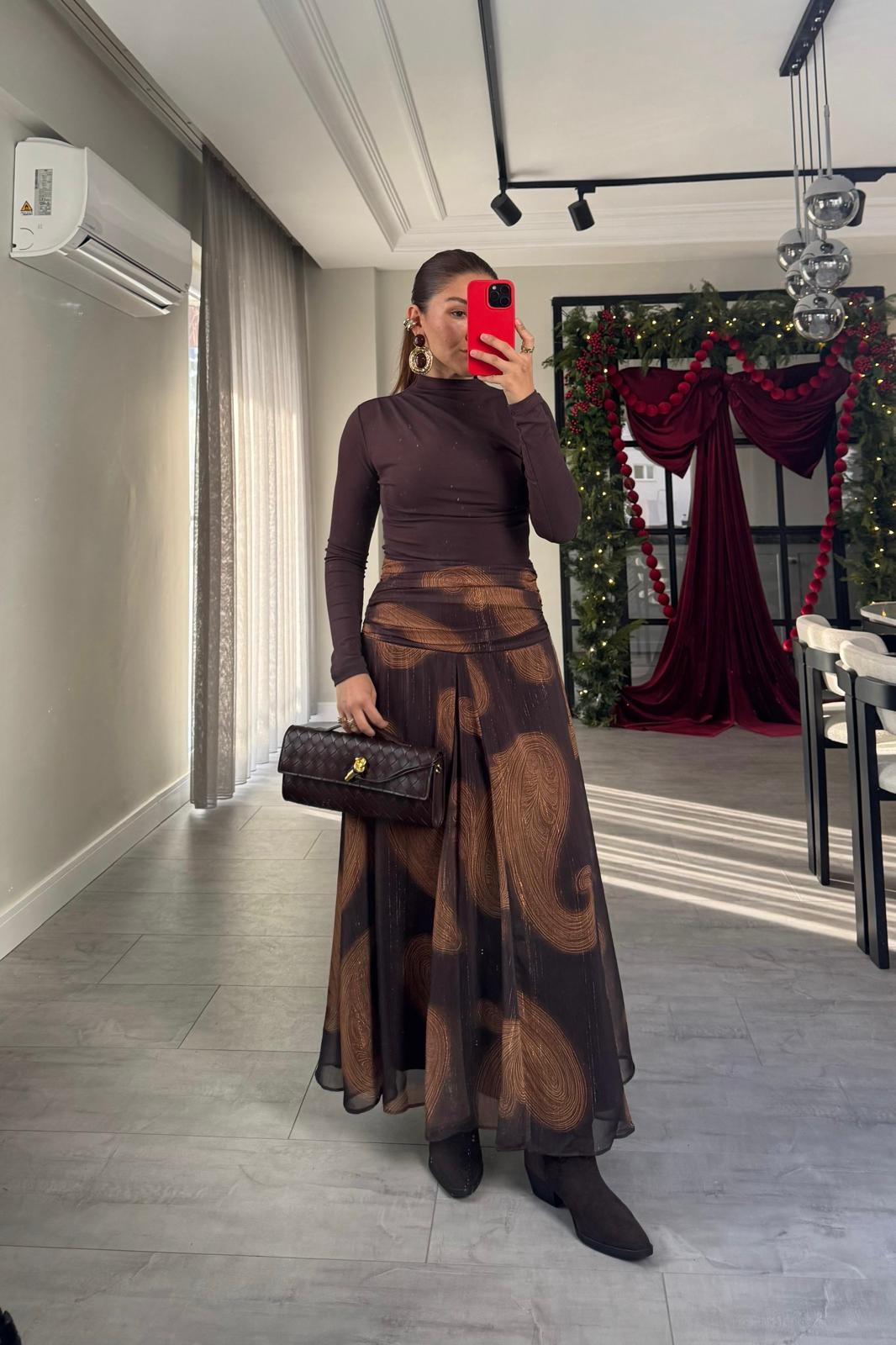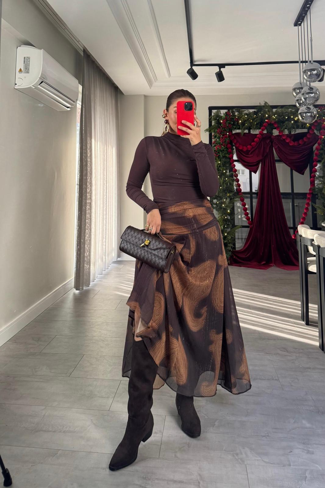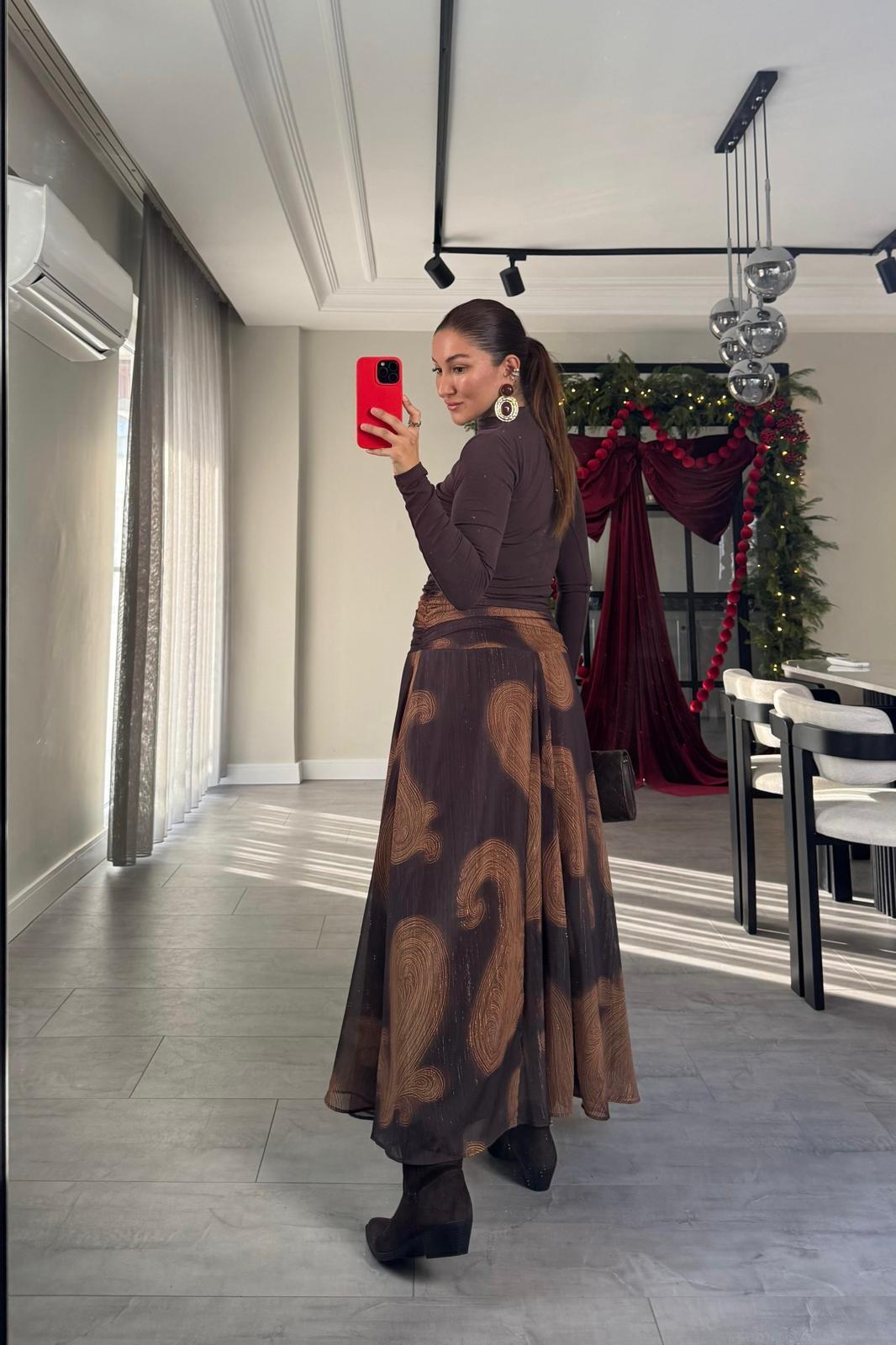 SİMLİ DRAPE DETAY ŞİFON ETEK
