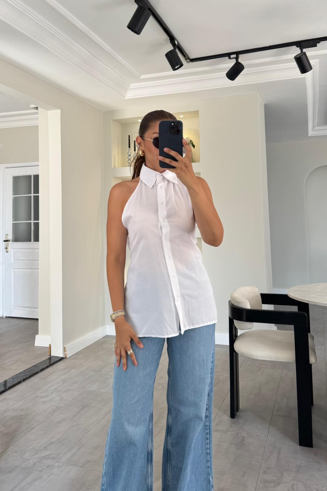 SIRT DEKOLTELİ BAĞLAMALI GÖMLEK/7309