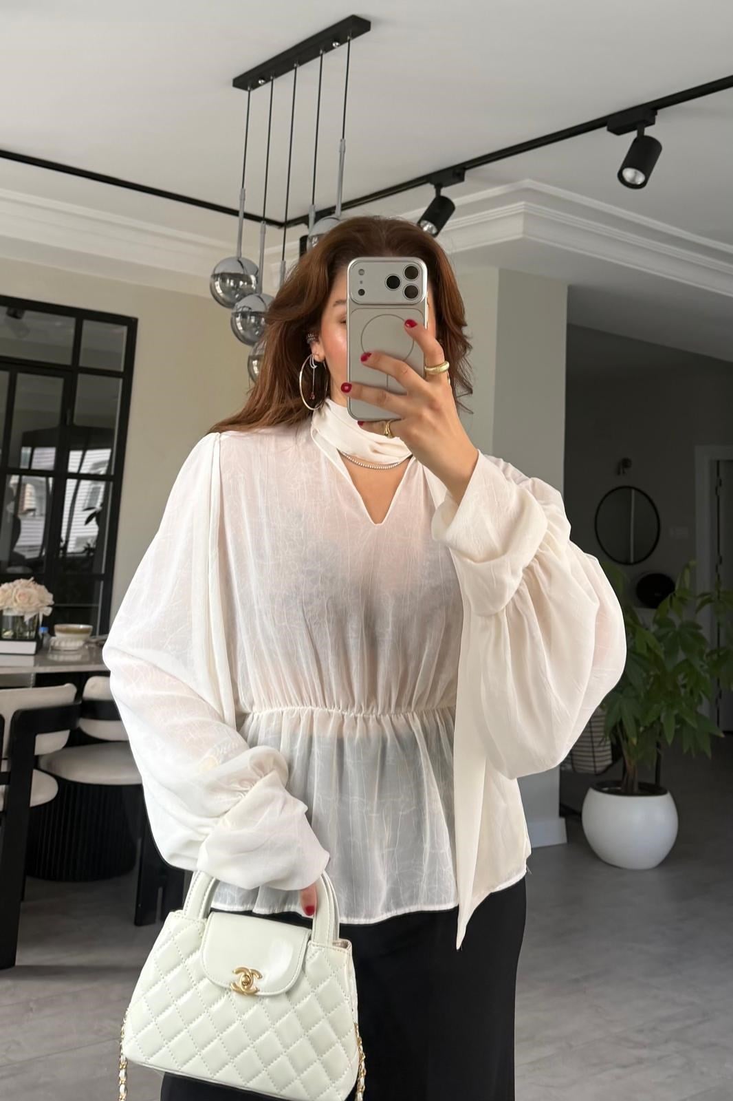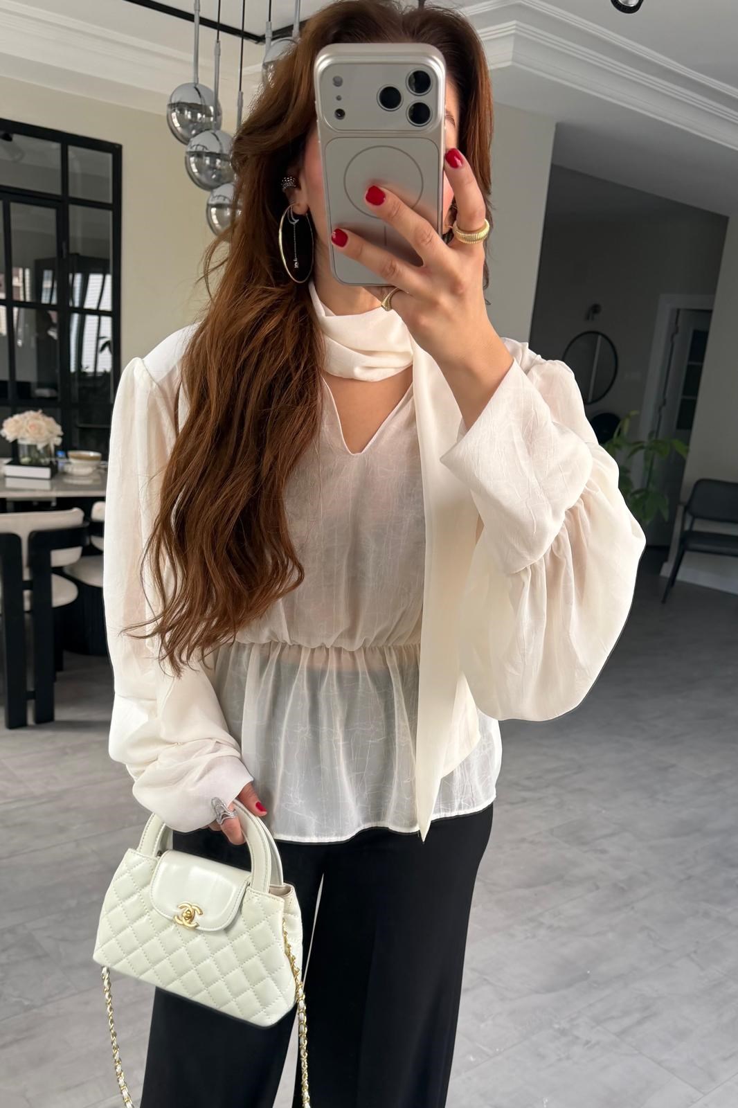 SIRT DEKOLTELİ ŞİFON BLUZ/1268