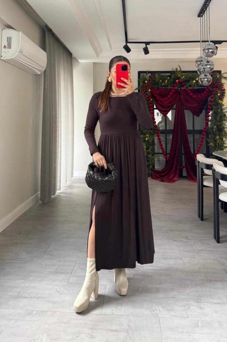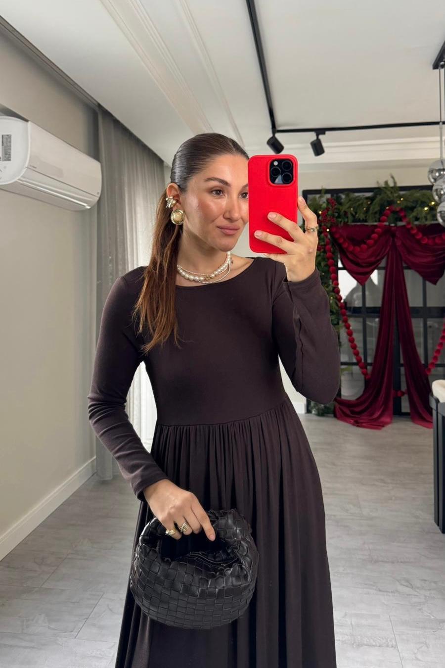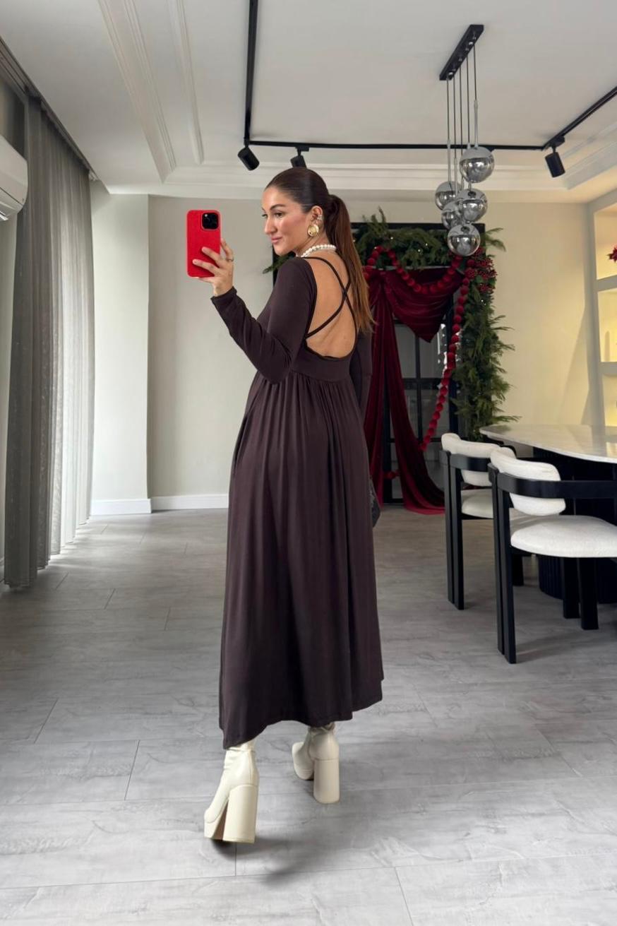 SIRT DEKOLTELİ UZUN KOL ELBİSE/2092 (26KBUC0309)
