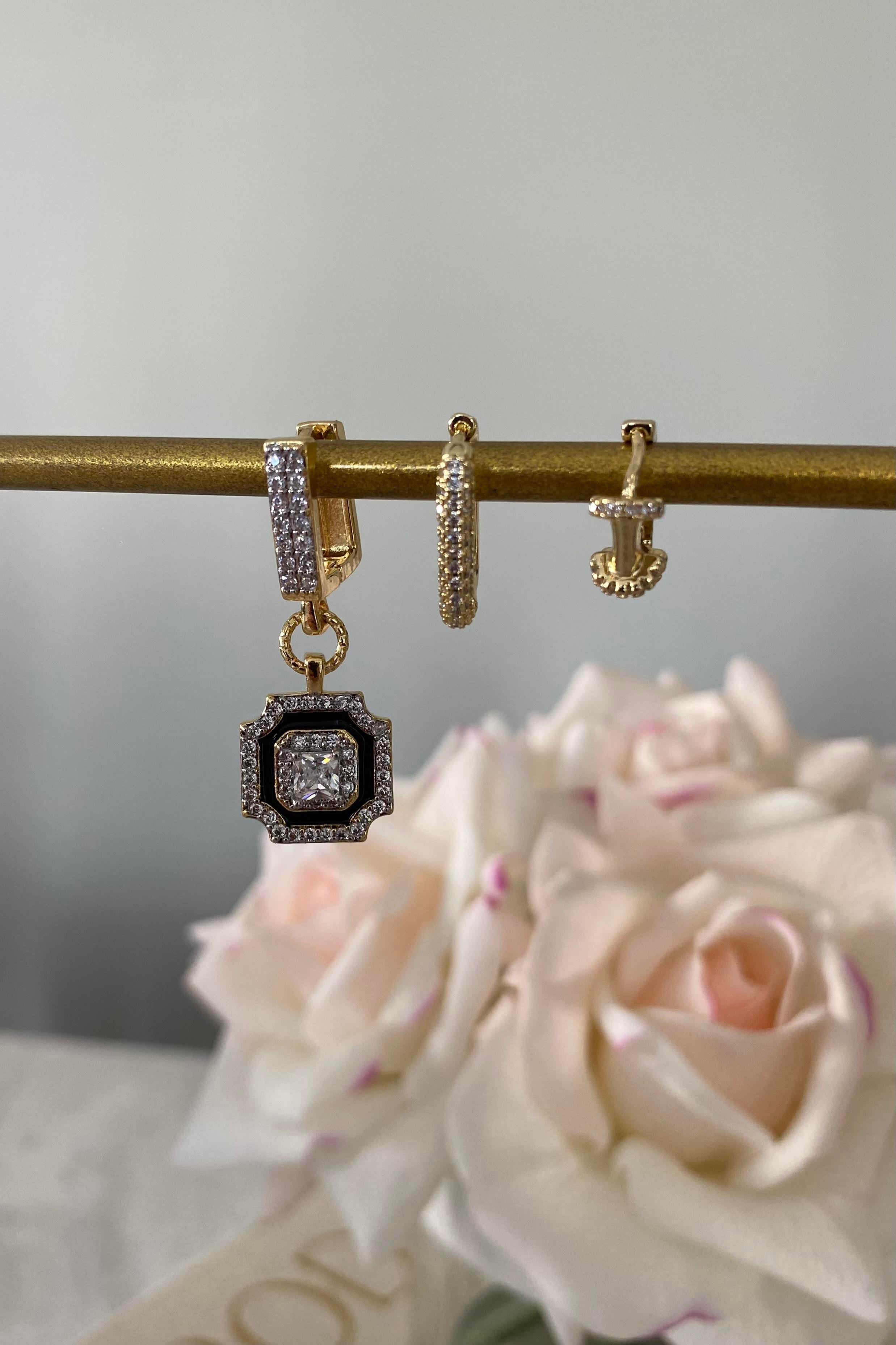 SİYAH ÇERÇEVELİ BAGET KOMBİN KÜPE