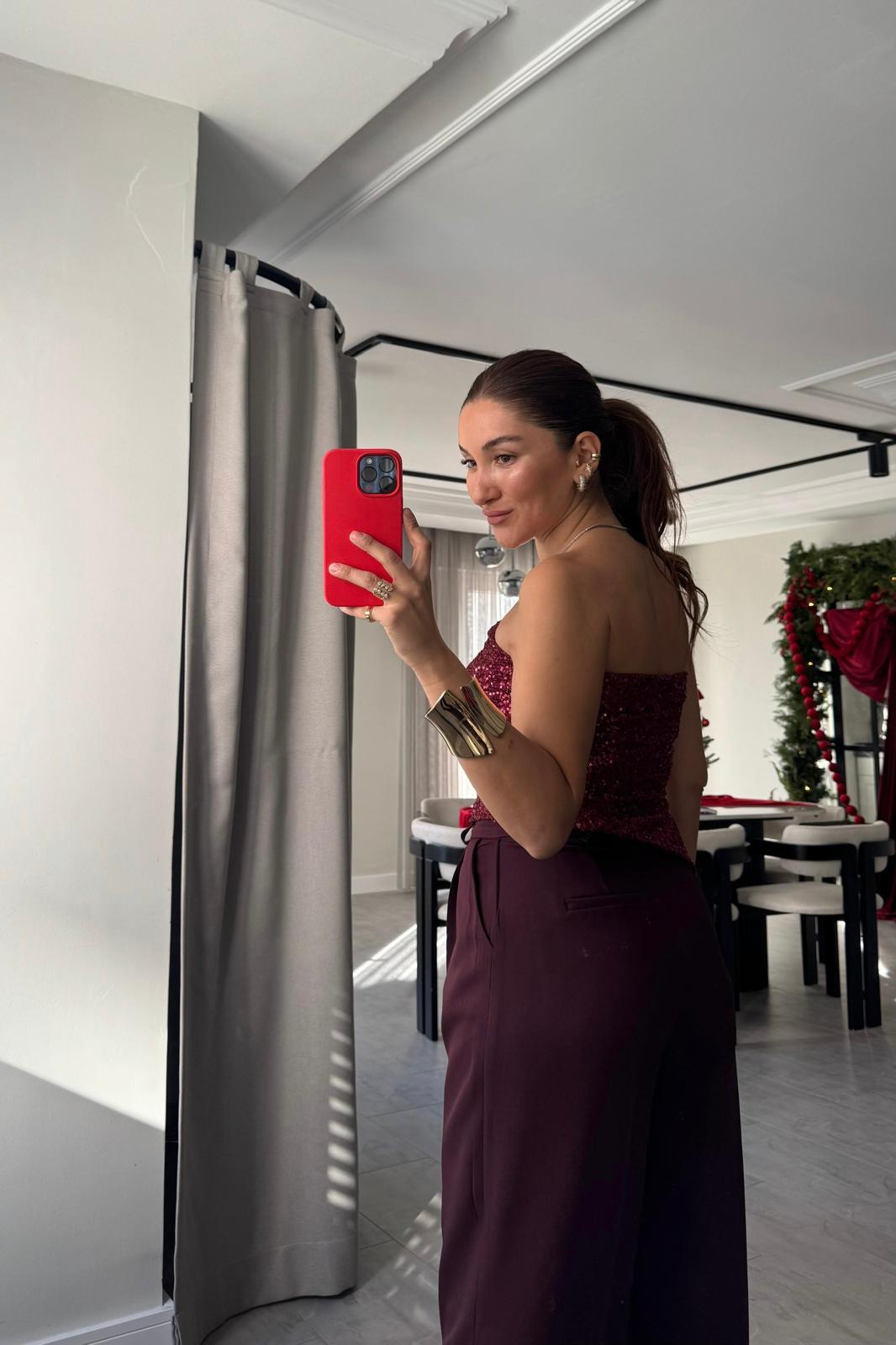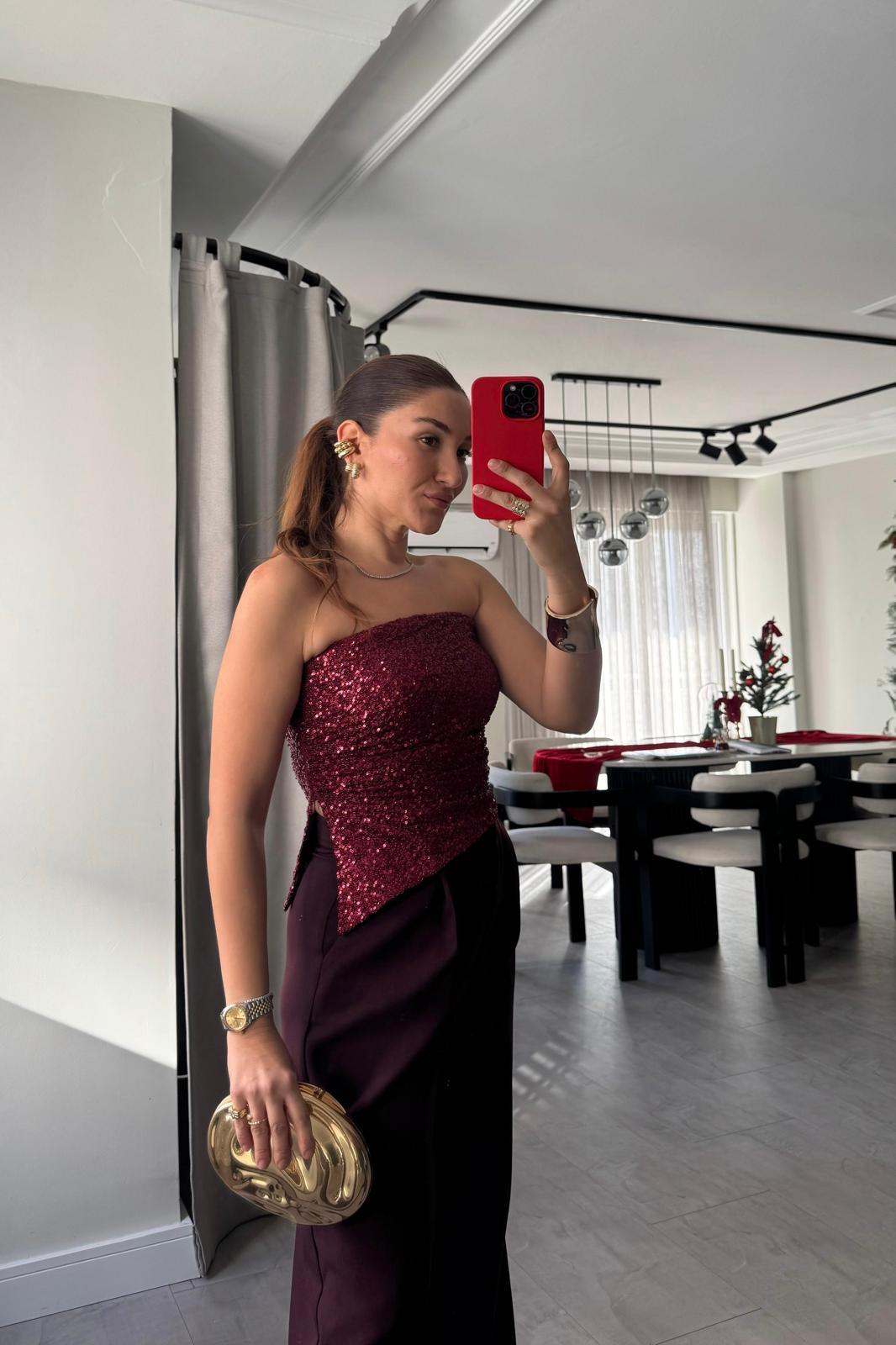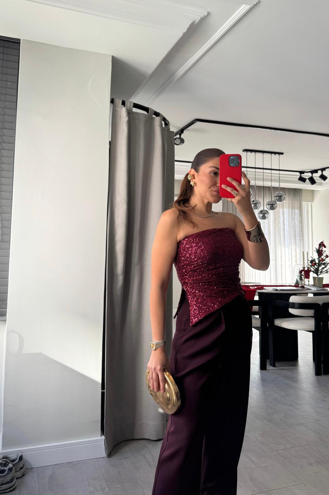 STRAPLEZ YAN YIRTMAÇLI PULLU CROP