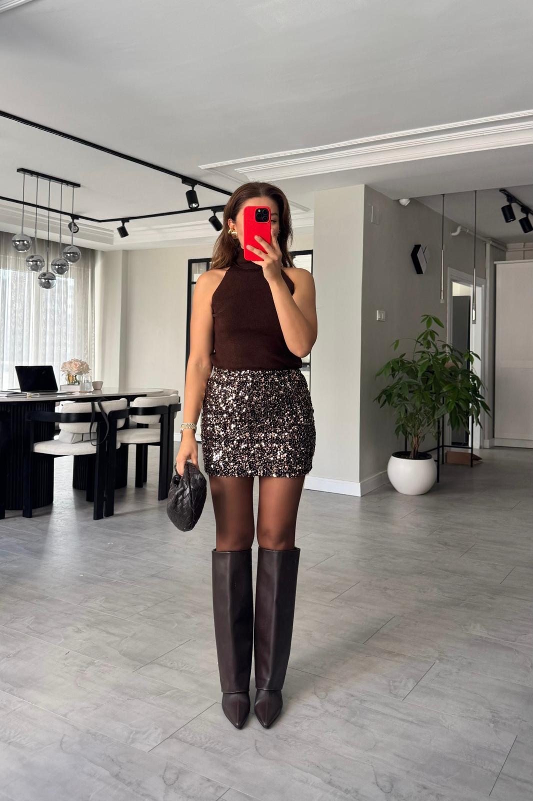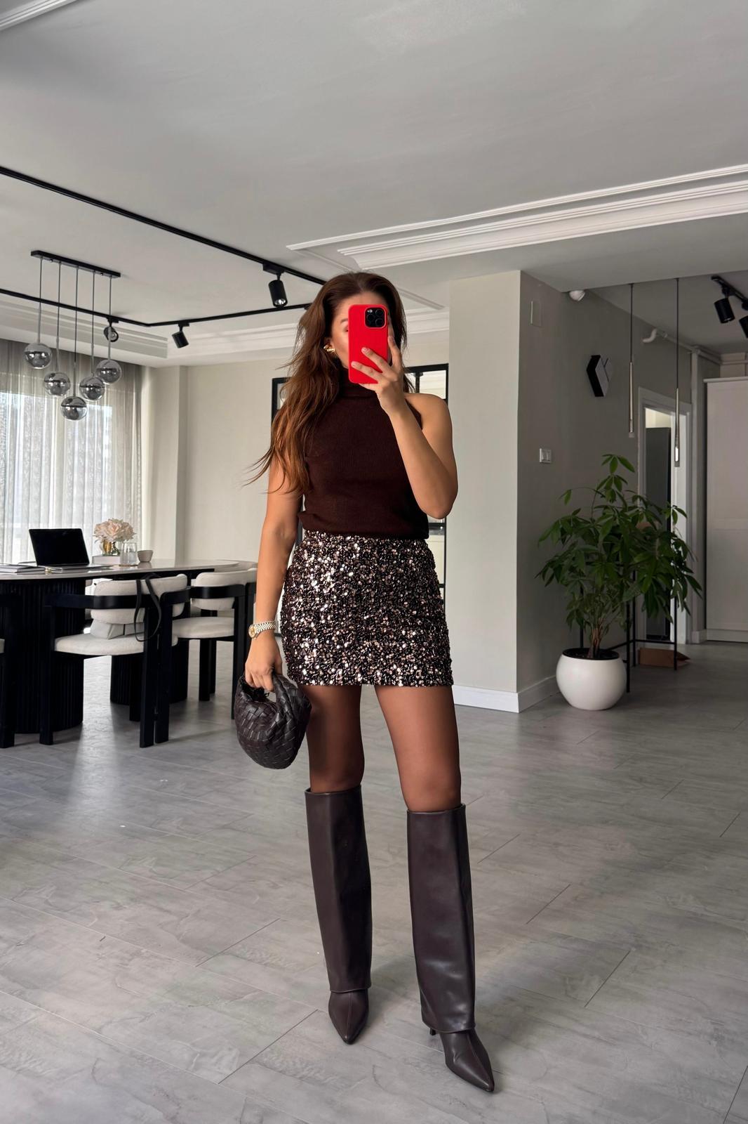 SÜET PUL İŞLEMELİ MİNİ ETEK