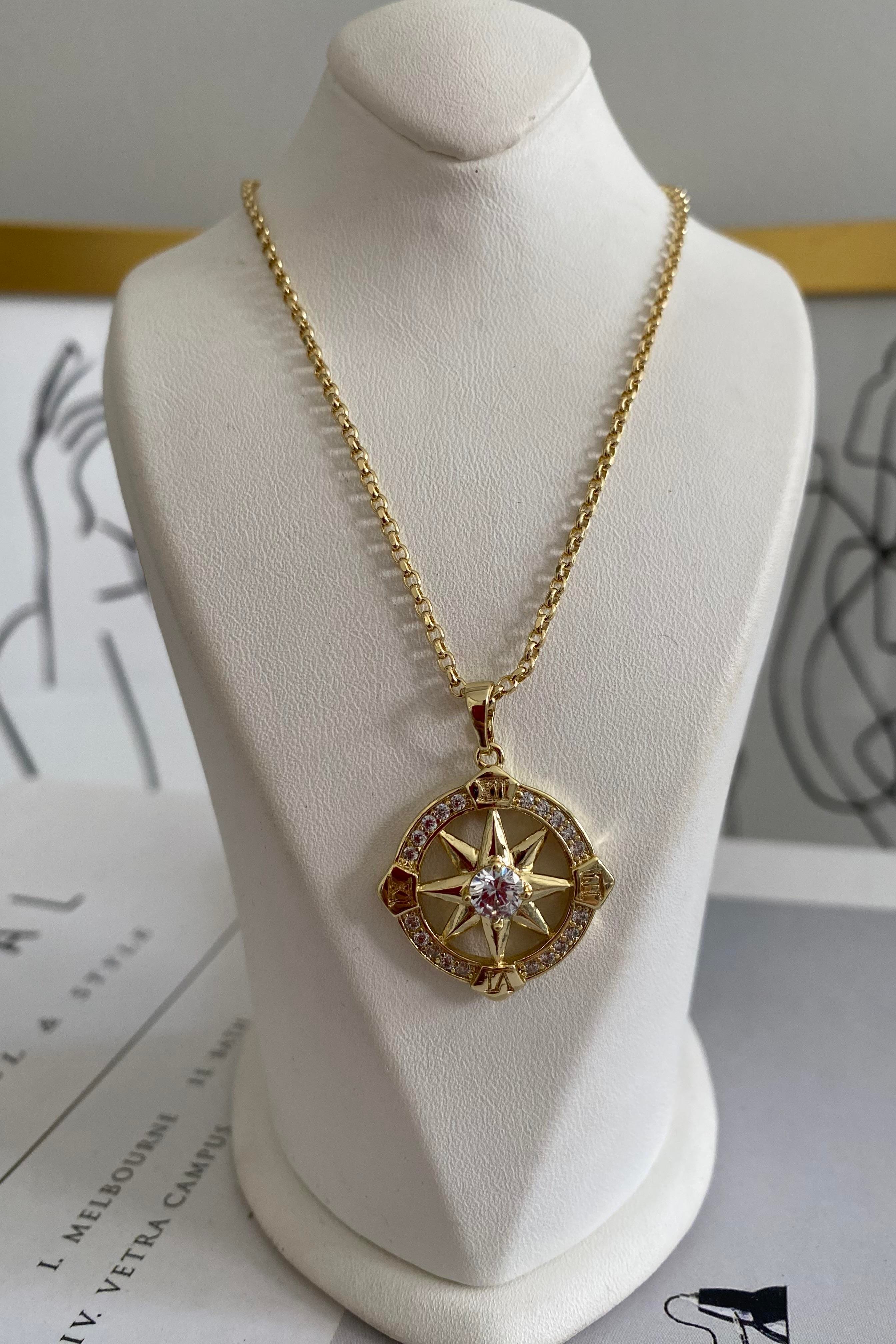 TAŞ ÇERÇEVELİ KUTUP YILDIZI KOLYE