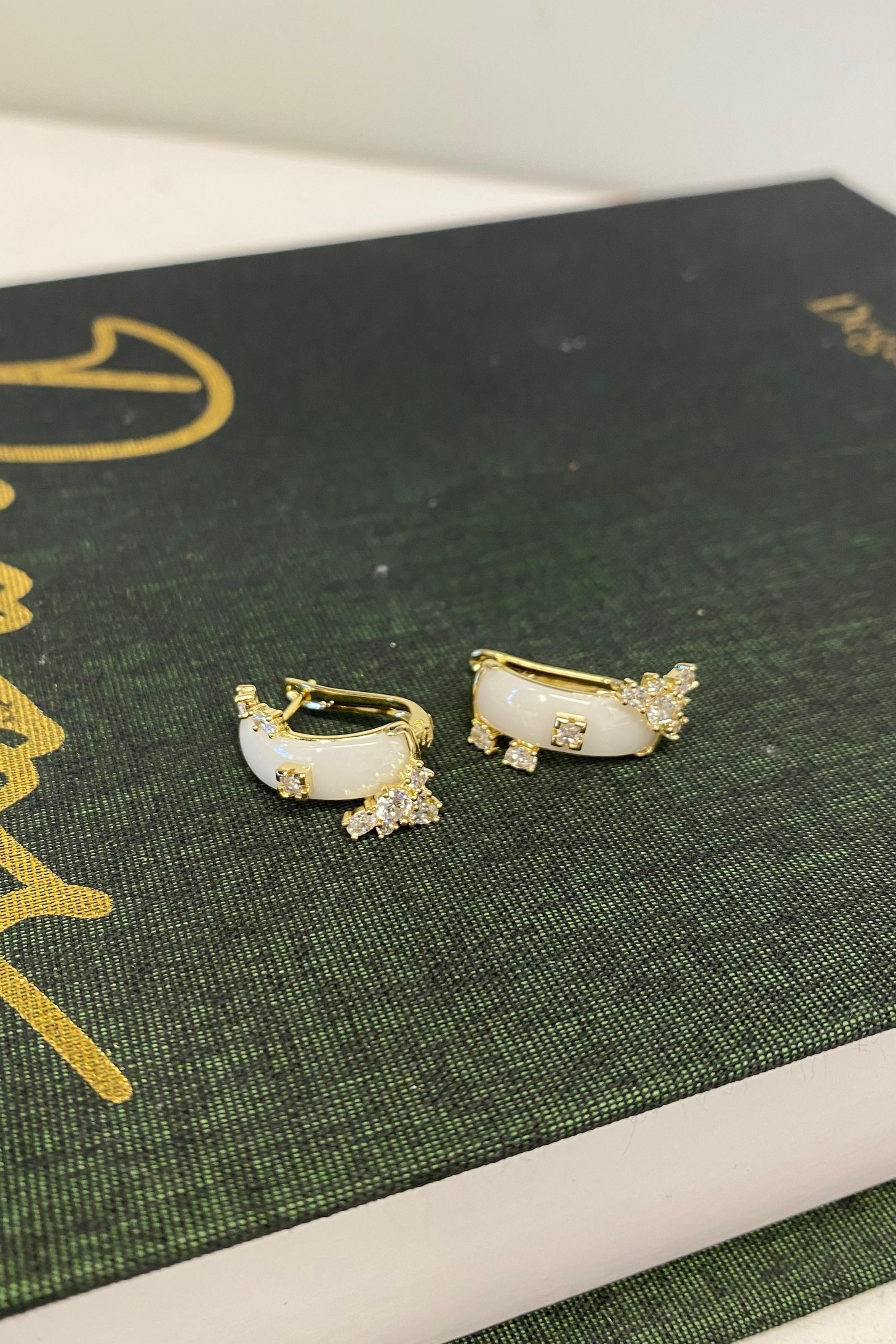 TAŞ DETAYLI BEYAZ SEDEF KÜPE