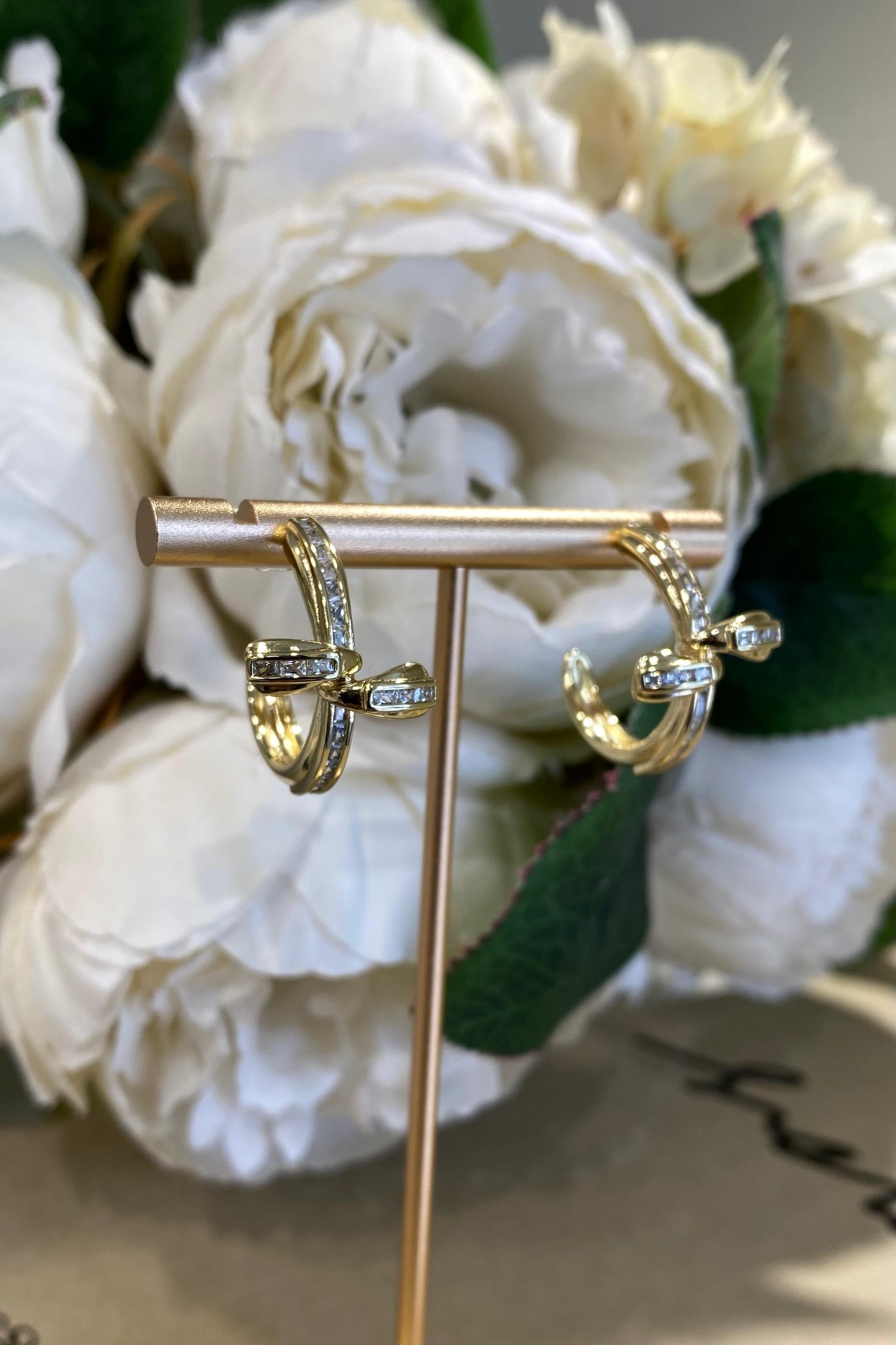 TAŞ DETAYLI FİYONKLU YARIM HALKA KÜPE