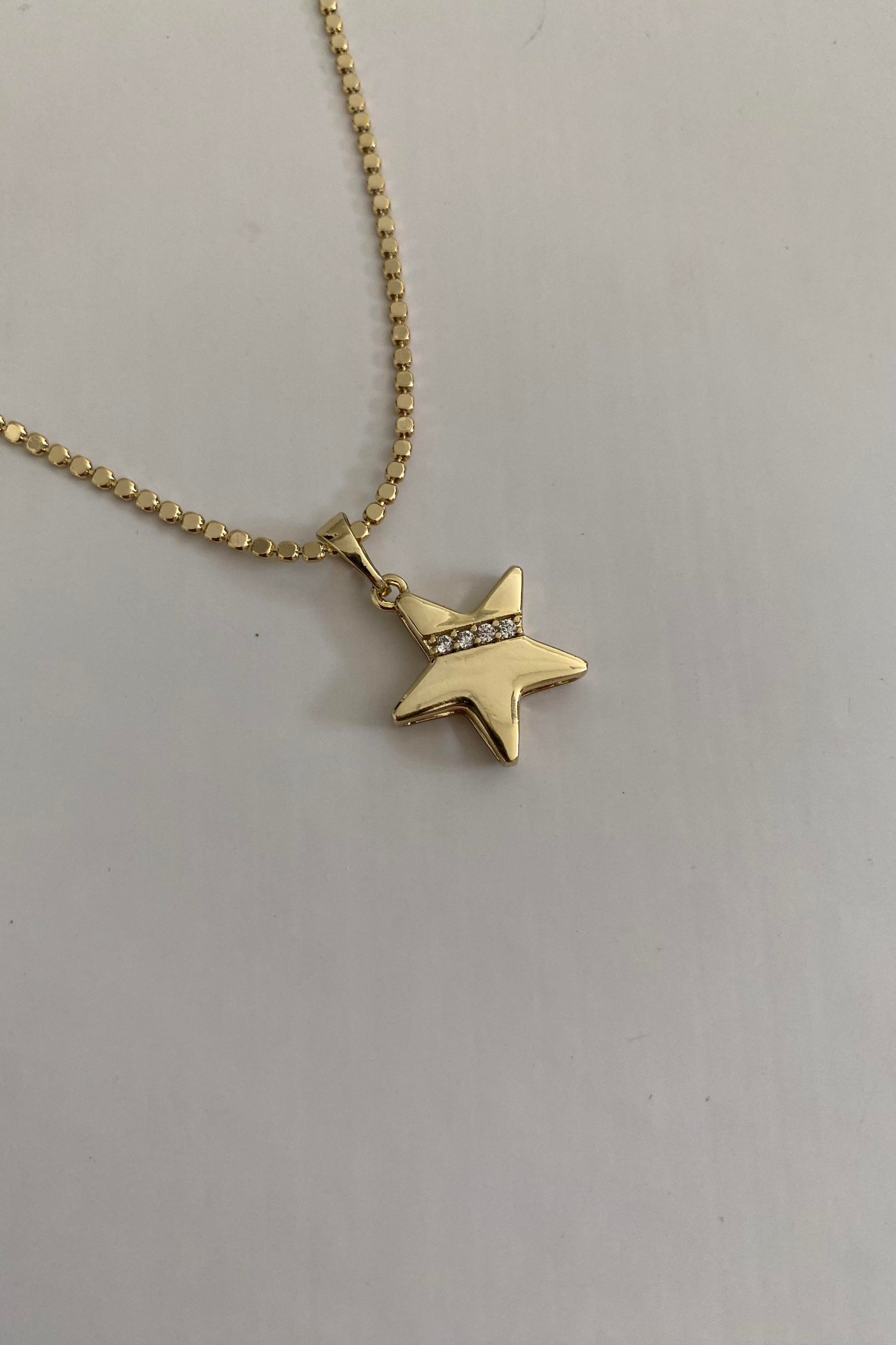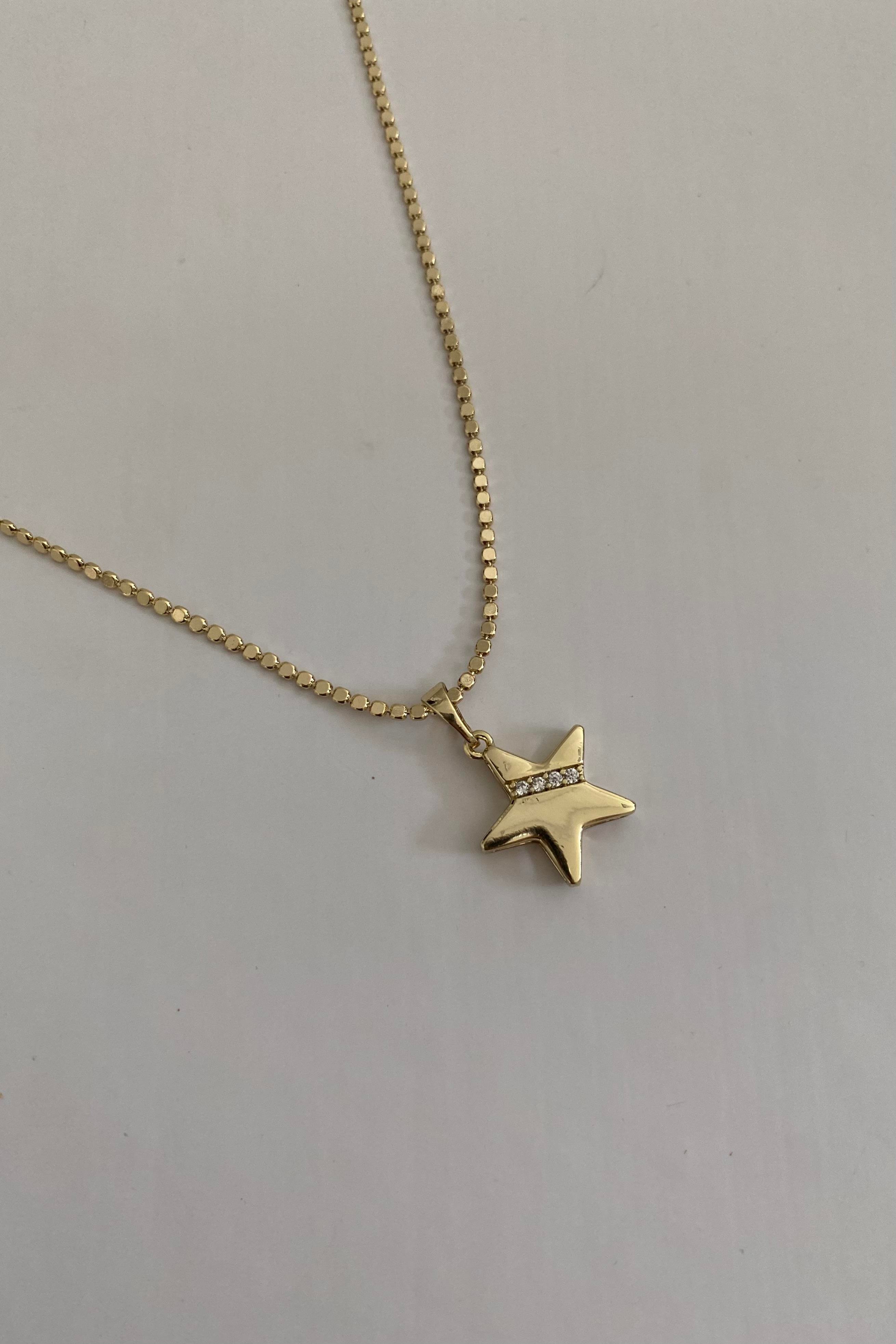 TAŞ KESİTLİ YILDIZ UÇLU KOLYE 45cm