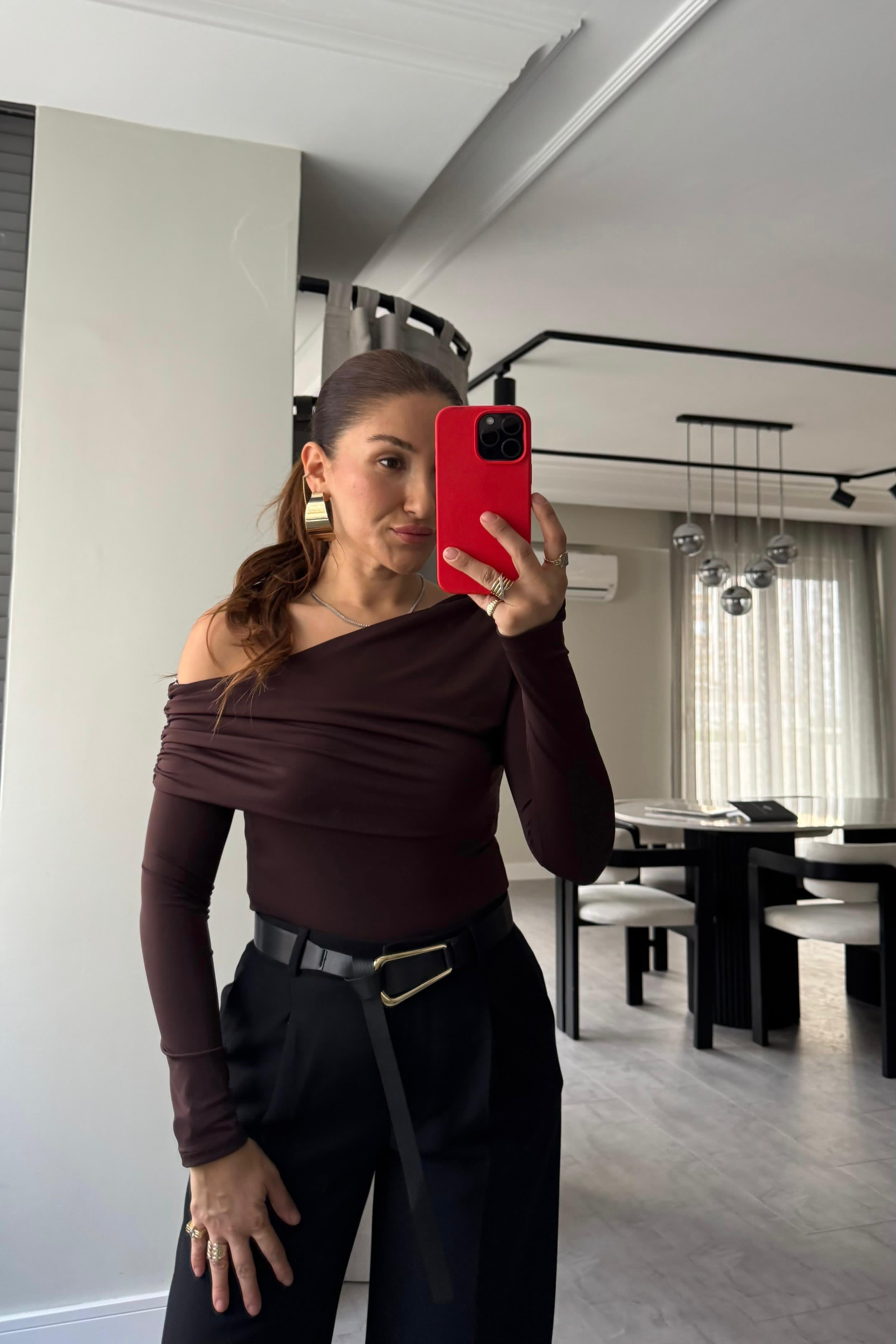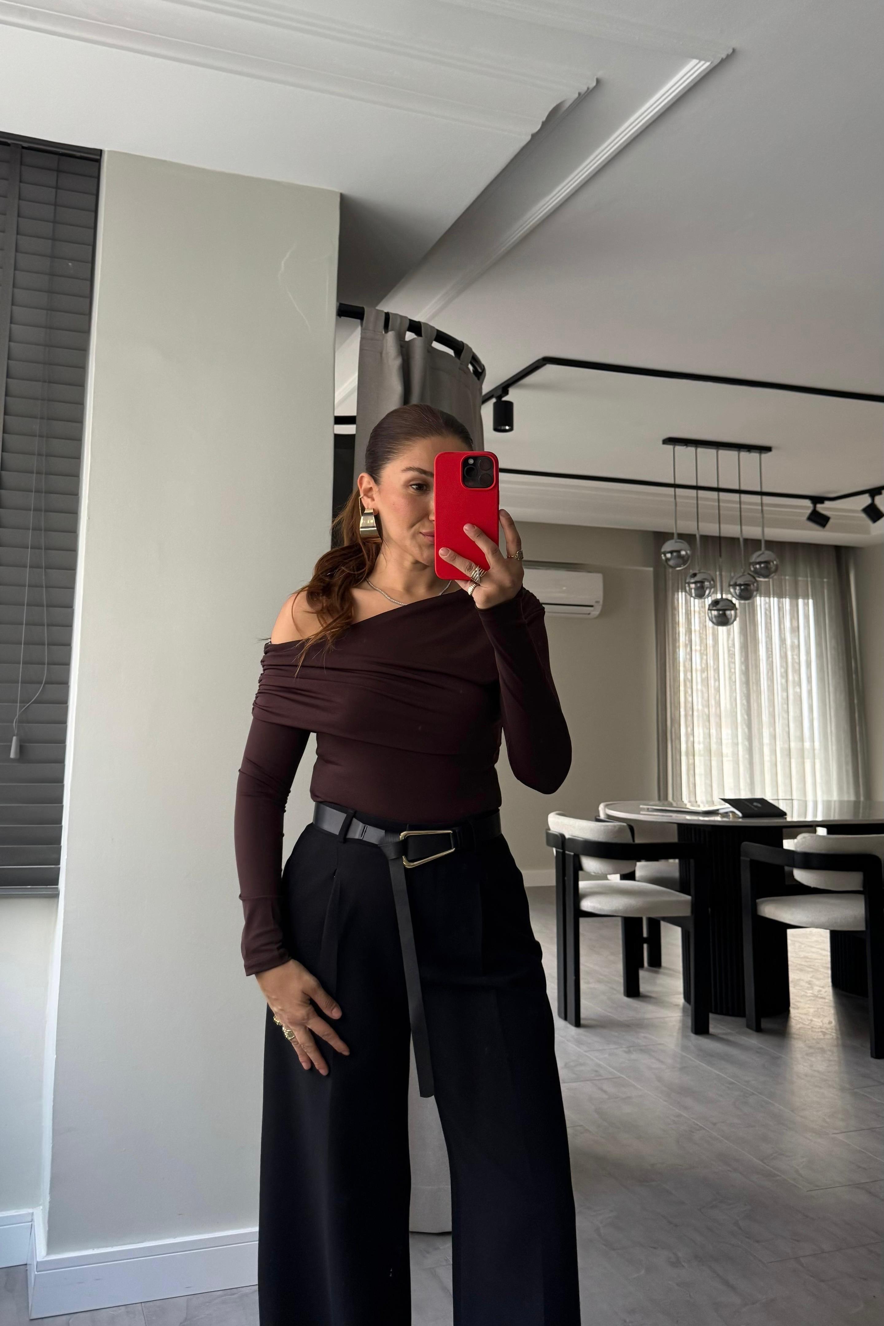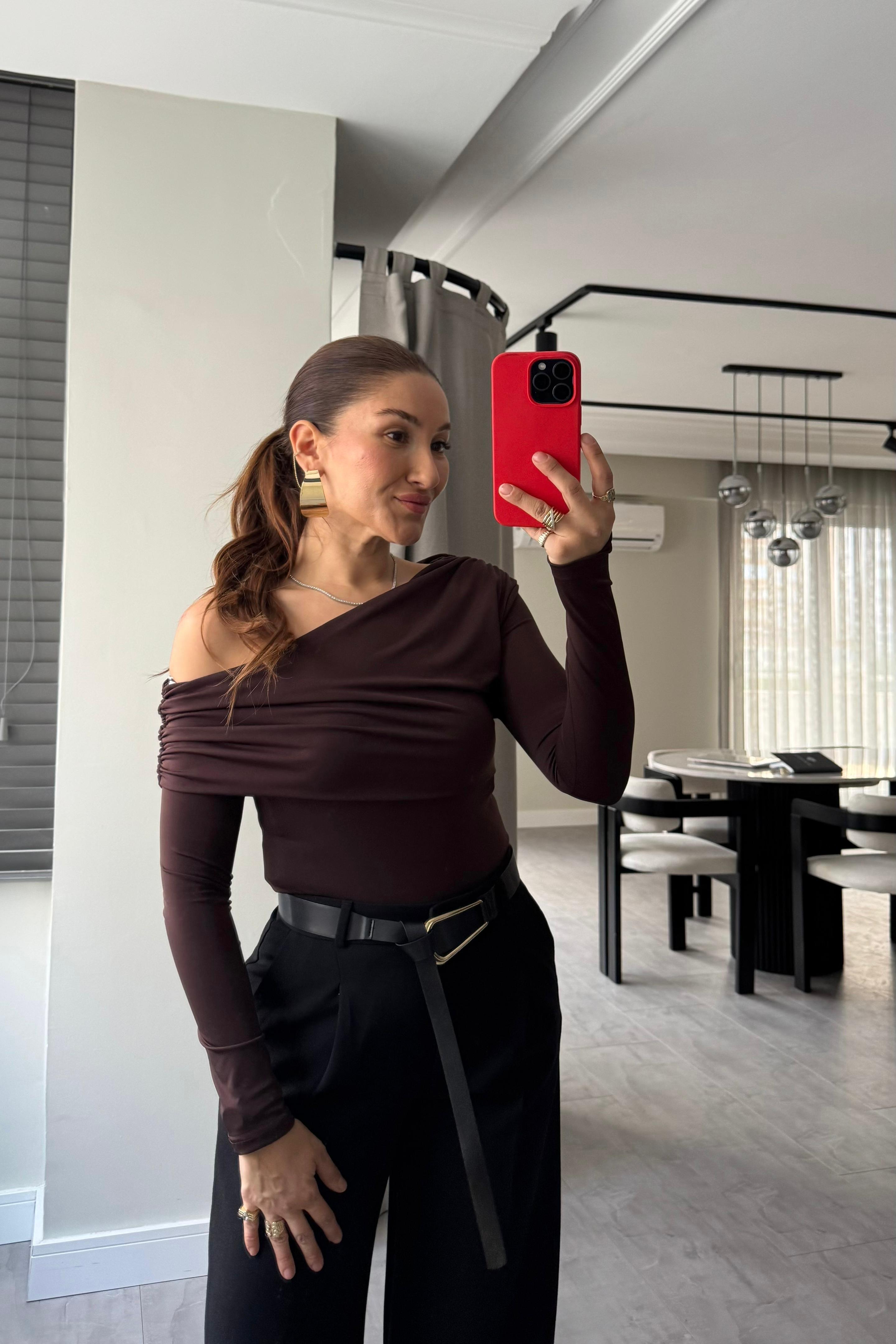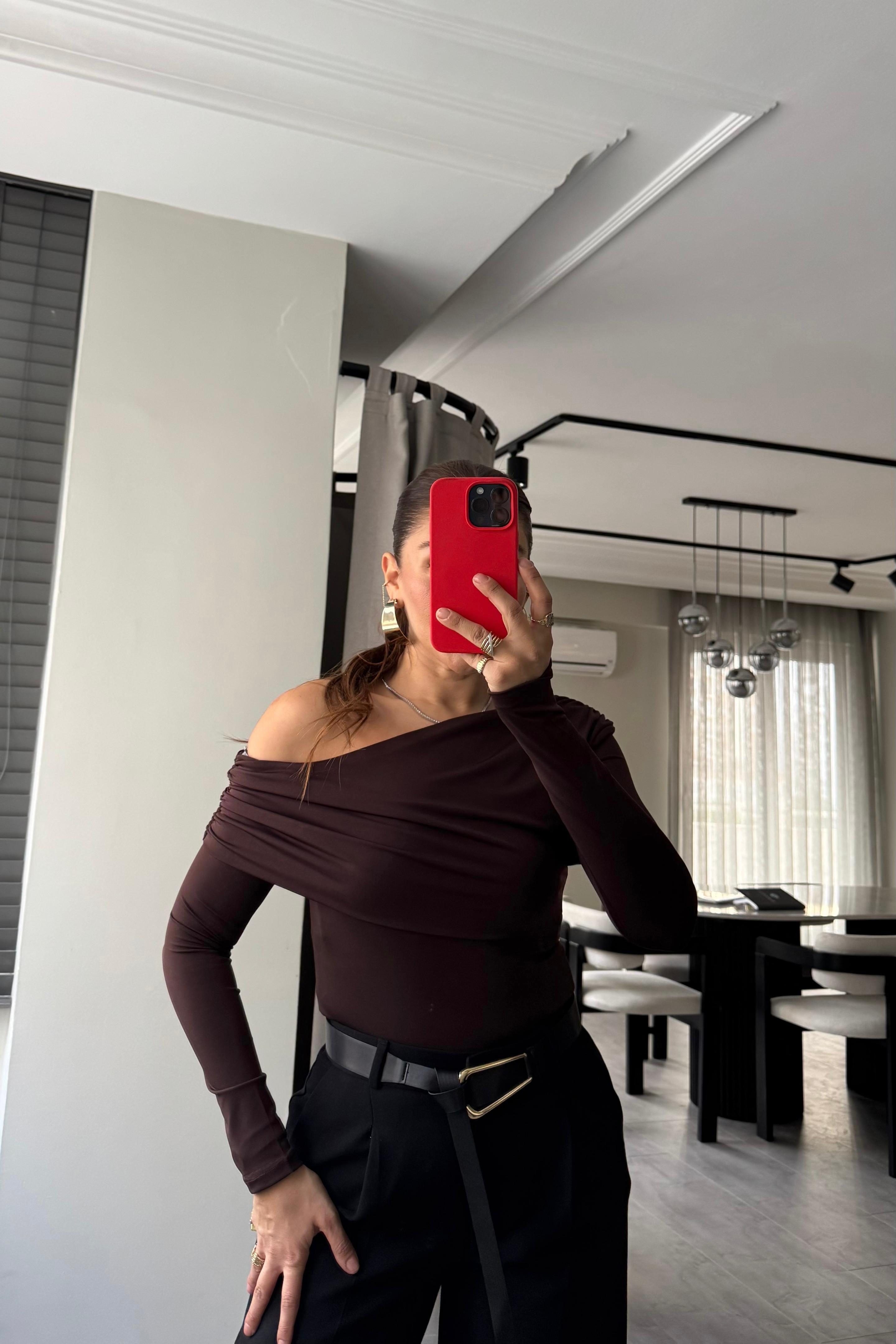 TEK OMUZ UZUN KOL DRAPELİ BLUZ/0764