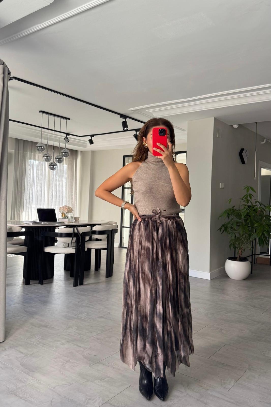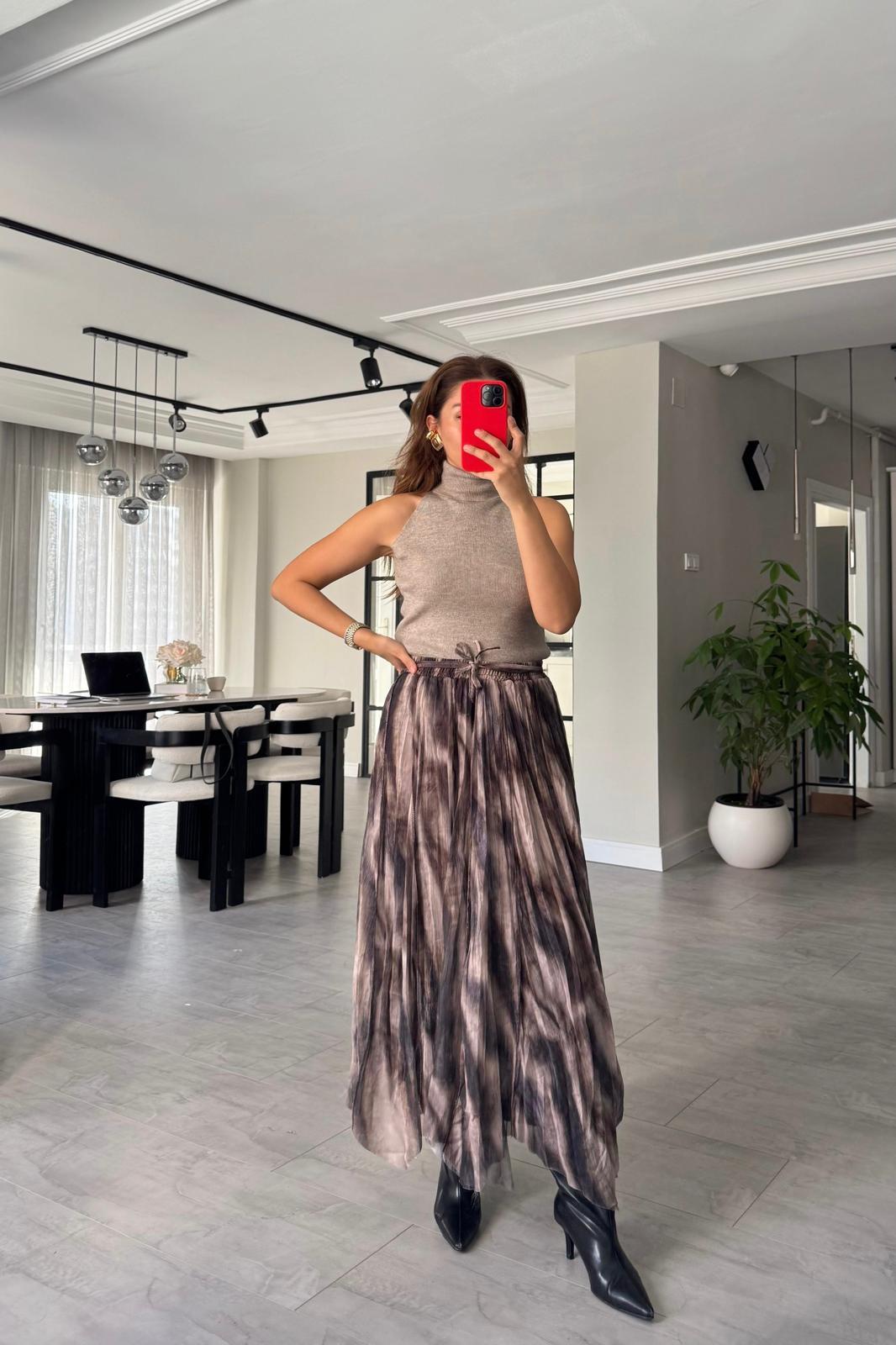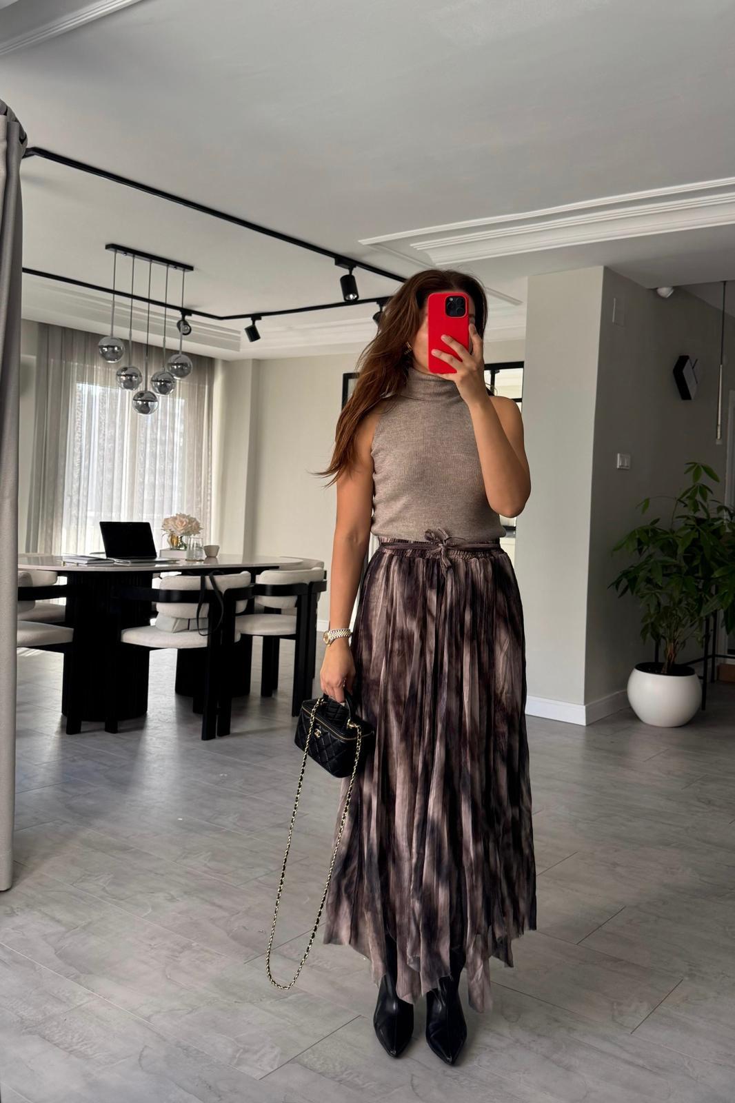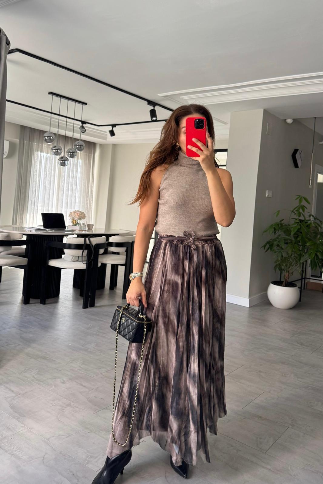 TERS DİKİŞ DESENLİ TÜL ETEK/1102
