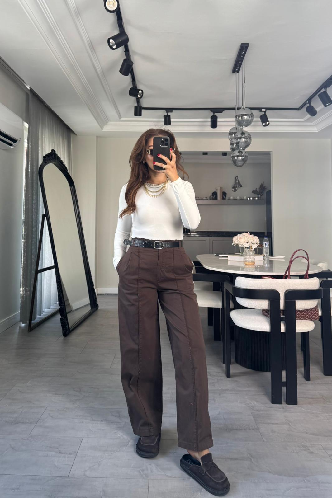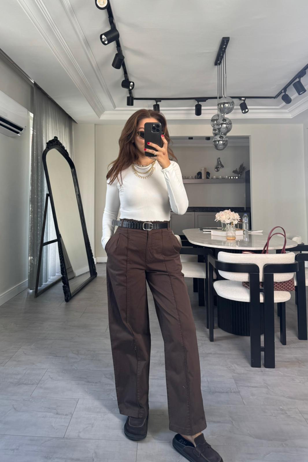 TERS DİKİŞLİ KEMERLİ PALAZZO PANTOLON/51208