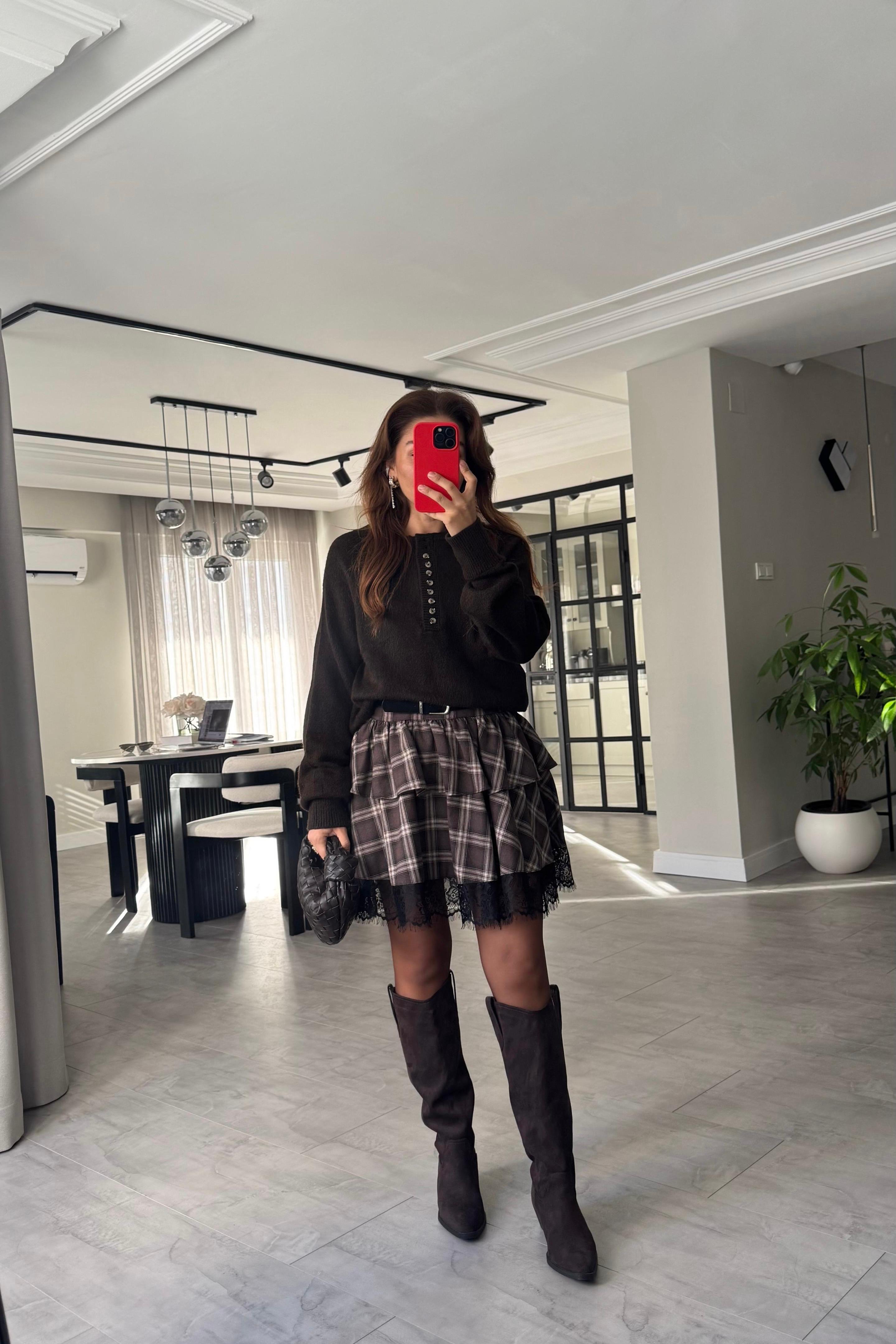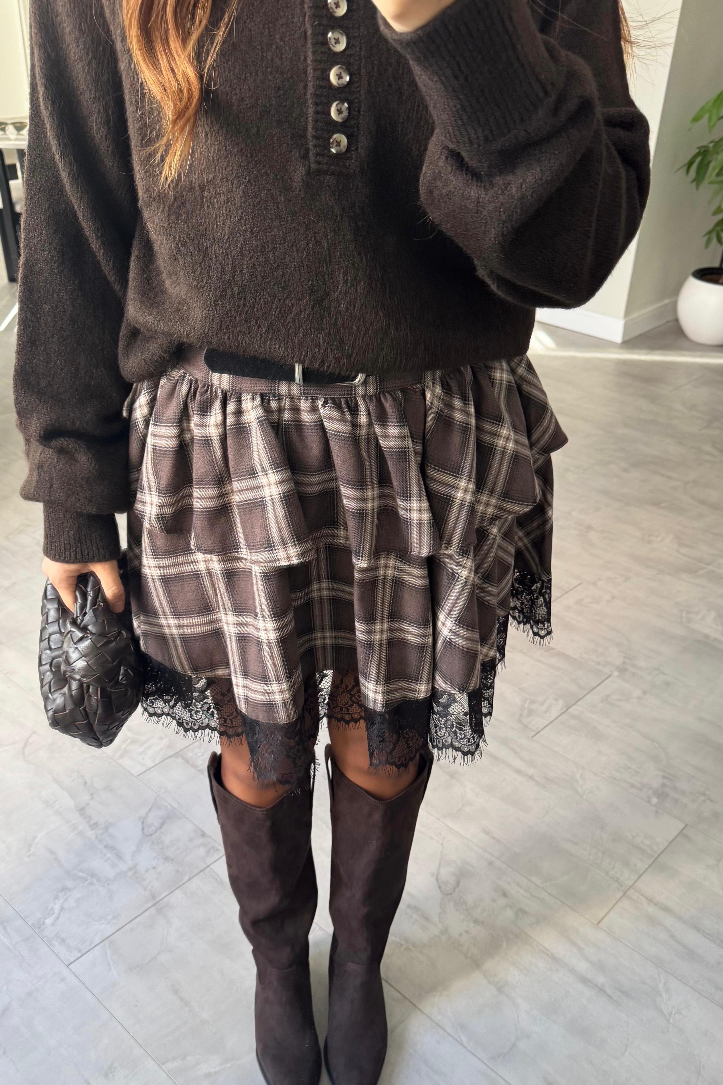 UCU DANTELLİ EKOSELİ MİNİ ETEK/7637