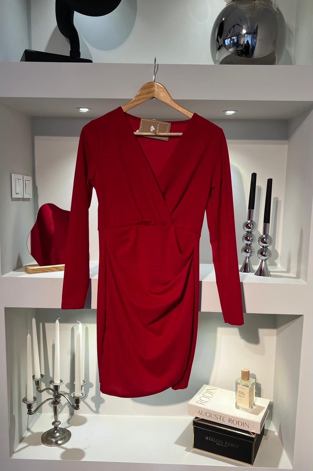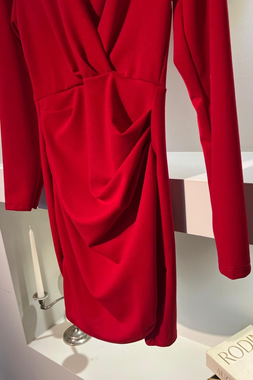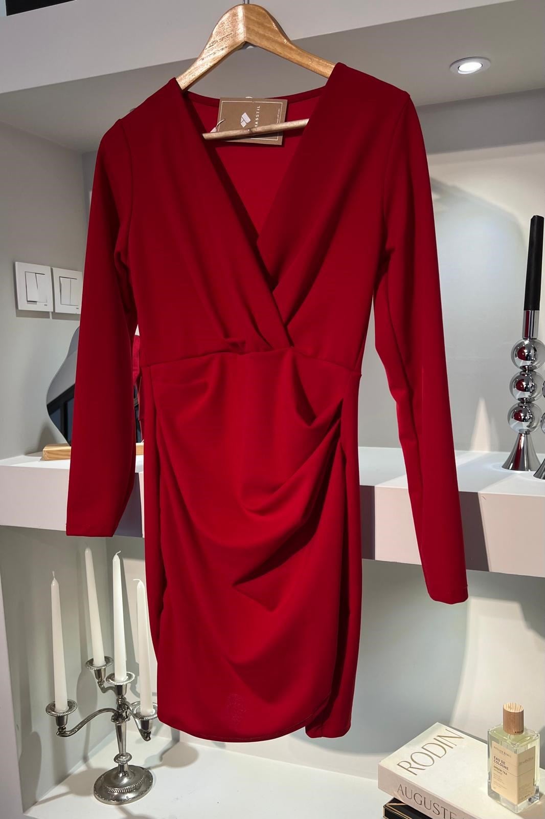 UZUN KOLLU KRUVAZE YAKA MİNİ ELBİSE/2046