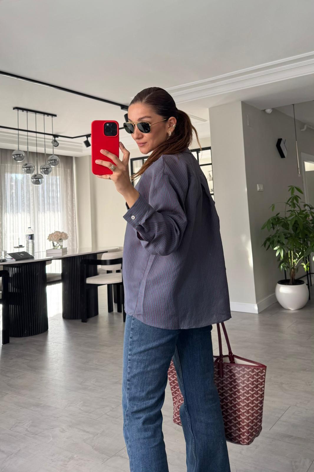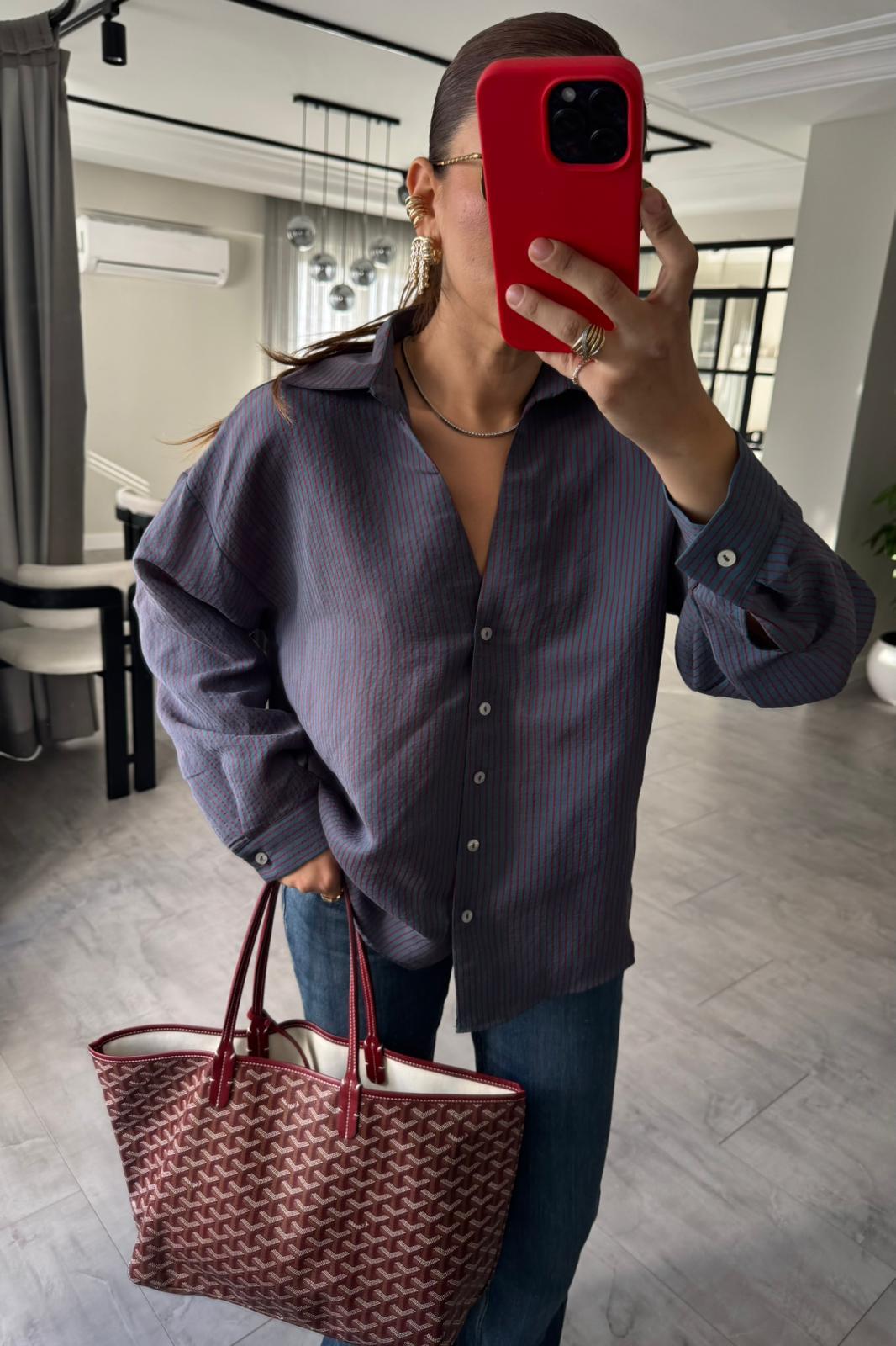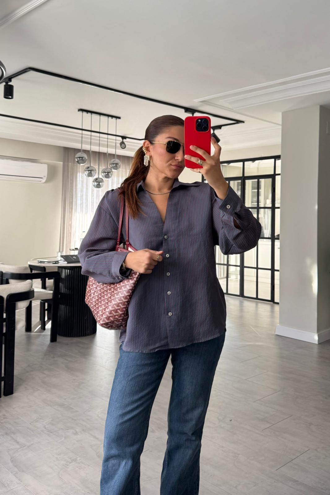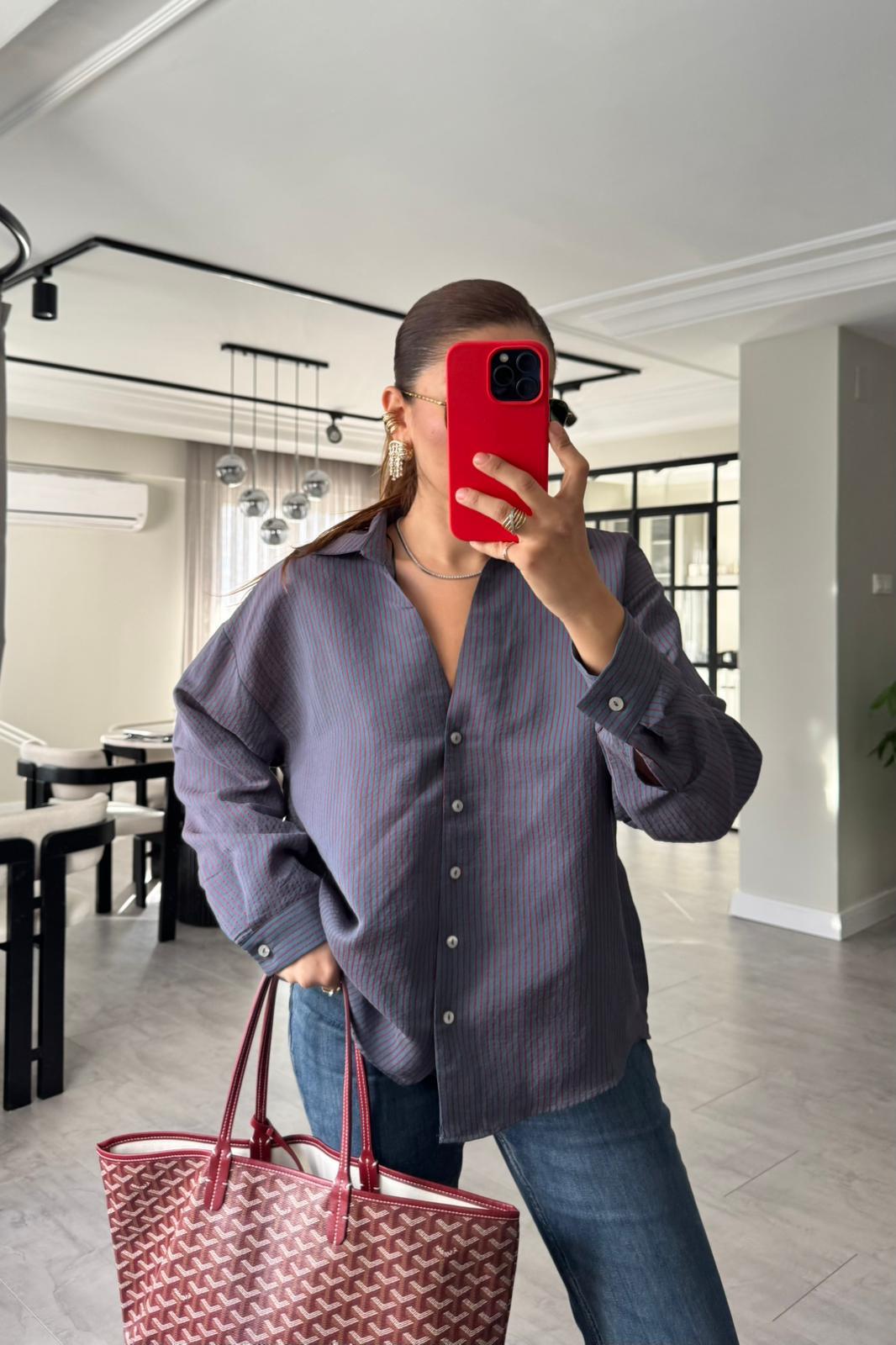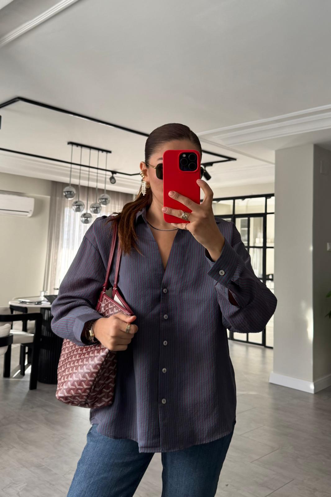 V YAKA ÇİZGİLİ GÖMLEK / 4906