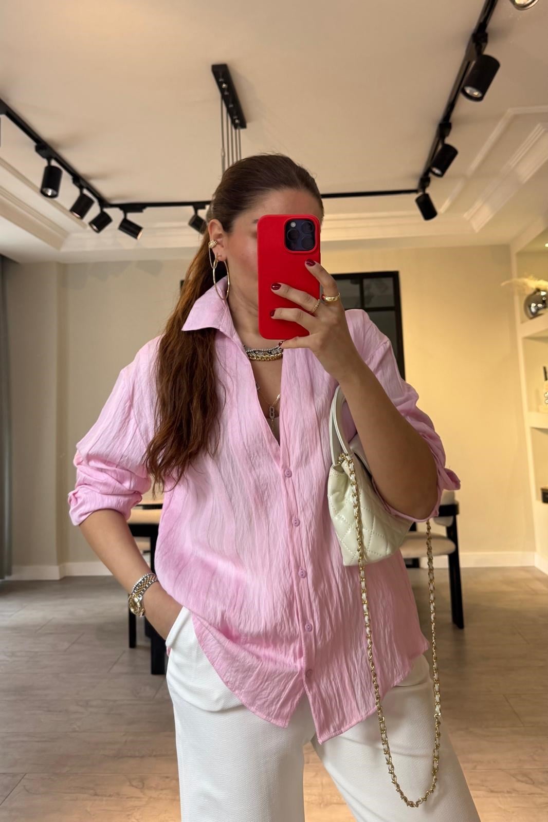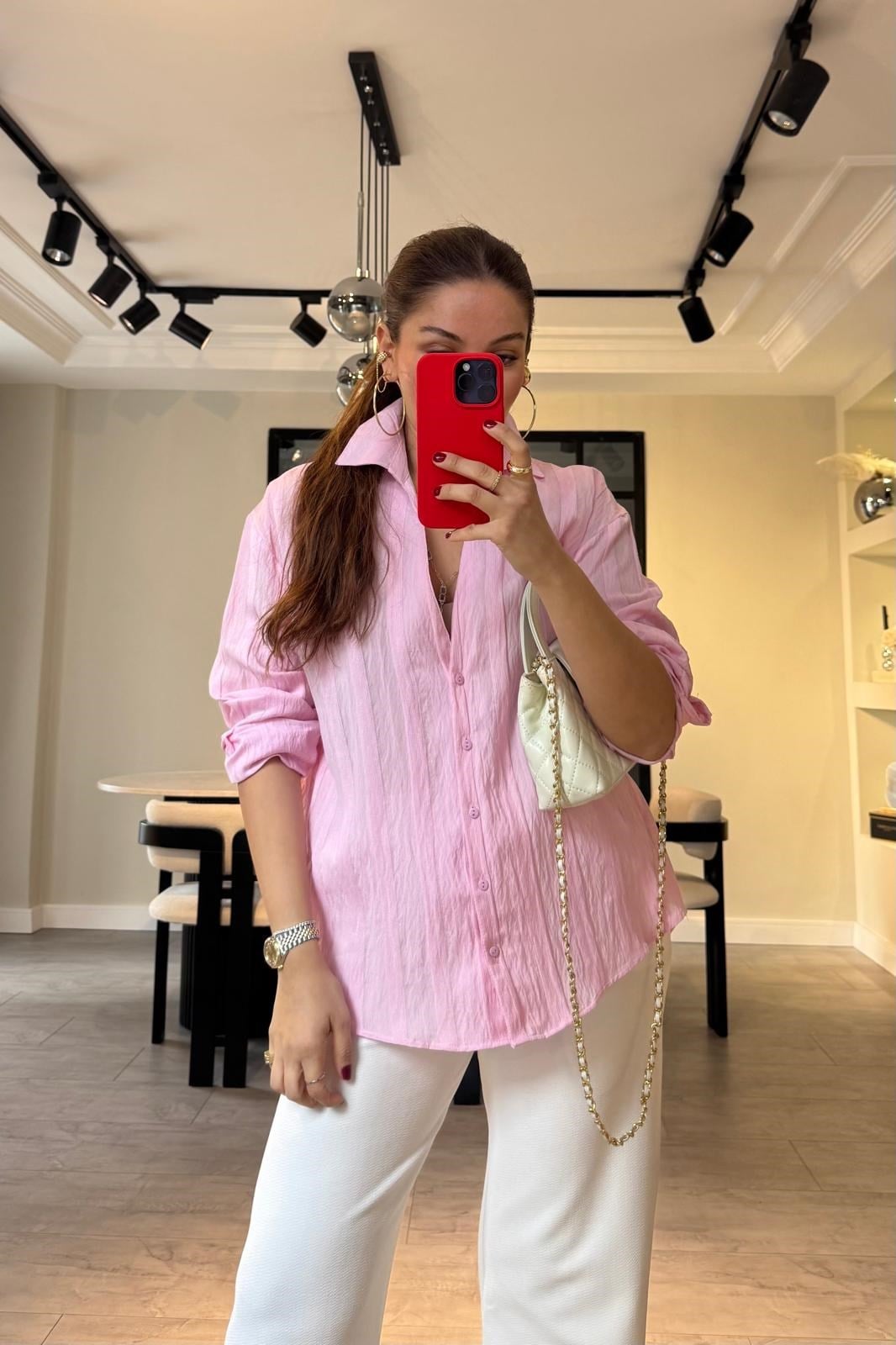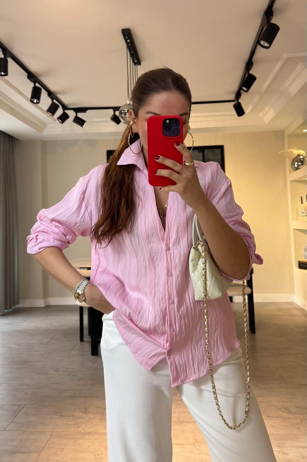 V YAKA FİLELİ OVERSİZE GÖMLEK/583