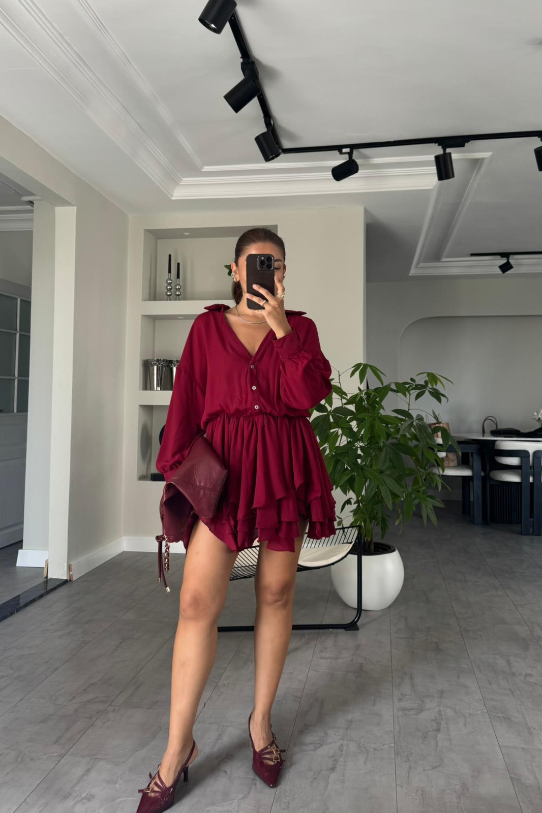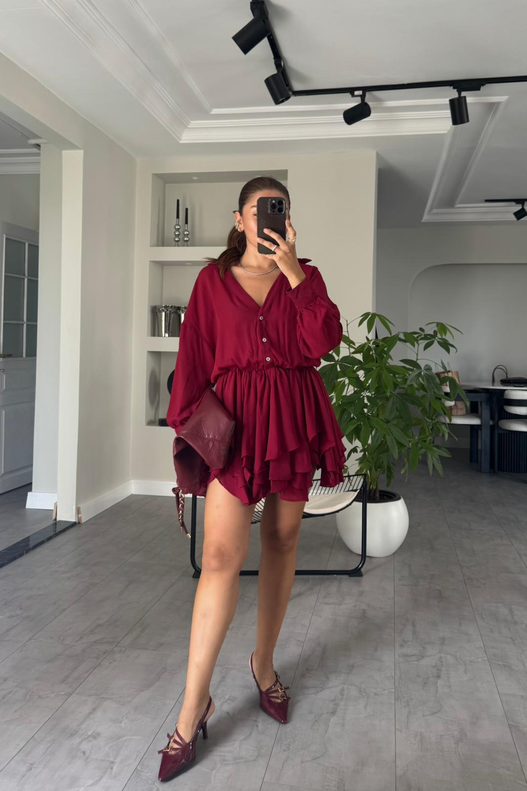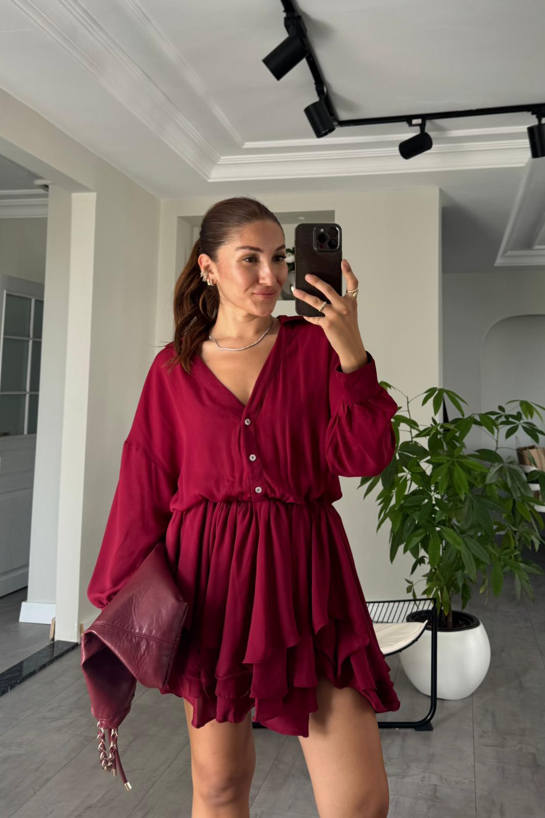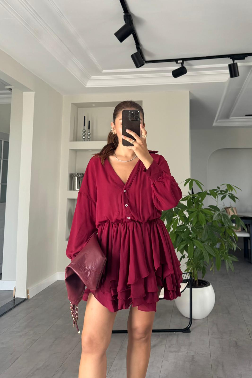 V YAKA FIRFIRLI MİNİ ŞİFON ELBİSE/8270 (26KHF03007)