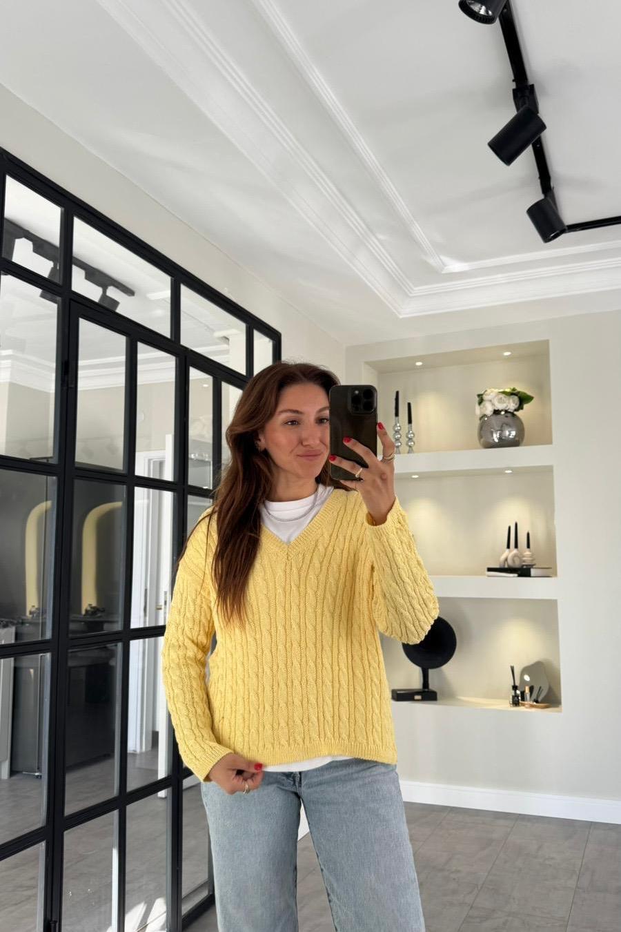 V YAKA SAÇ ÖRGÜ KAZAK/24189