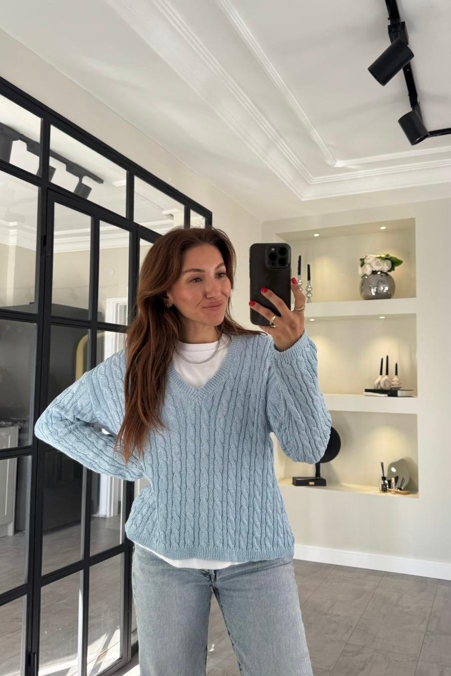 V YAKA SAÇ ÖRGÜ KAZAK/24189